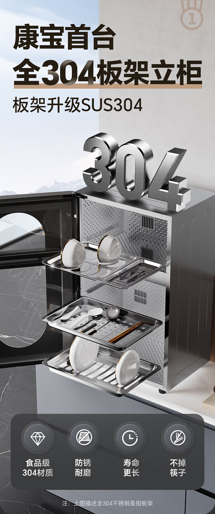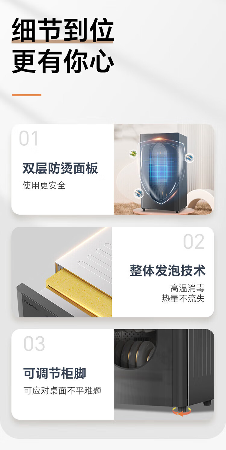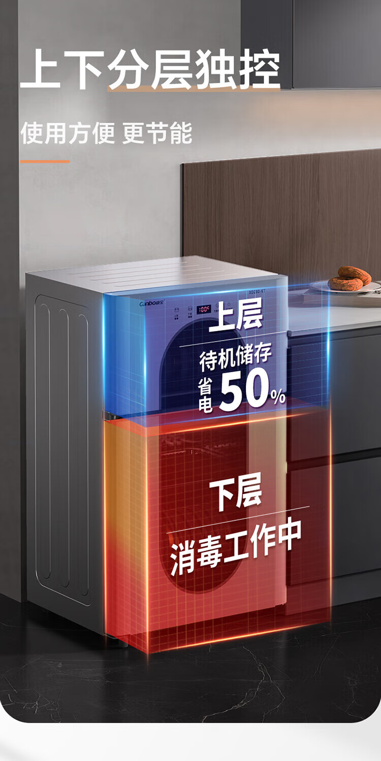 Canbo Disinfection Cabinet Household Vertical Small 304 Stainless Steel Shelves Bottles and Bowls Hot Air Disinfection Cupboard KT Intelligent Touch Control Aseptic Storage Large Capacity Two-Star Disinfection Two-Star 55L丨XDZ55-KT丨304 Material