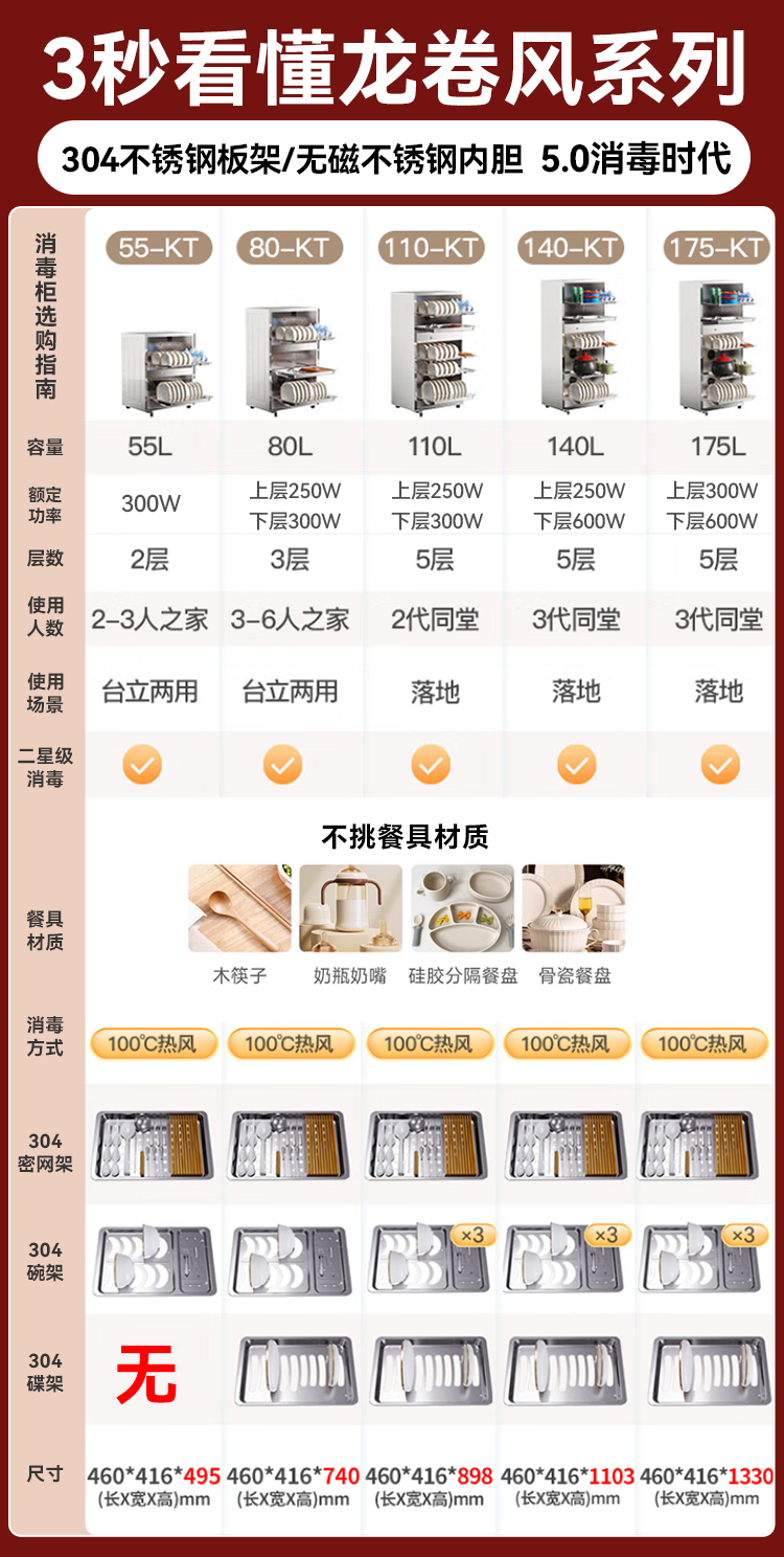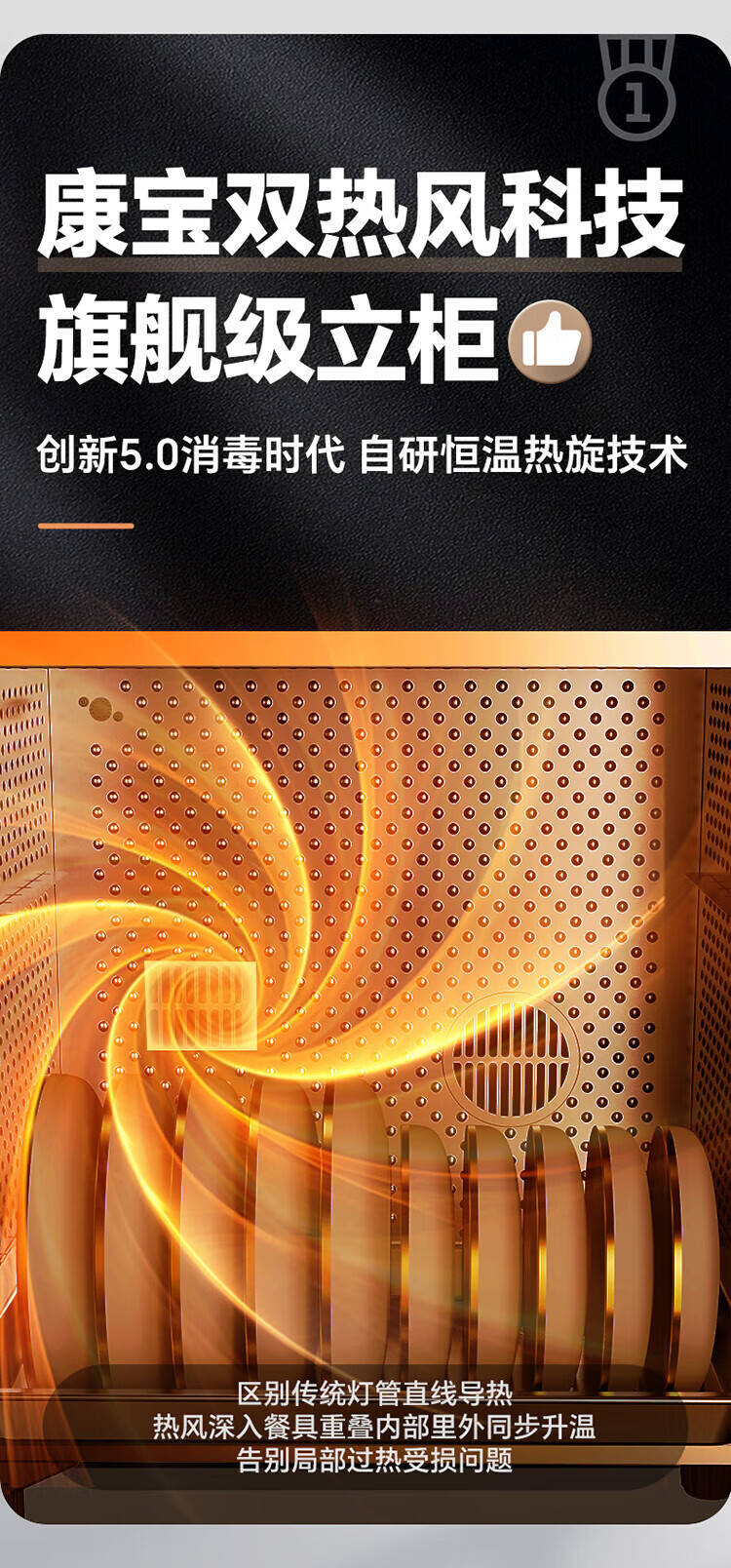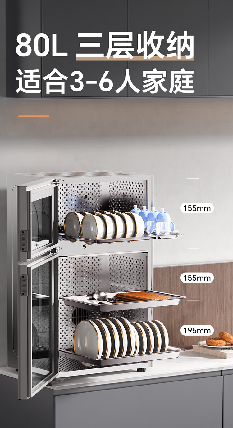 Canbo Disinfection Cabinet Household Vertical Small 304 Stainless Steel Shelves Bottles and Bowls Hot Air Disinfection Cupboard KT Intelligent Touch Control Aseptic Storage Large Capacity Two-Star Disinfection Two-Star 55L丨XDZ55-KT丨304 Material
