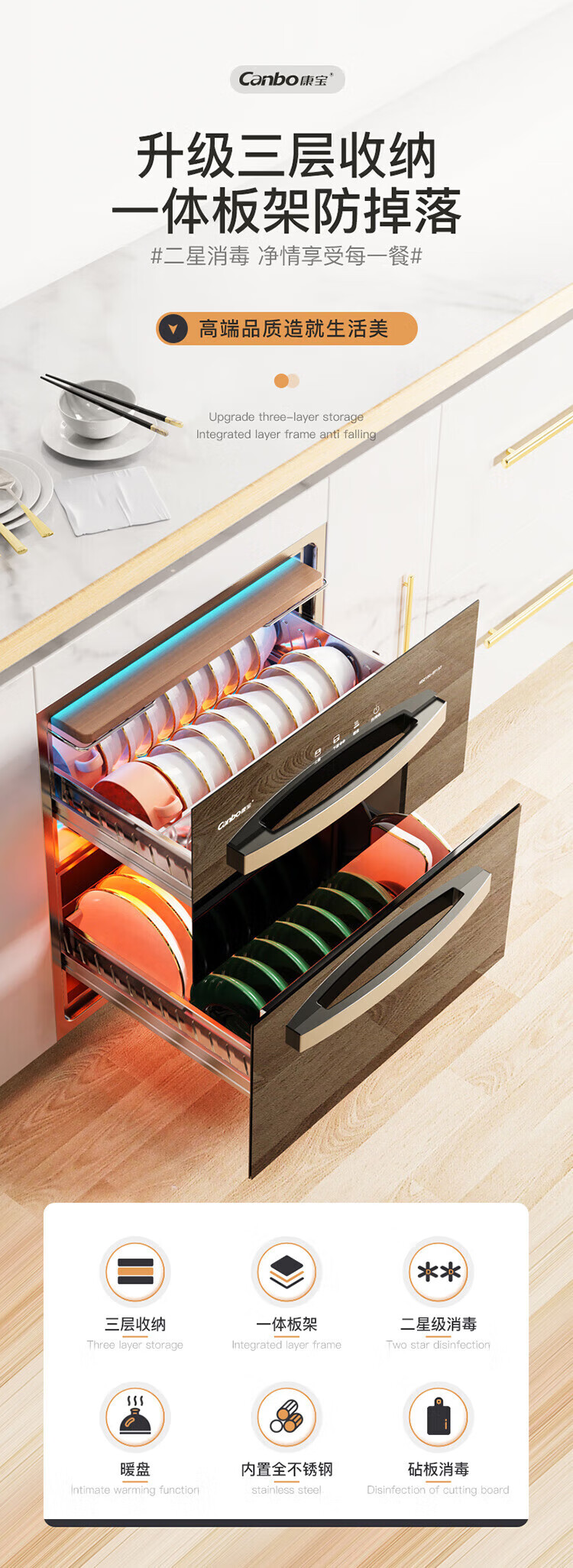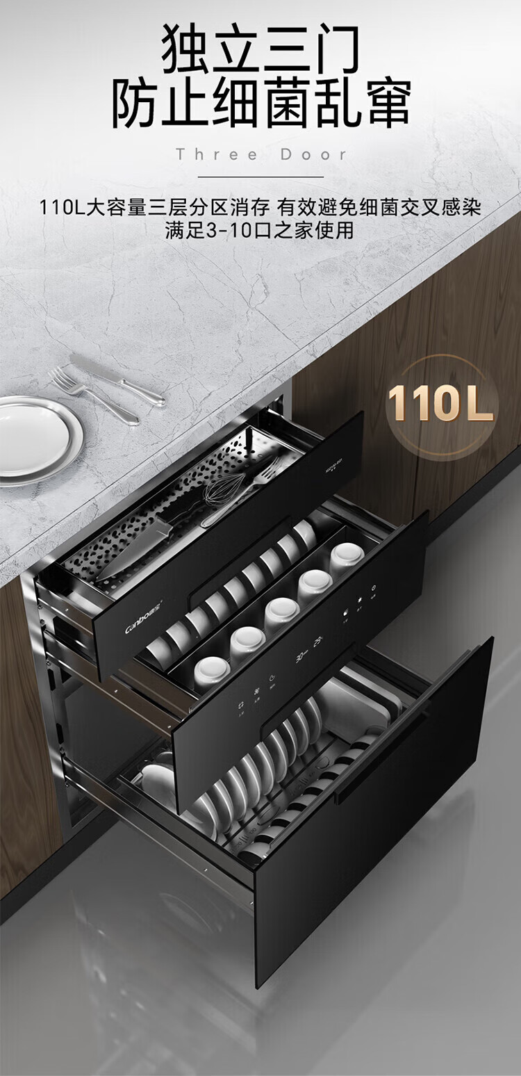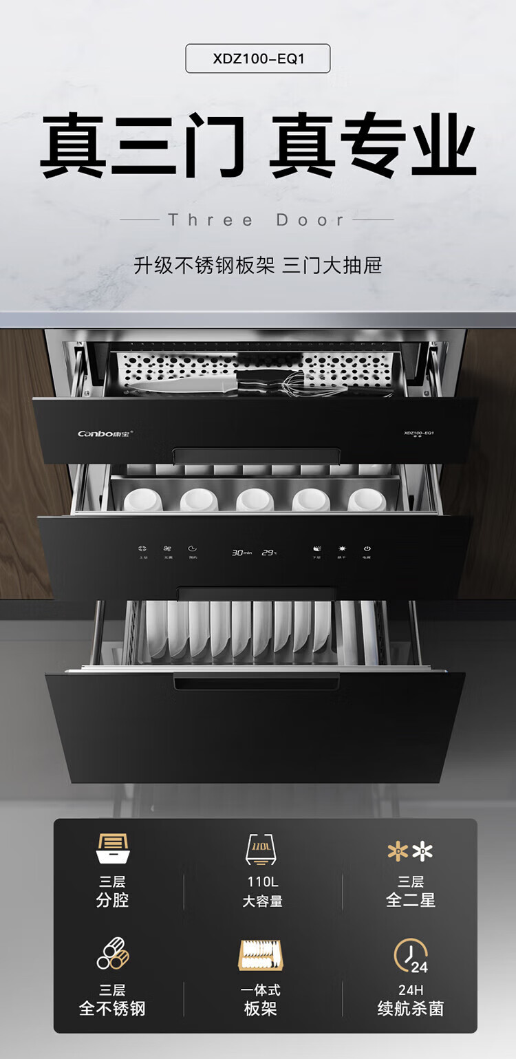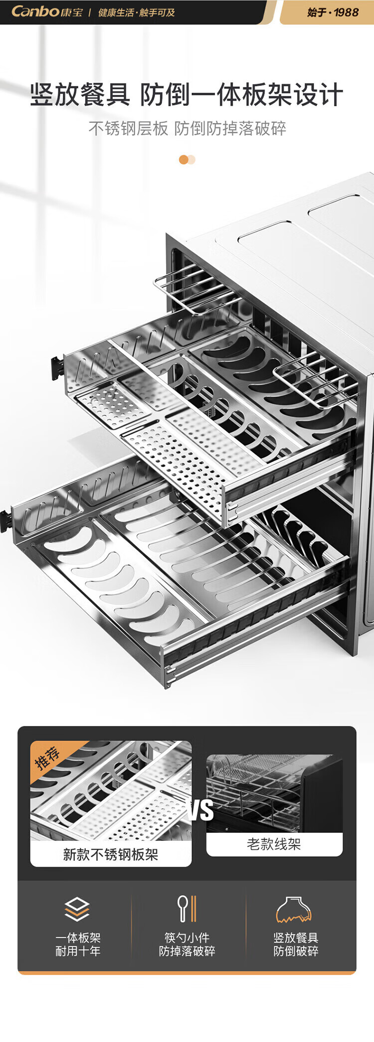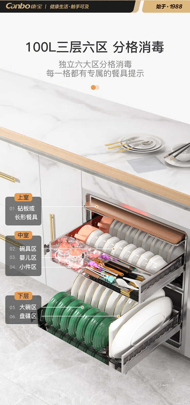Canbo Disinfection Cabinet Embedded Household Large Capacity Disinfection Cupboard Panshi Tableware Two Star High Temperature Stainless Steel Bowl Rack All-in-One Machine Two Star 100L XDZ100-HMC3