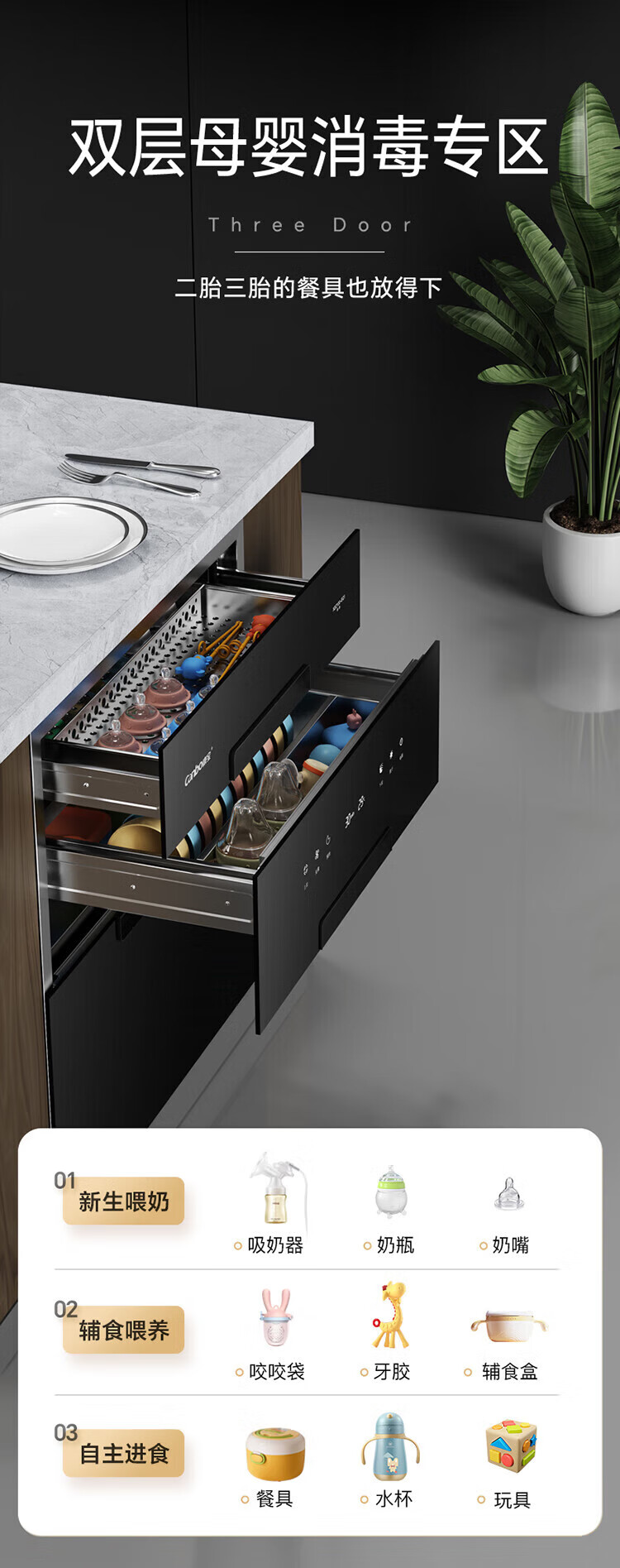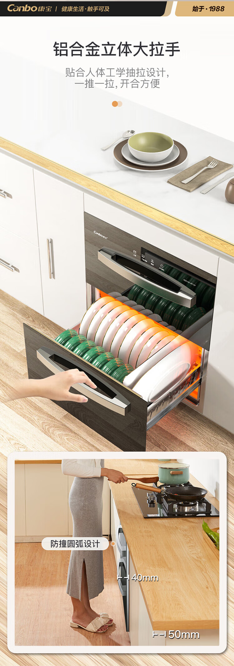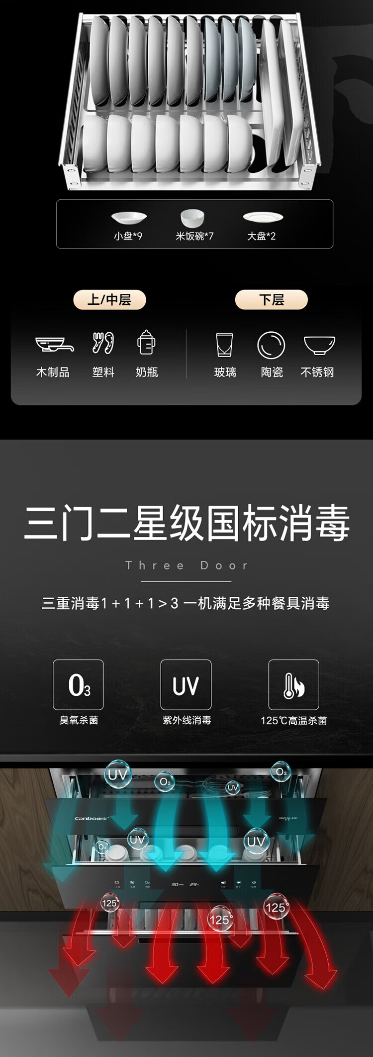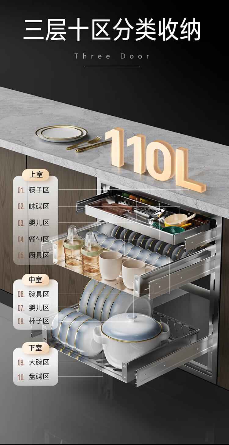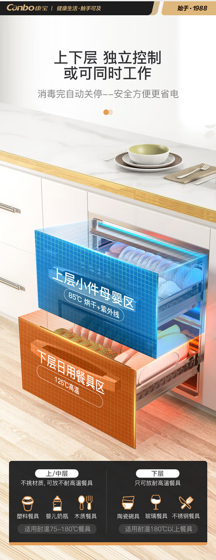 Canbo Disinfection Cabinet Embedded Household Large Capacity Disinfection Cupboard Panshi Tableware Two Star High Temperature Stainless Steel Bowl Rack All-in-One Machine Two Star 100L XDZ100-HMC3