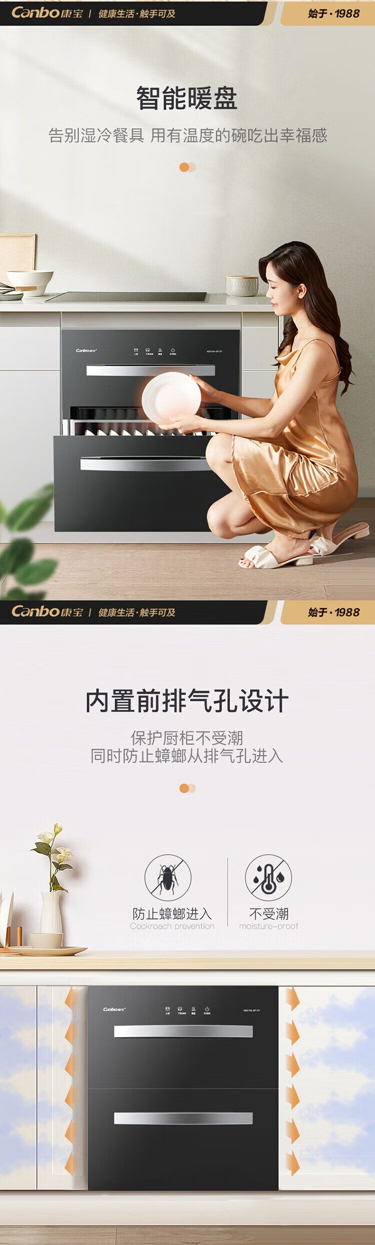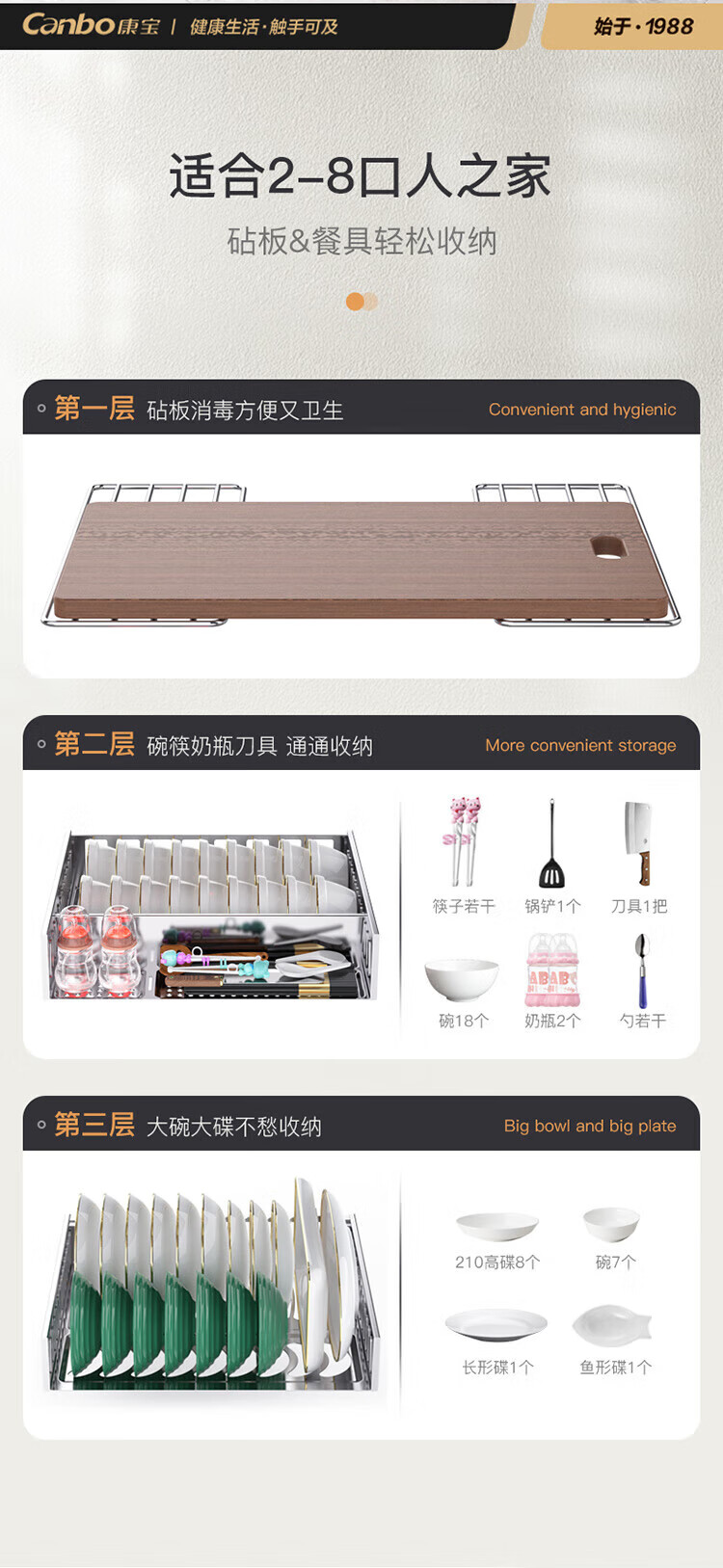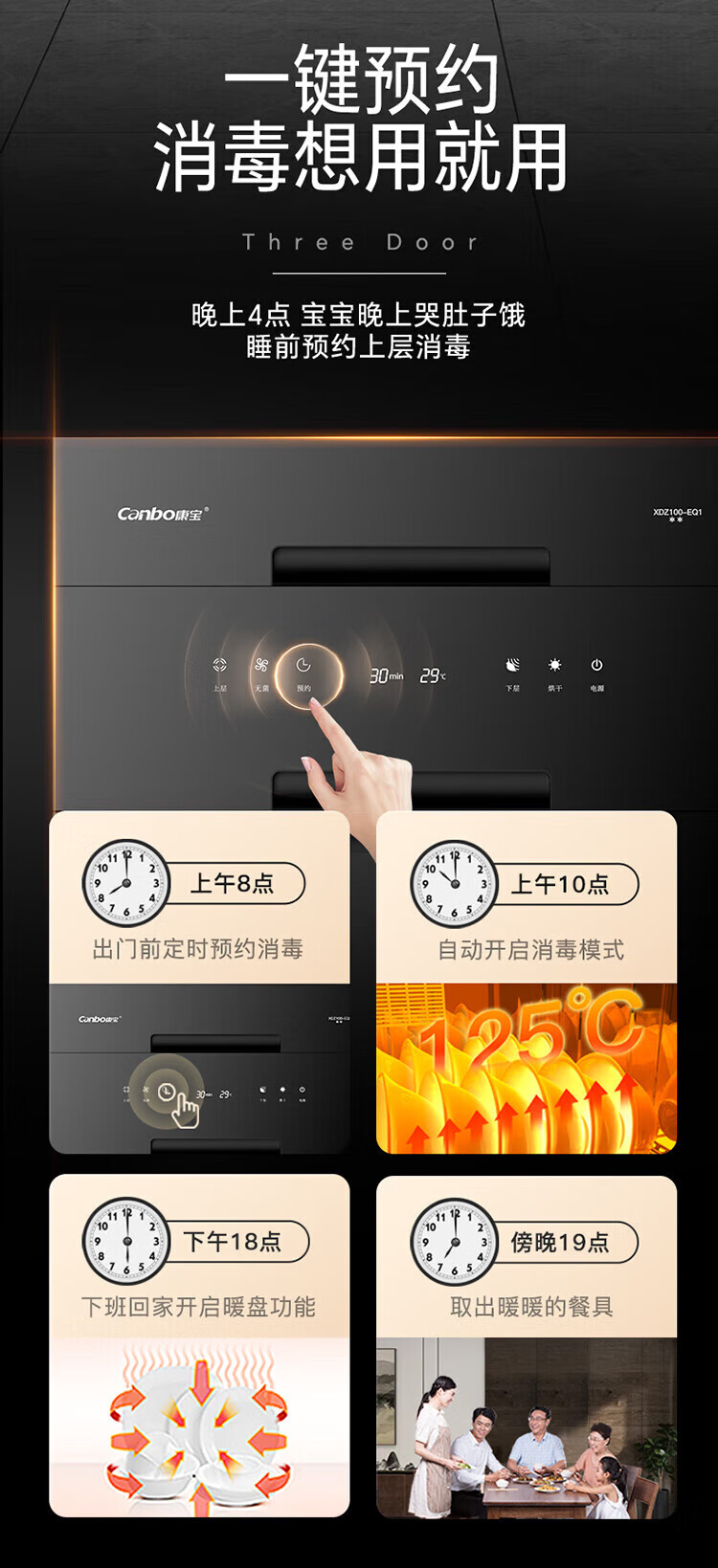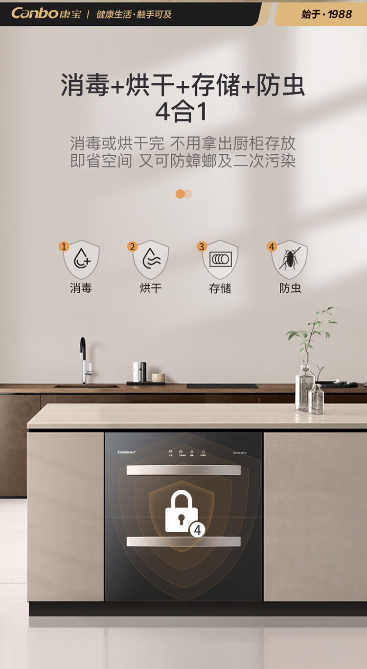 Canbo Disinfection Cabinet Embedded Household Large Capacity Disinfection Cupboard Panshi Tableware Two Star High Temperature Stainless Steel Bowl Rack All-in-One Machine Two Star 100L XDZ100-HMC3