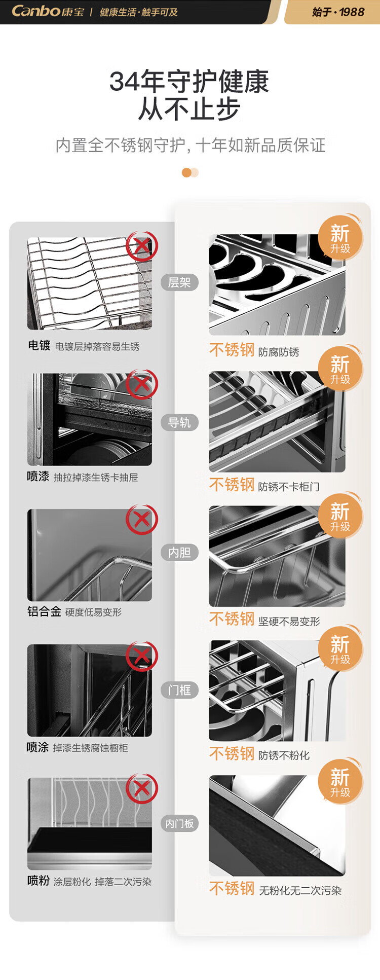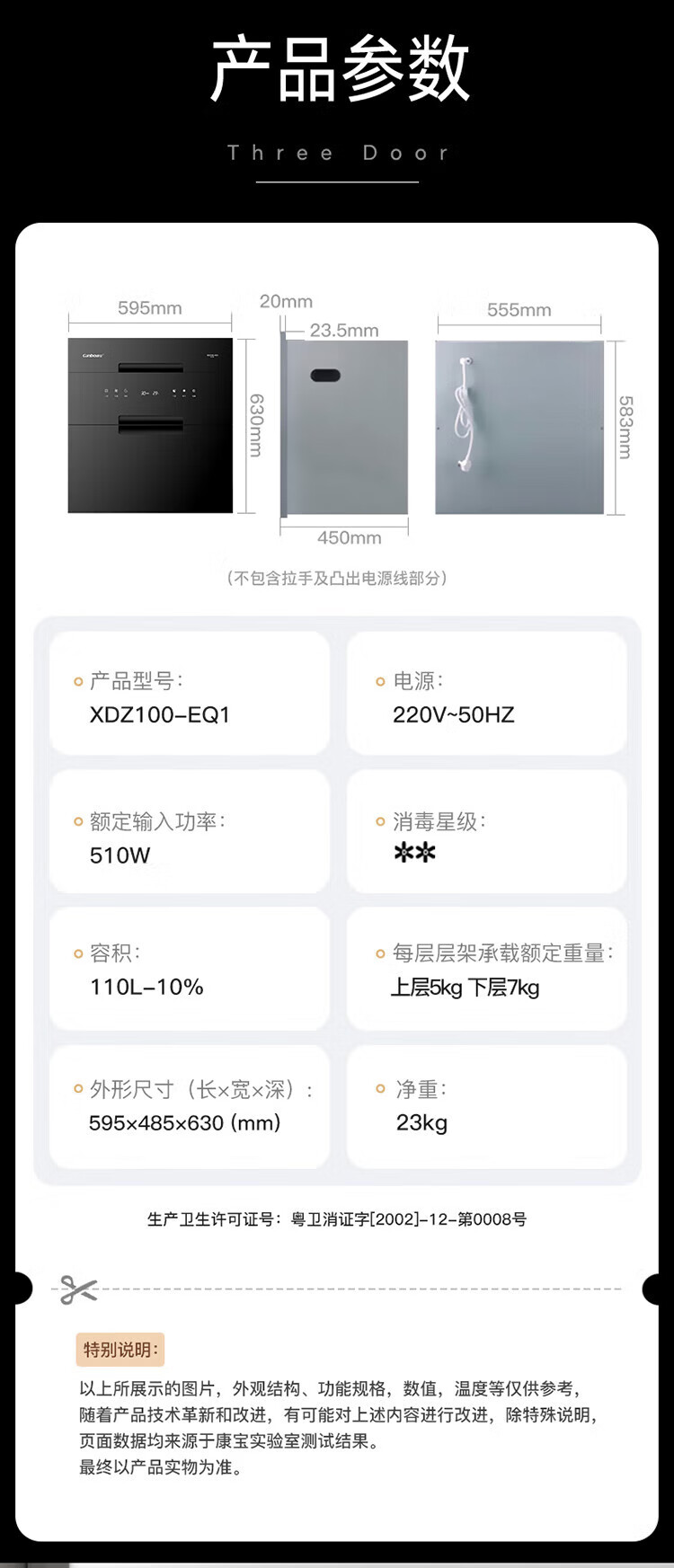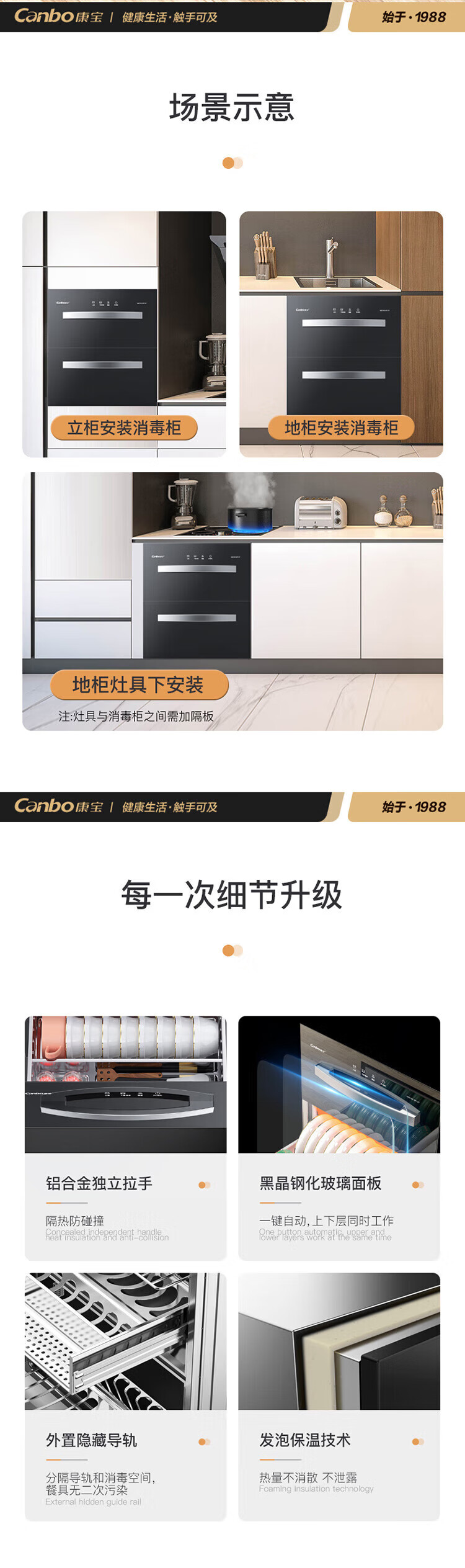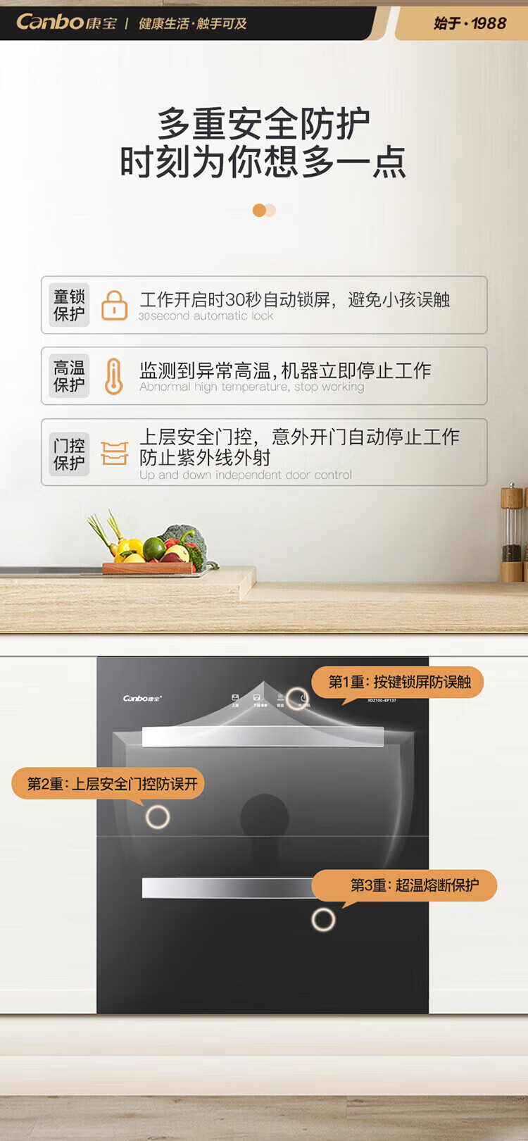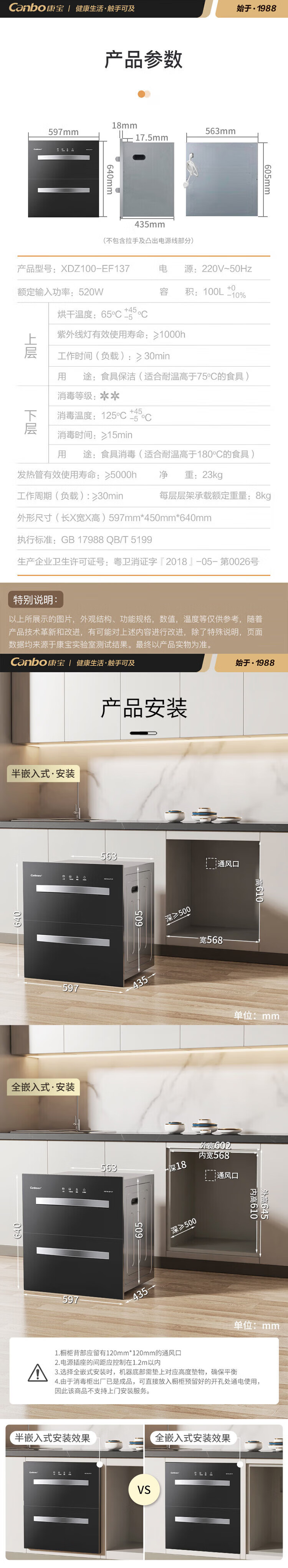 Canbo Disinfection Cabinet Embedded Household Large Capacity Disinfection Cupboard Panshi Tableware Two Star High Temperature Stainless Steel Bowl Rack All-in-One Machine Two Star 100L XDZ100-HMC3