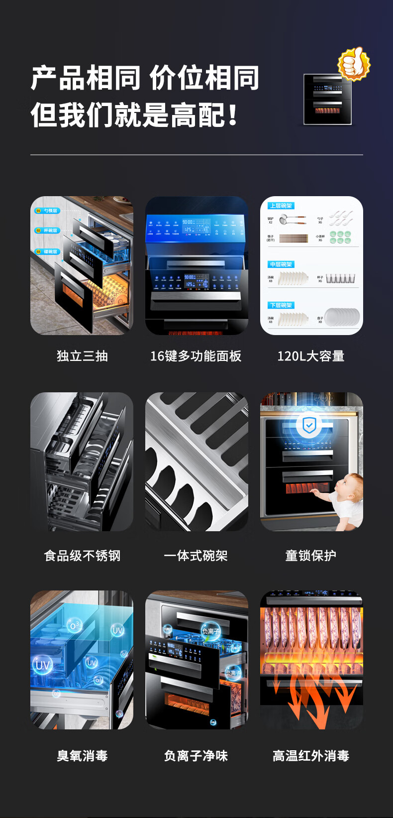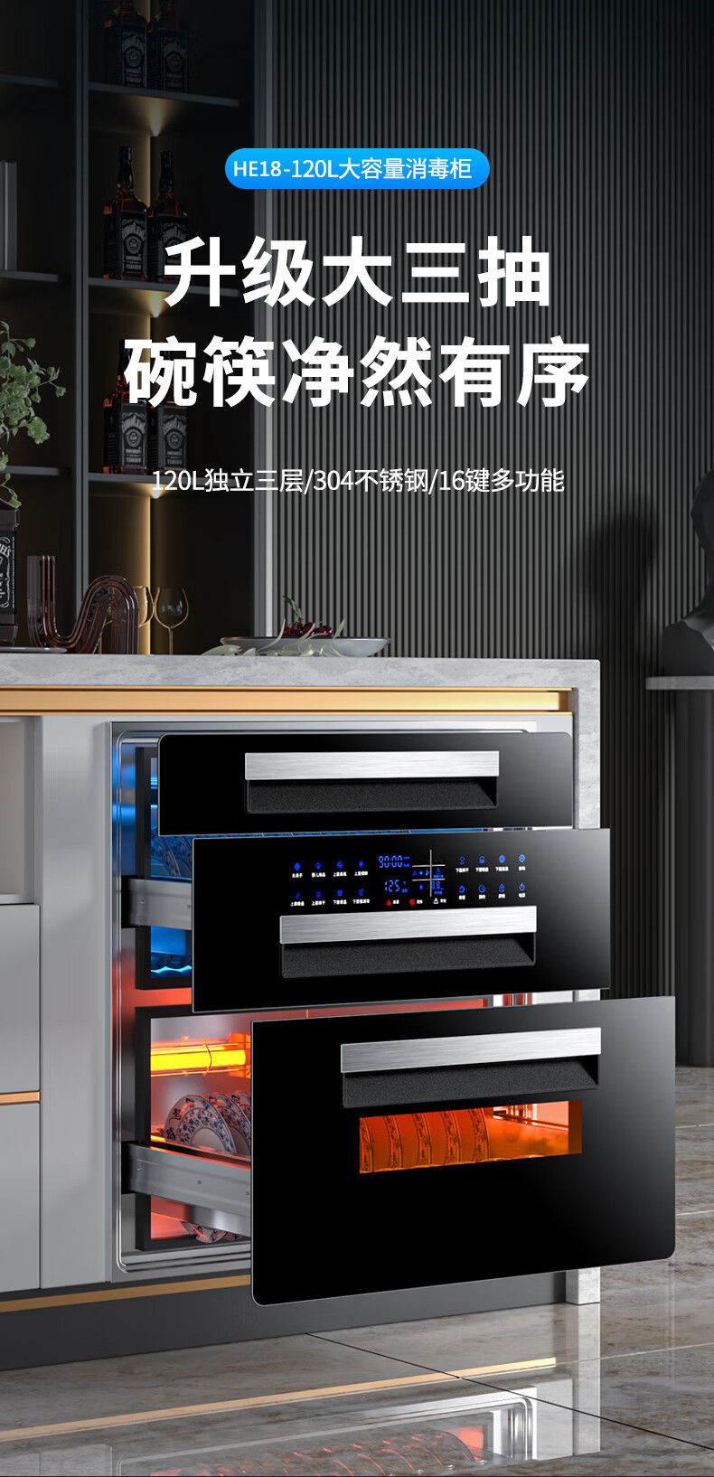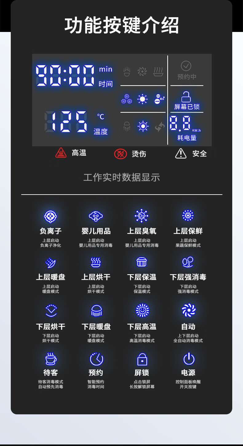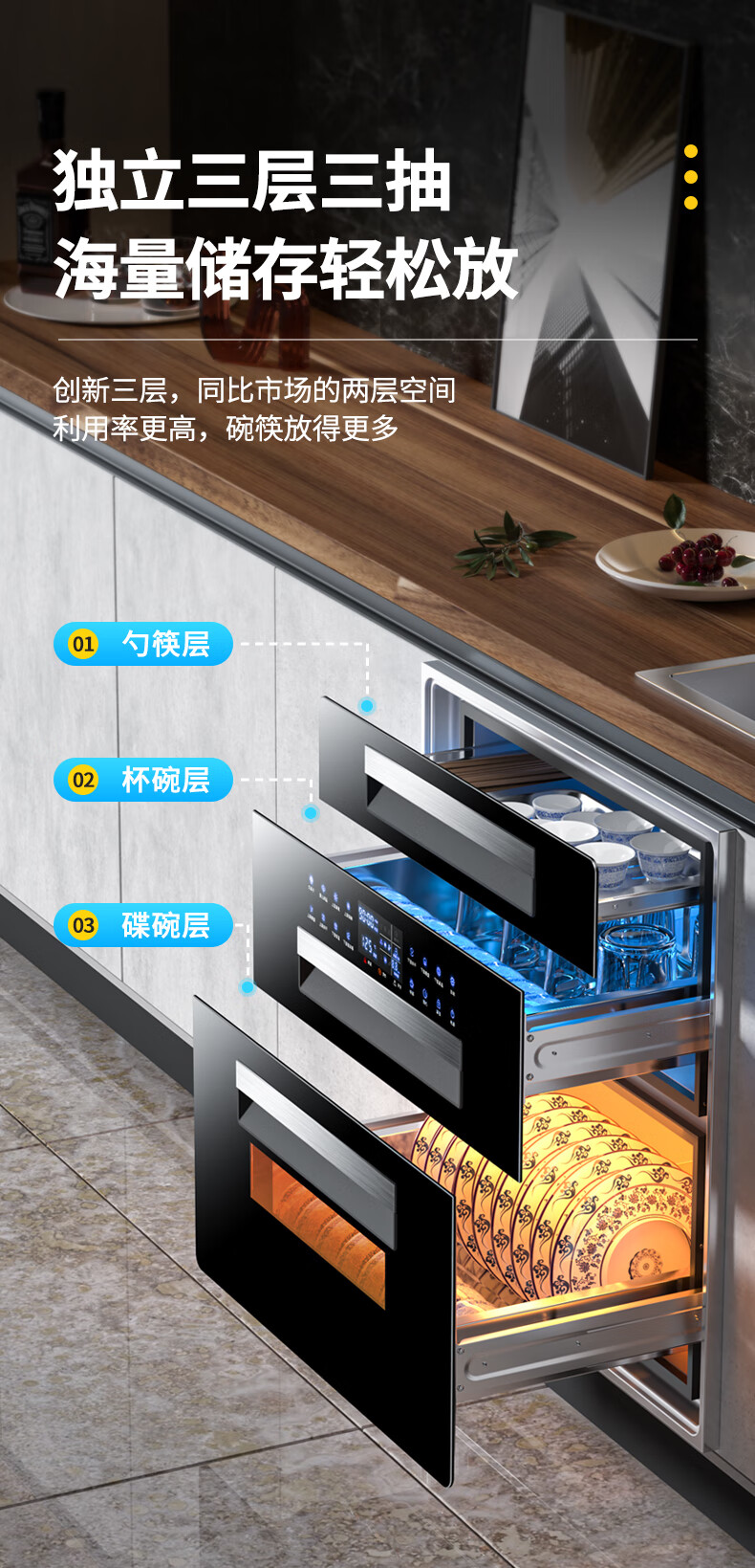 Wanbao built-in disinfection cabinet for home use 15% national subsidy Small kitchen tableware multi-functional three-layer 128L large capacity high-temperature disinfection cupboard three-layer two-star 100L standard two-layer + 4 functions + high-temperature disinfection
