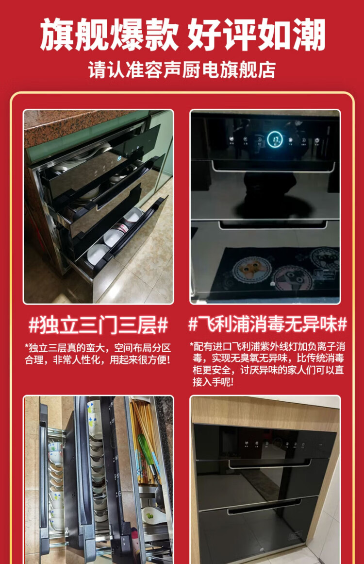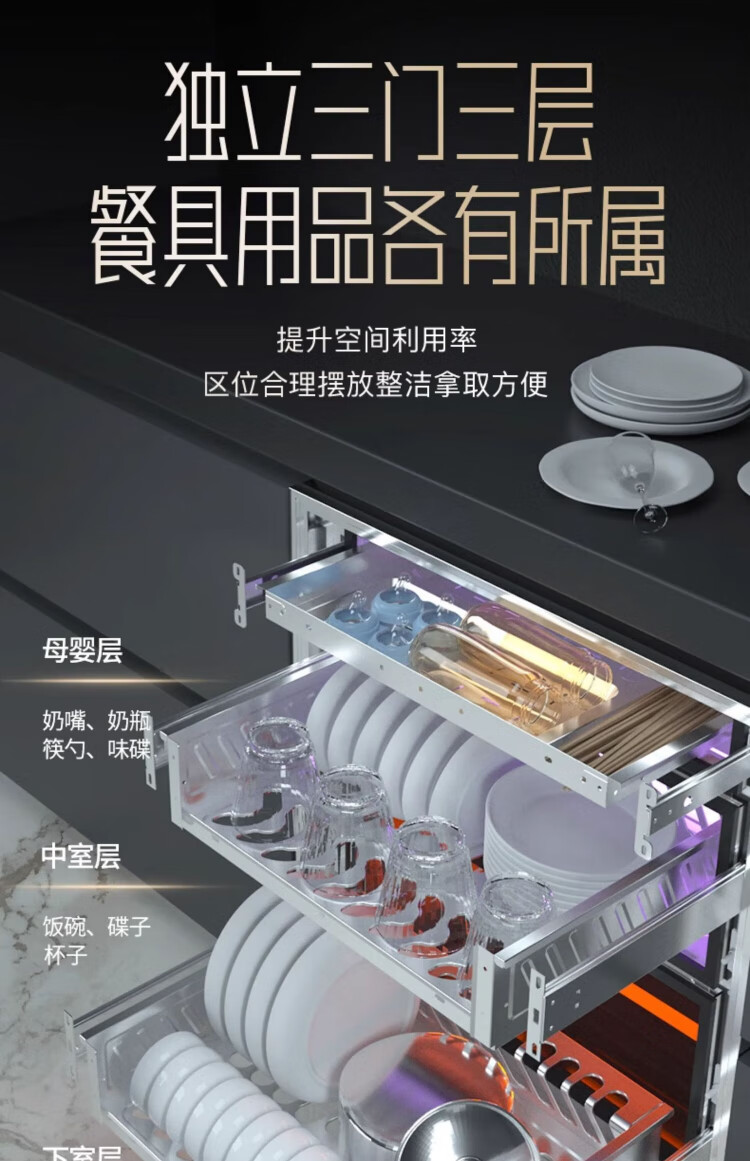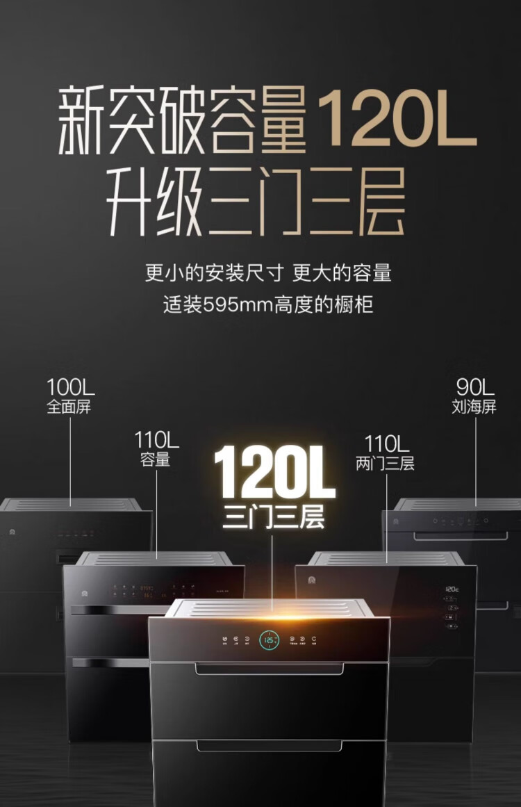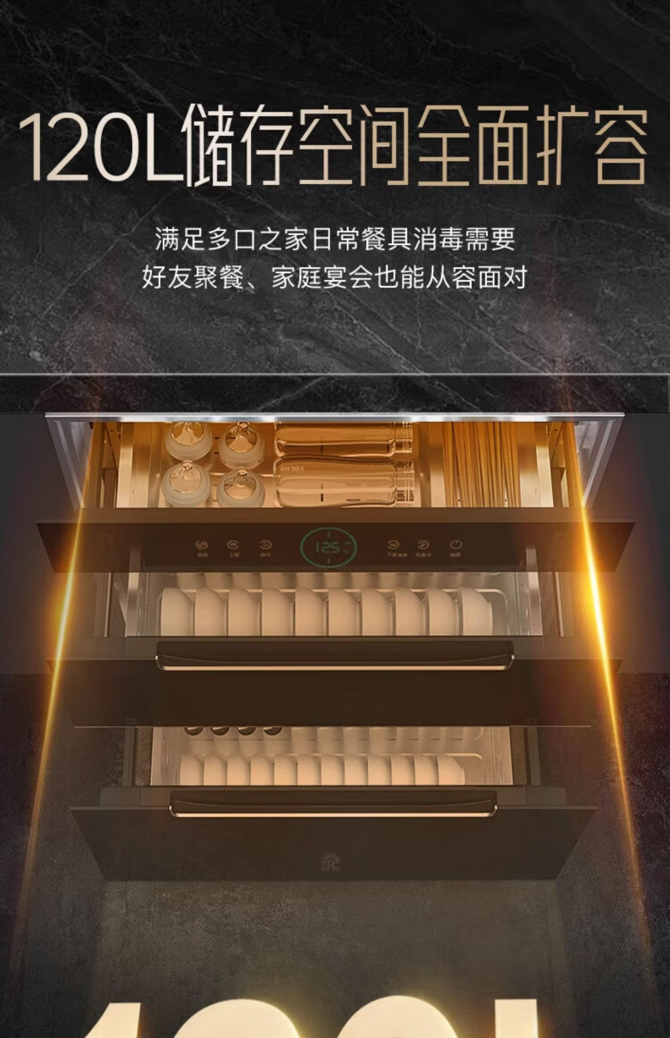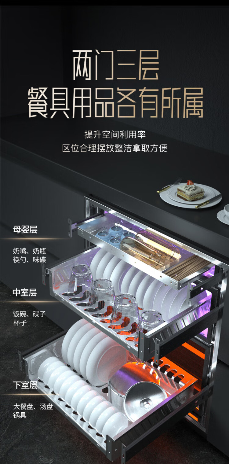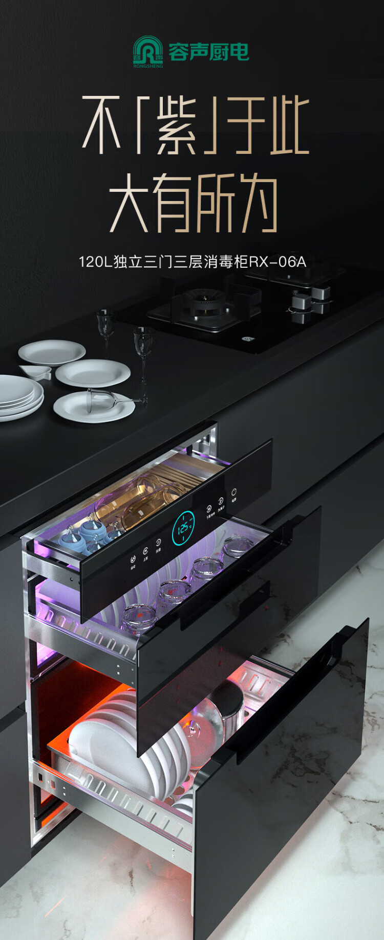 Rongsheng disinfection cabinet embedded household disinfection cupboard large capacity two-star tableware tableware kitchen high temperature inlaid type two-star 120L hot air circulation 304-layer rack 06A hot air
