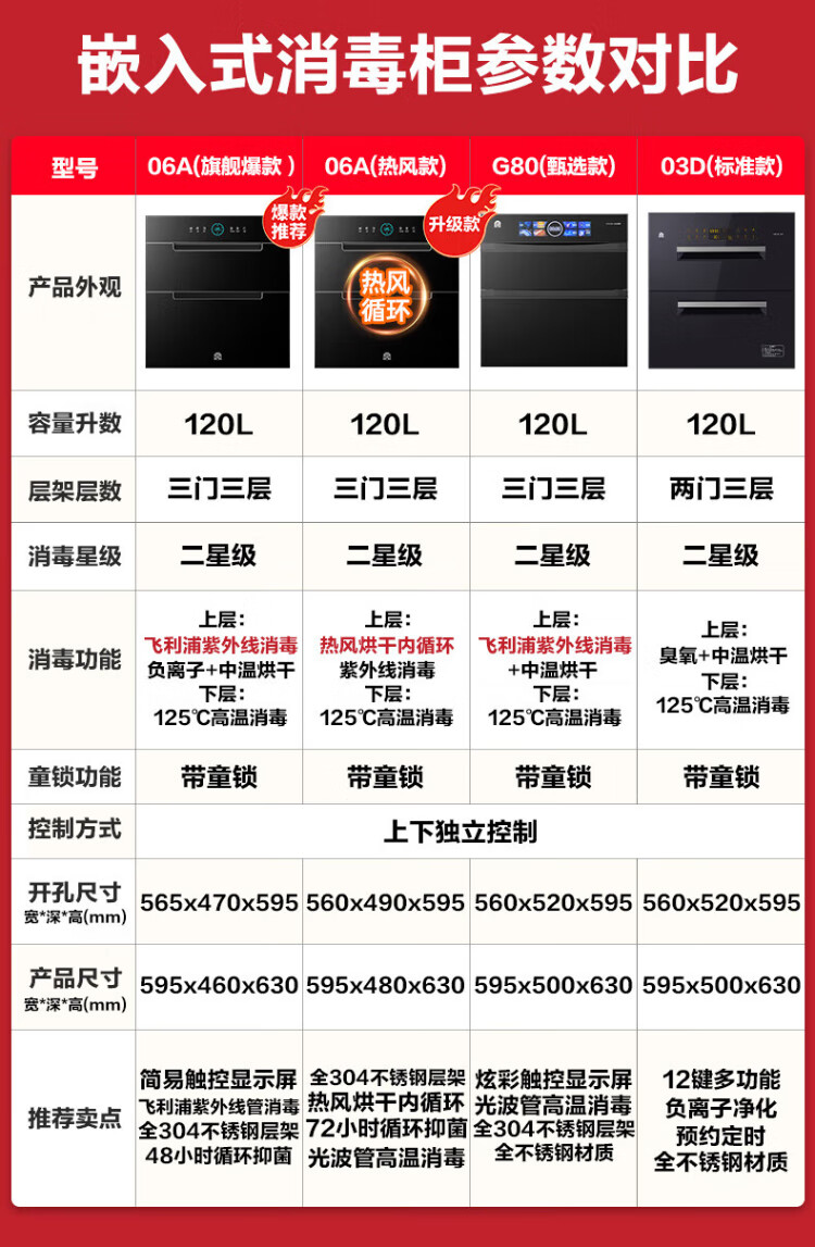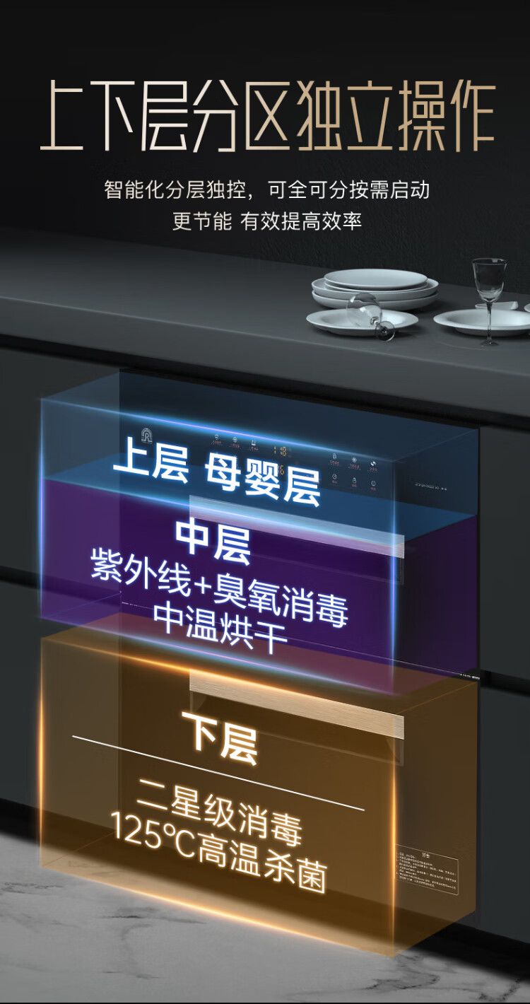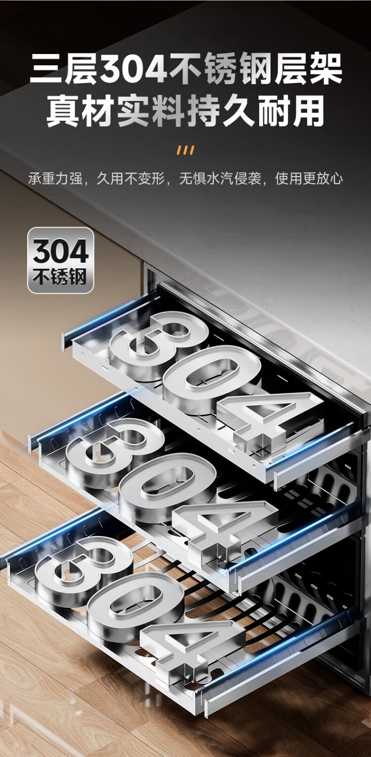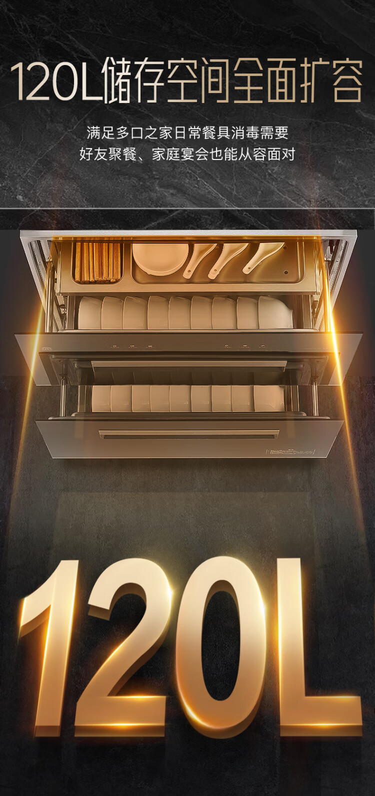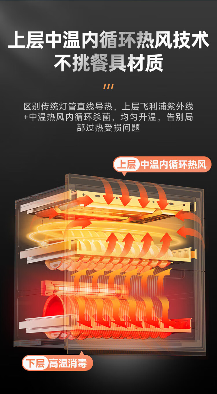 Rongsheng disinfection cabinet embedded household disinfection cupboard large capacity two-star tableware tableware kitchen high temperature inlaid type two-star 120L hot air circulation 304-layer rack 06A hot air