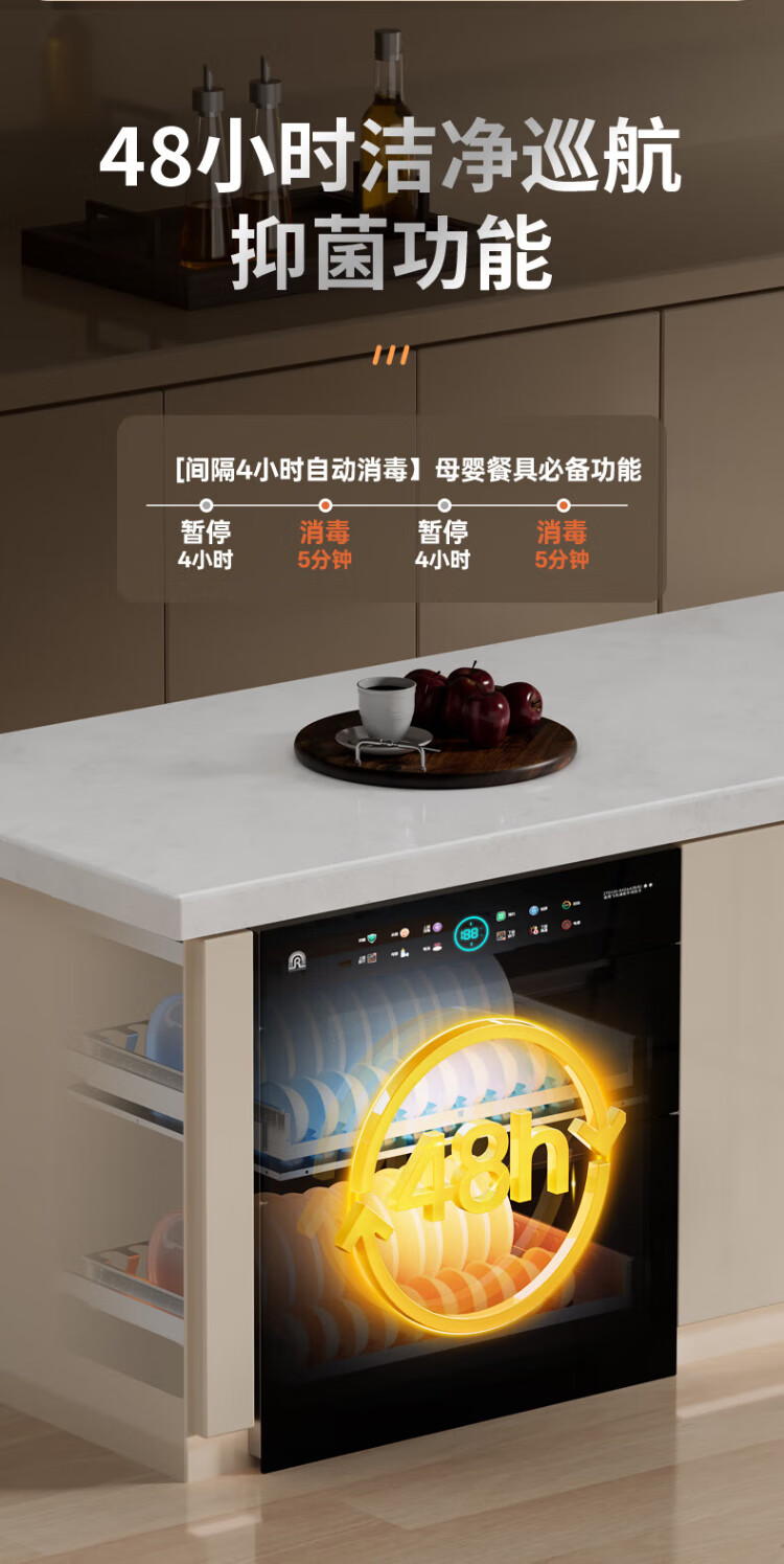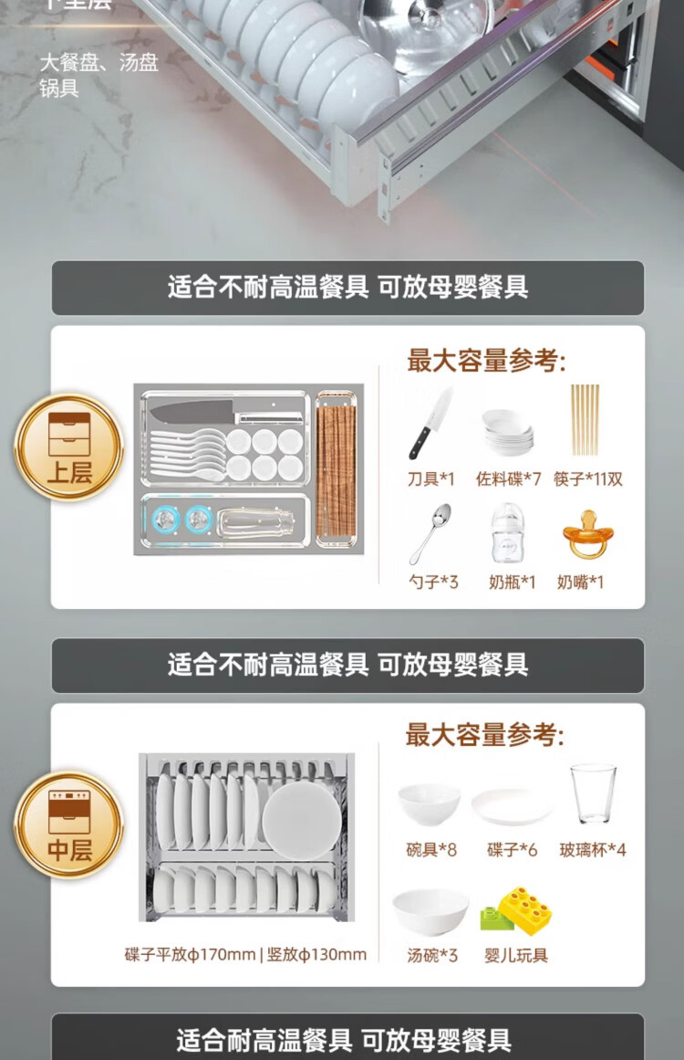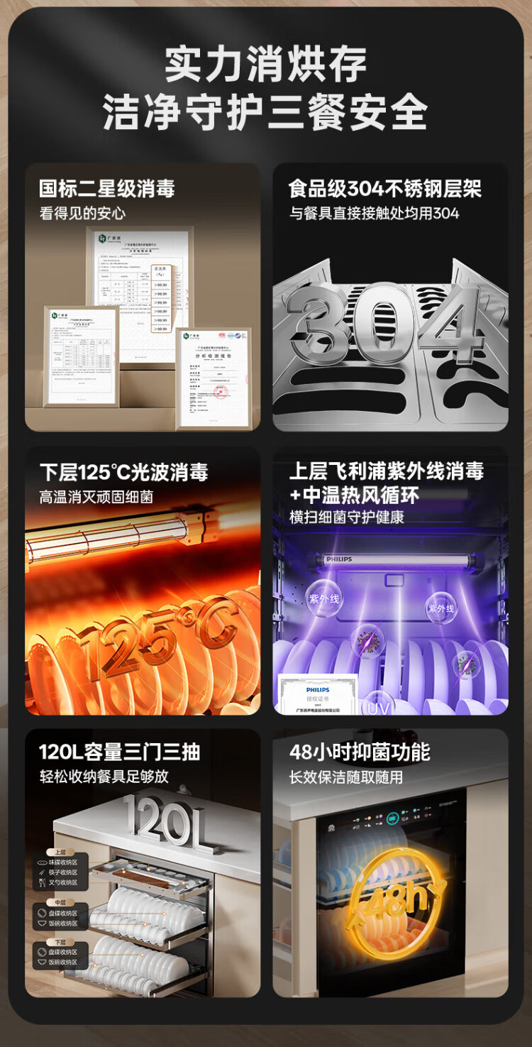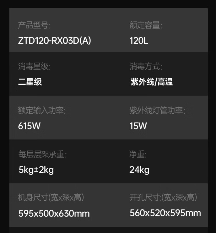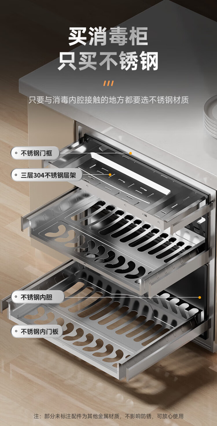 Rongsheng disinfection cabinet embedded household disinfection cupboard large capacity two-star tableware tableware kitchen high temperature inlaid type two-star 120L hot air circulation 304-layer rack 06A hot air