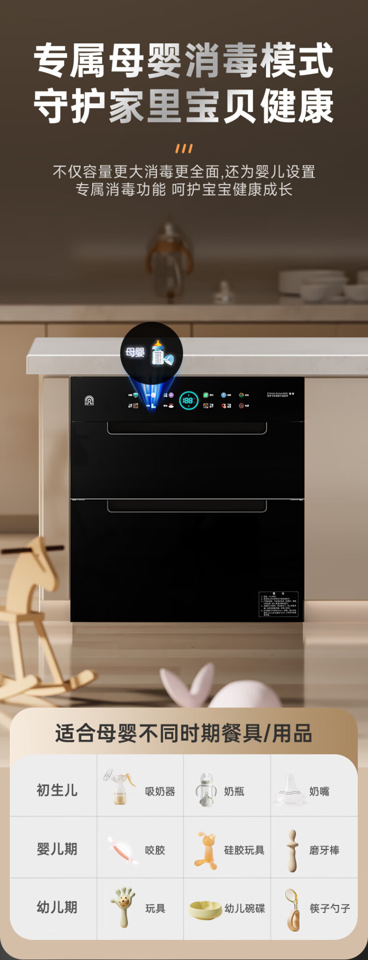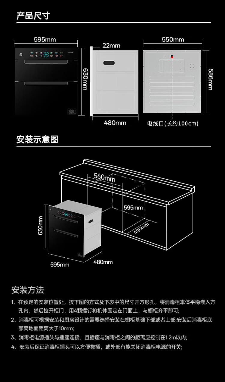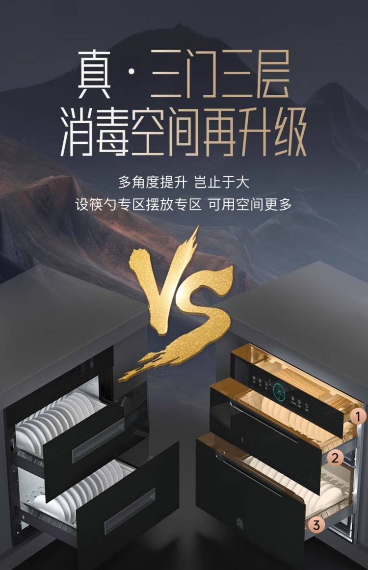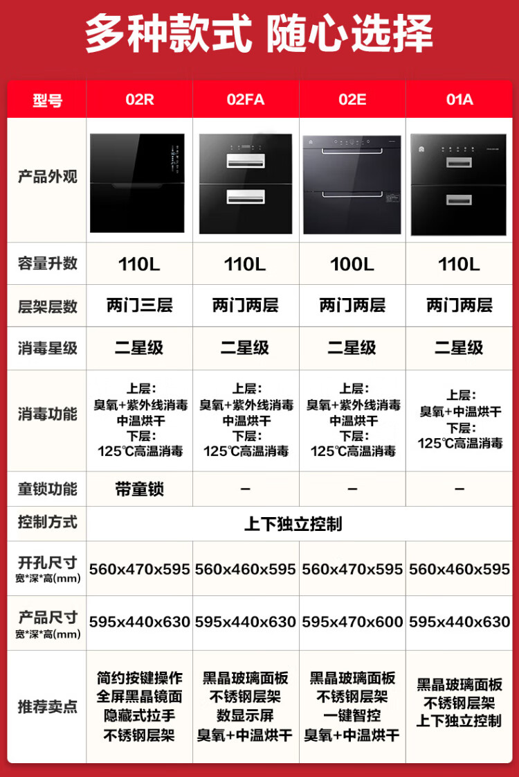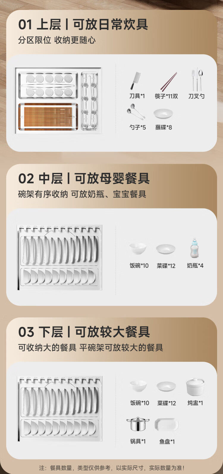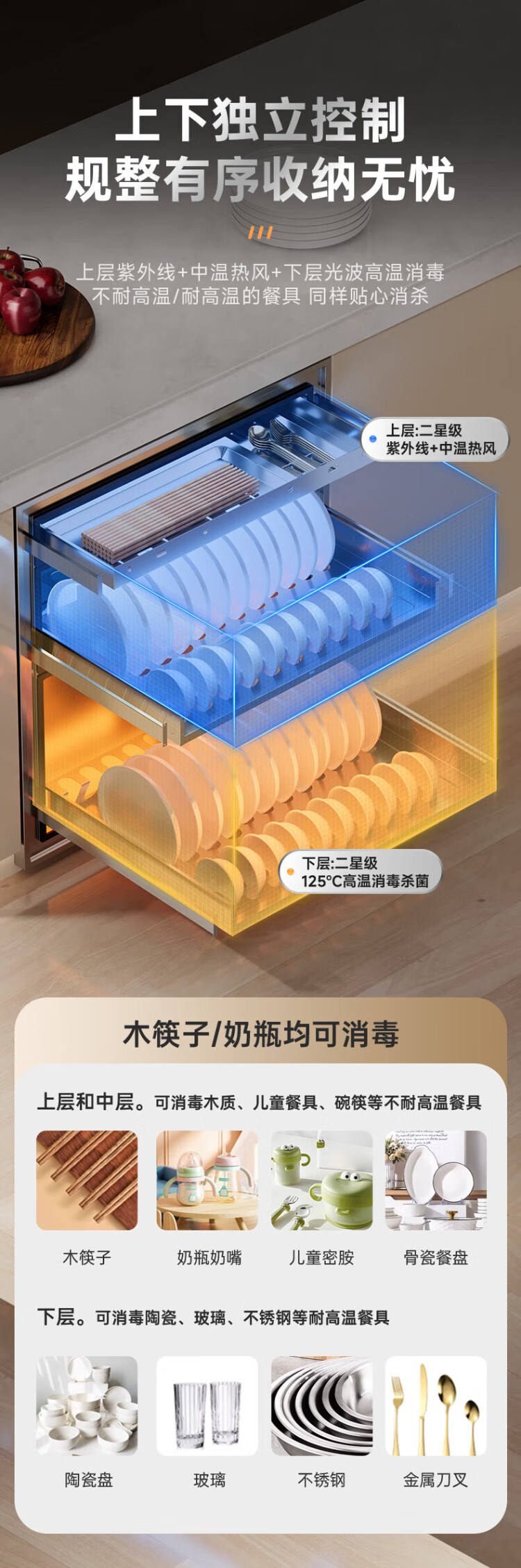Rongsheng disinfection cabinet embedded household disinfection cupboard large capacity two-star tableware tableware kitchen high temperature inlaid type two-star 120L hot air circulation 304-layer rack 06A hot air