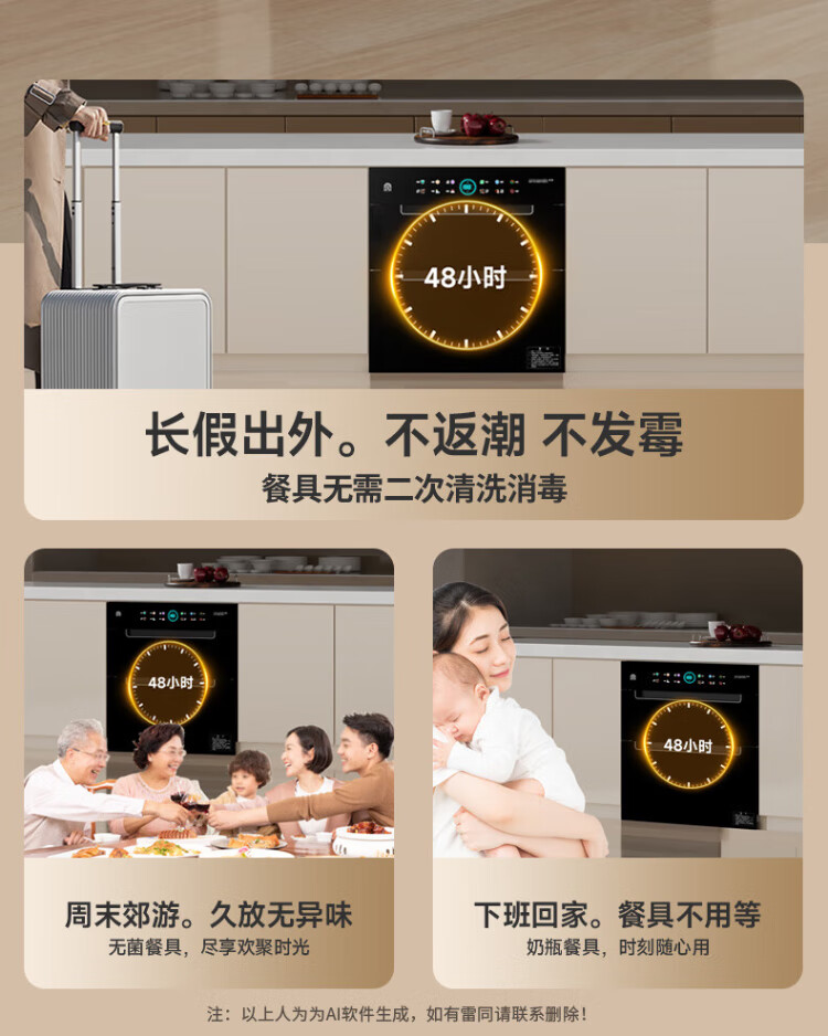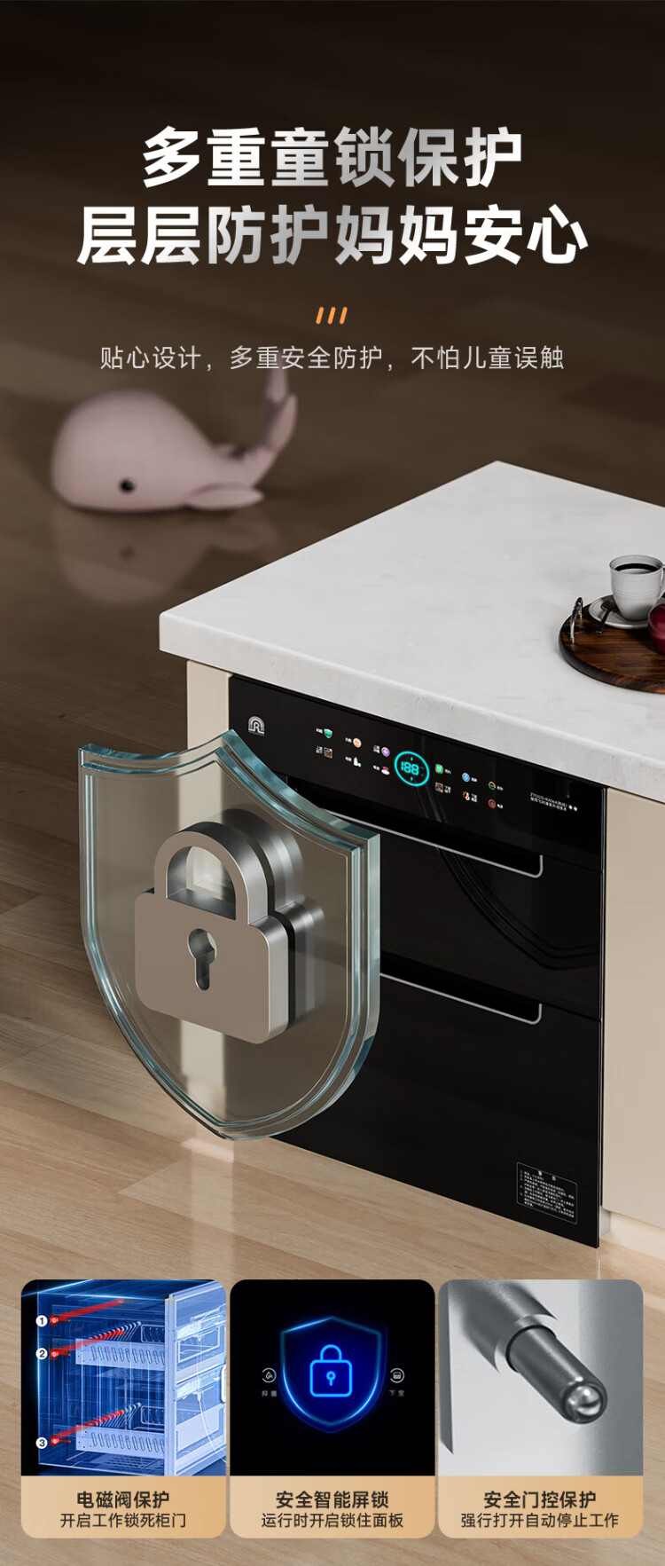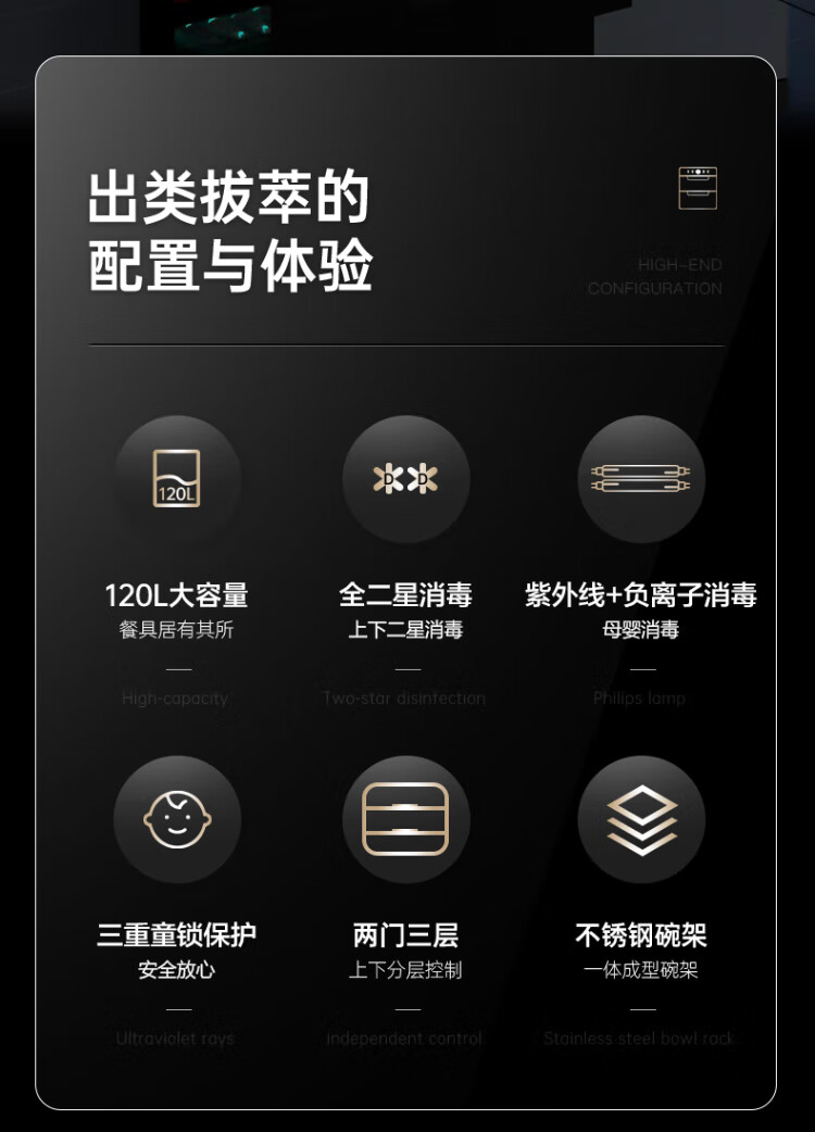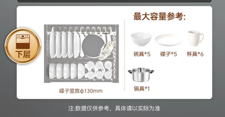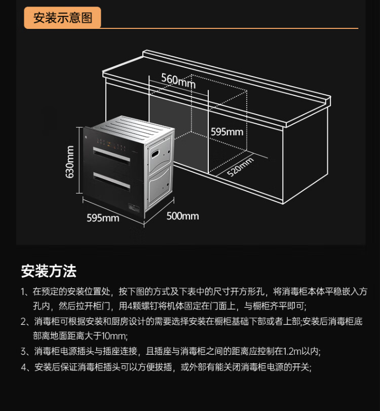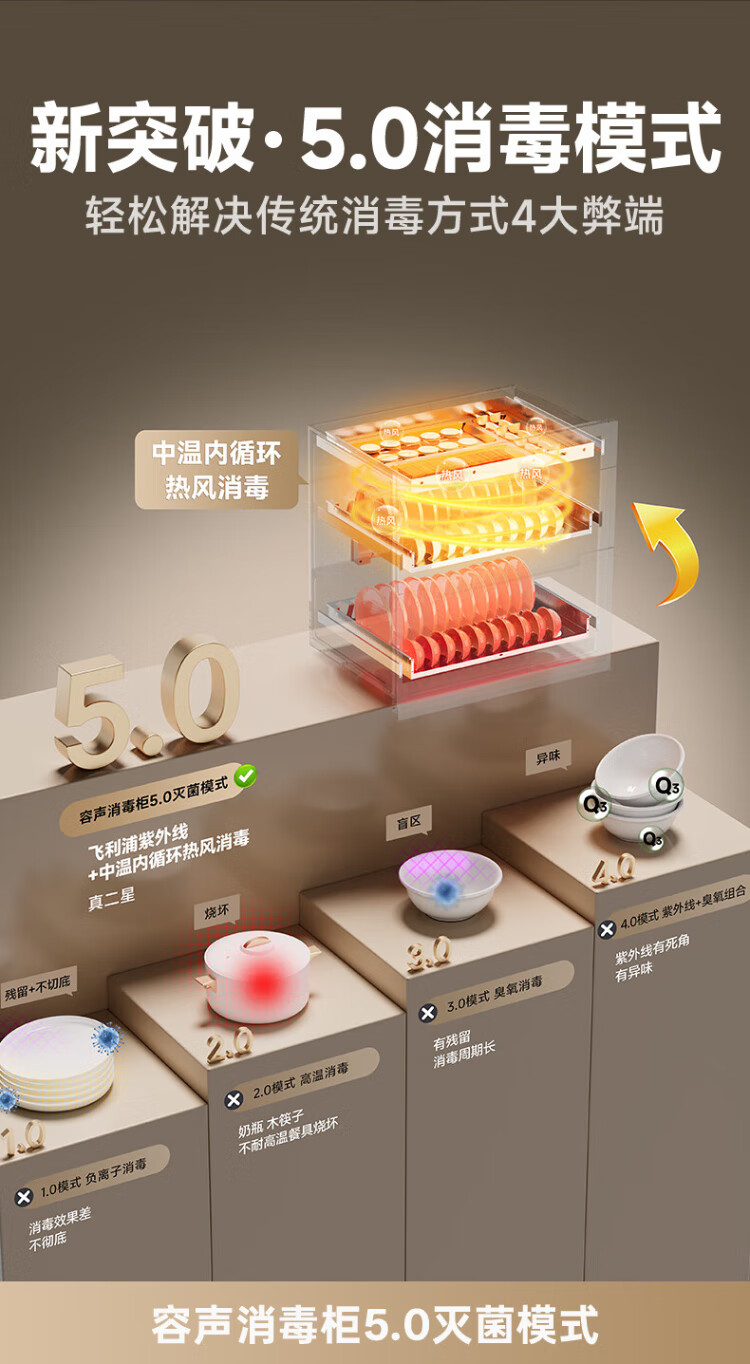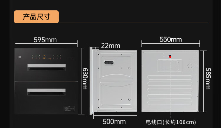 Rongsheng disinfection cabinet embedded household disinfection cupboard large capacity two-star tableware tableware kitchen high temperature inlaid type two-star 120L hot air circulation 304-layer rack 06A hot air