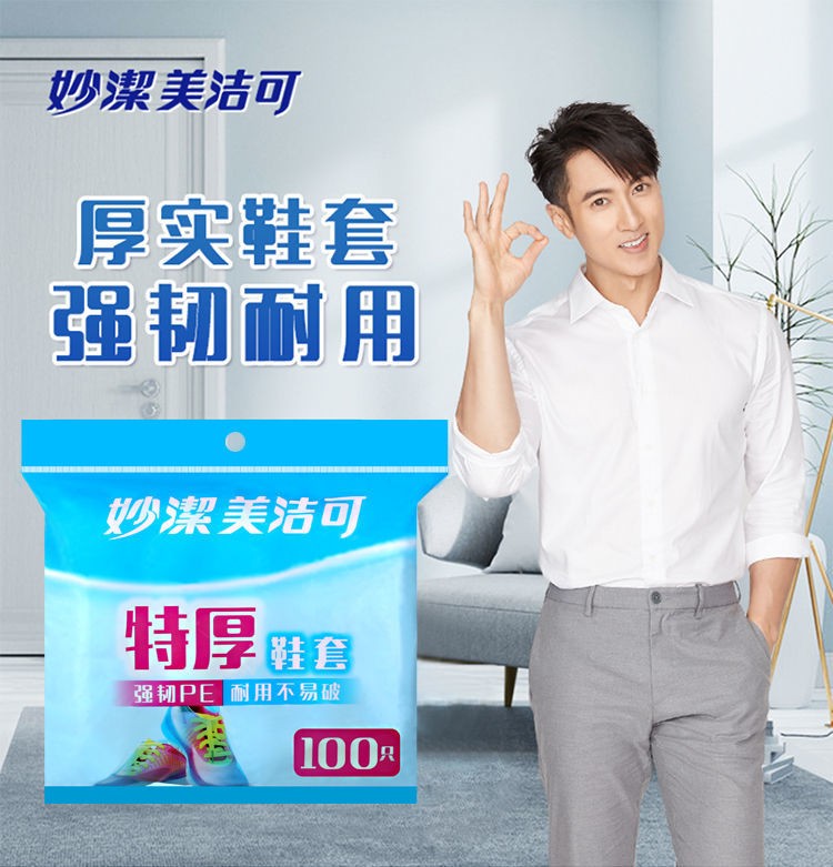 Miaojie Thickened Anti-slip Disposable Shoe Covers for Household Indoor Dustproof, Anti-slip, Unbreakable, Wear-Resistant and Durable Thickened Foot Covers Thickened Shoe Covers (100 pieces) 3 packs
