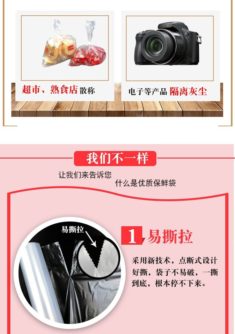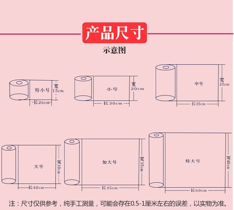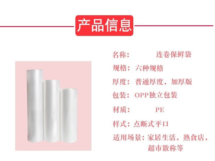 Fu Guan extra large, medium and small size plastic bag PE fresh-keeping bag thickened food sealing bag household supermarket breakpoint hand-tearable fresh-keeping bag large roll refrigerator without odor affordable version pure white 25*35