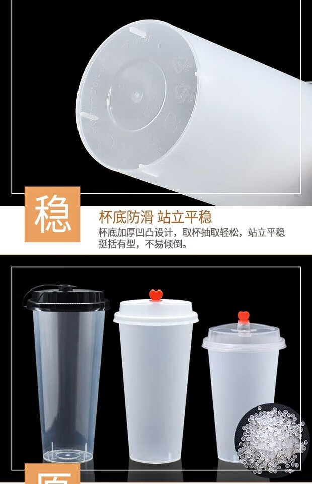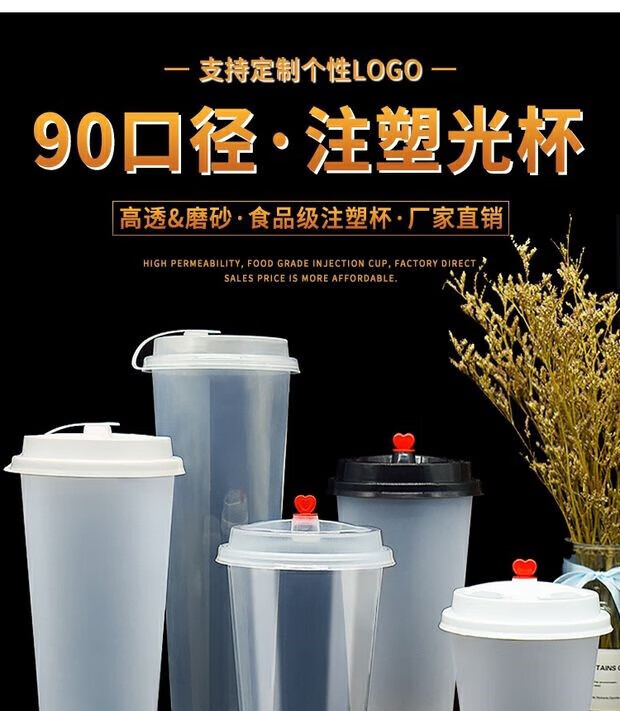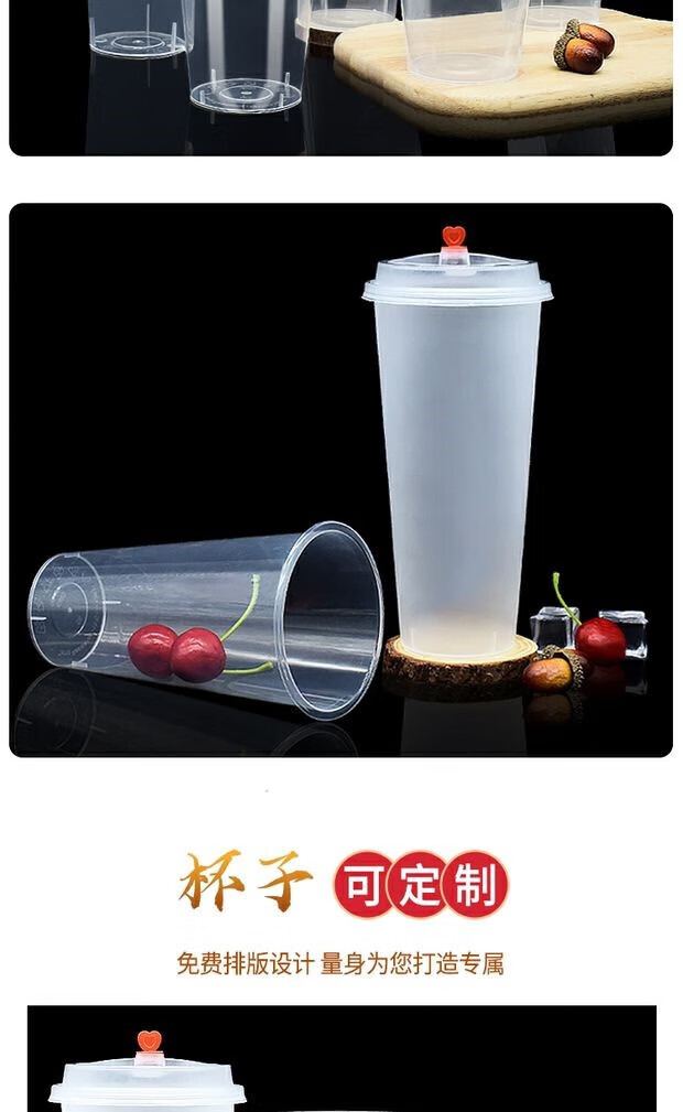 Disposable milk tea cup 90 caliber frosted injection plastic cup commercial cold drink juice packaging cup with lid customized 90/600ml frosted cup red heart lid 500 sets please keep the lid