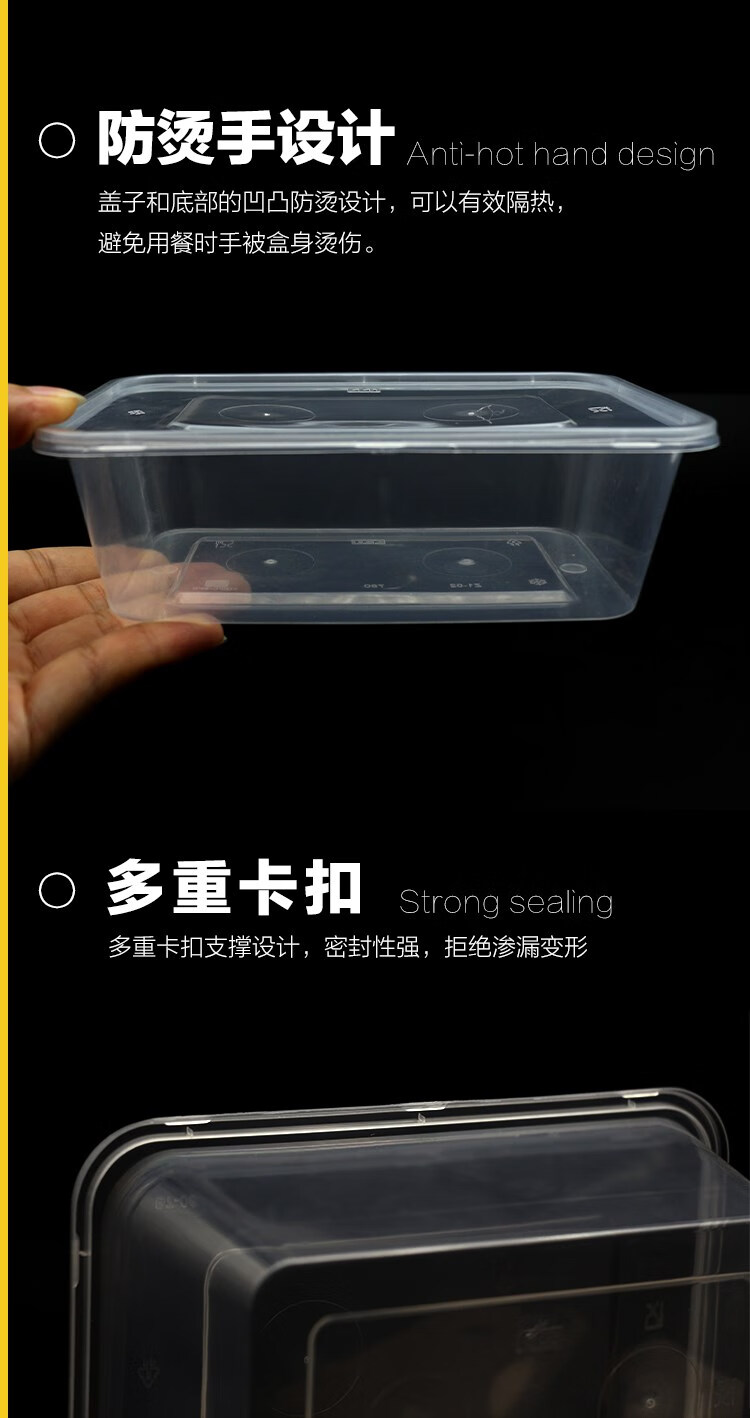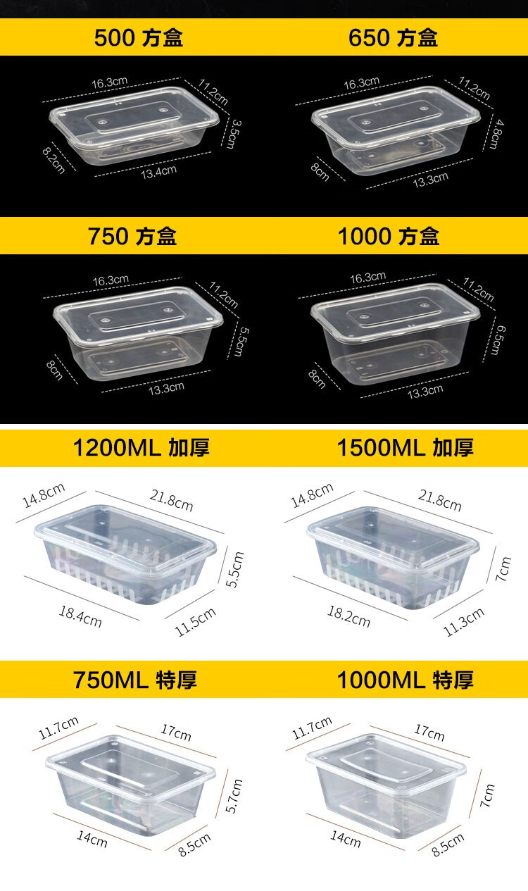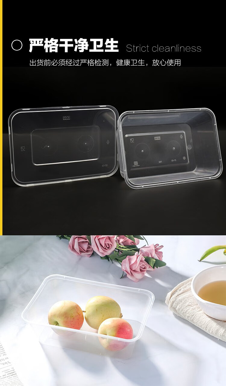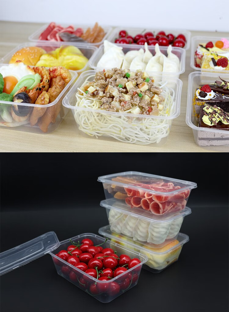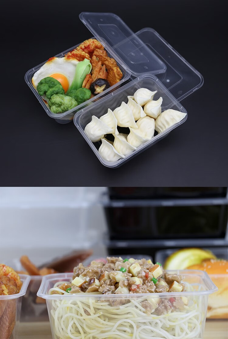 Disposable rectangular commercial lunch box takeaway packaging box thickened lunch box plastic food fast food box 1000 square box transparent (500 sets with lid) extra thick