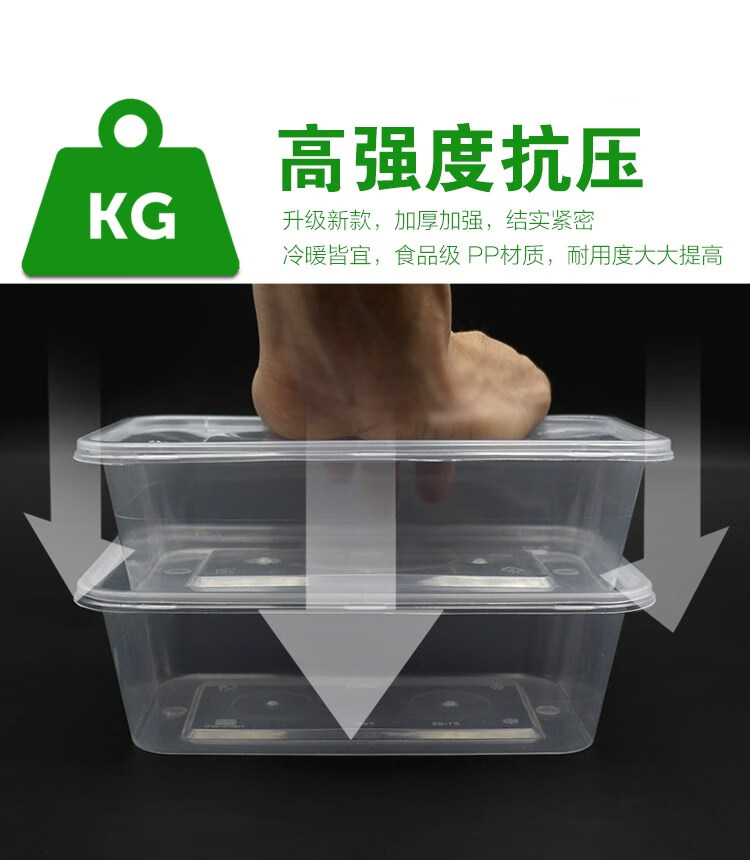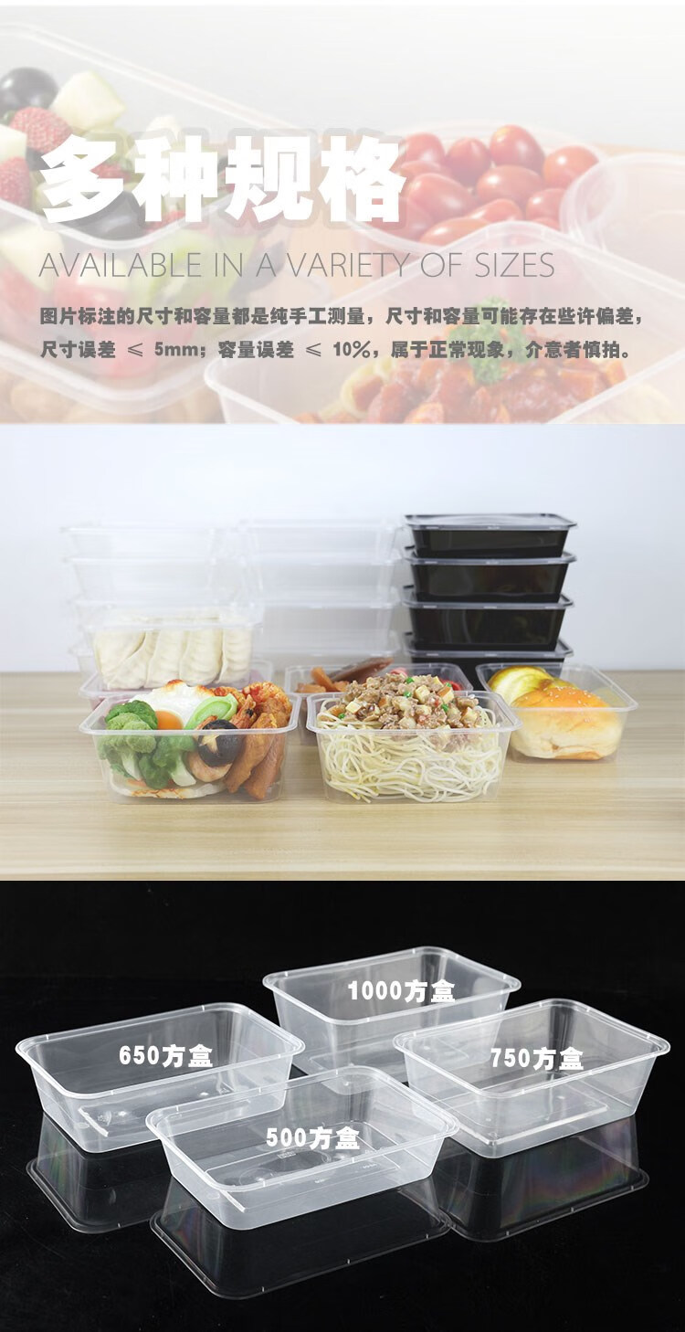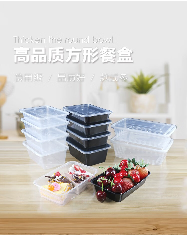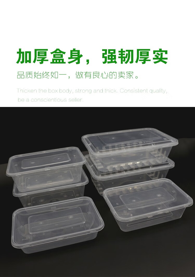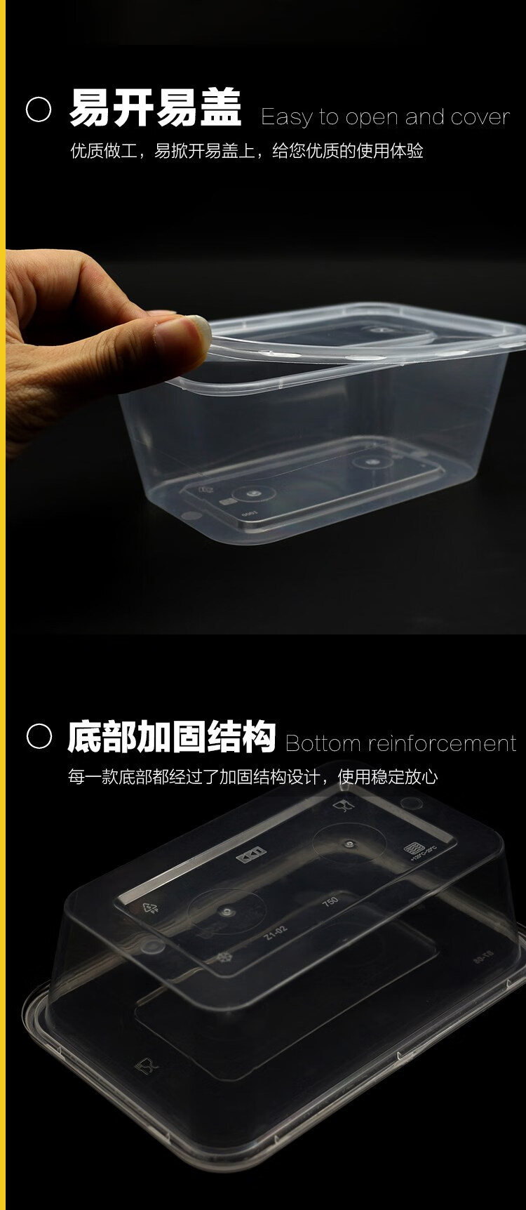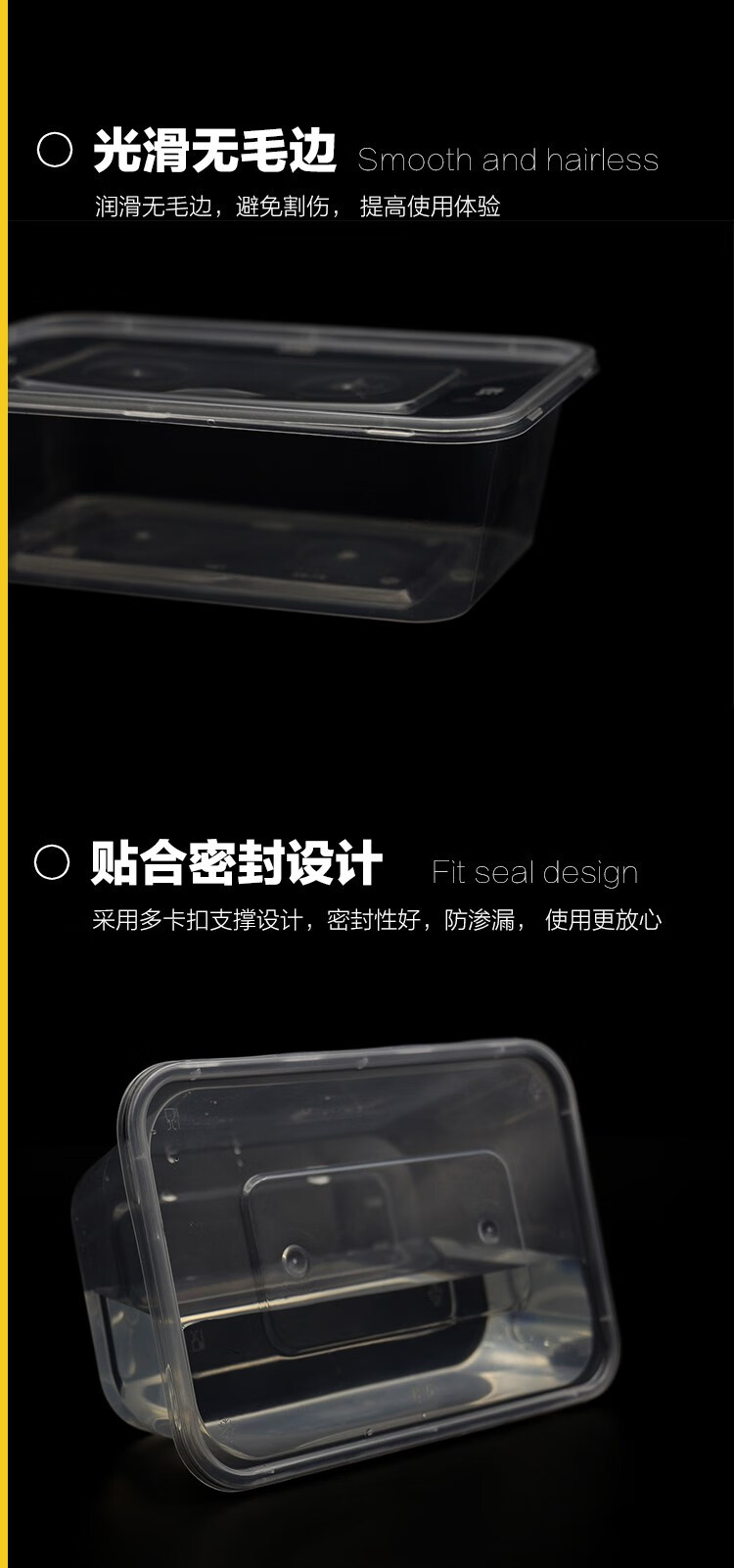 Disposable rectangular commercial lunch box takeaway packaging box thickened lunch box plastic food fast food box 1000 square box transparent (500 sets with lid) extra thick