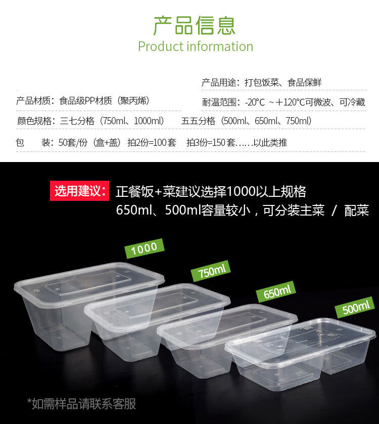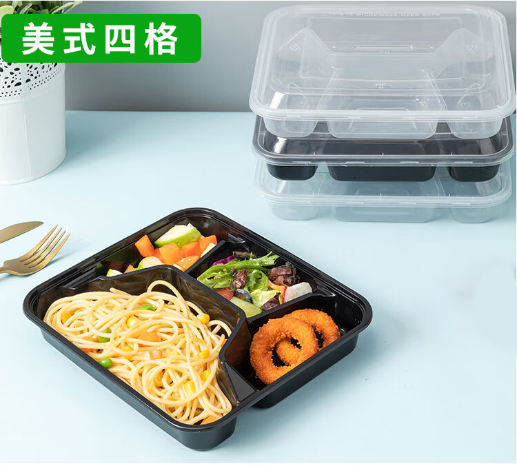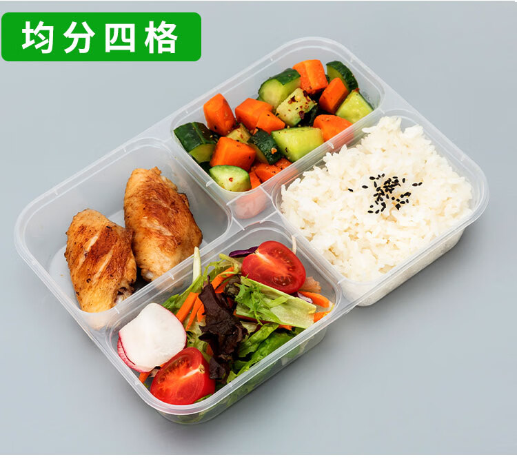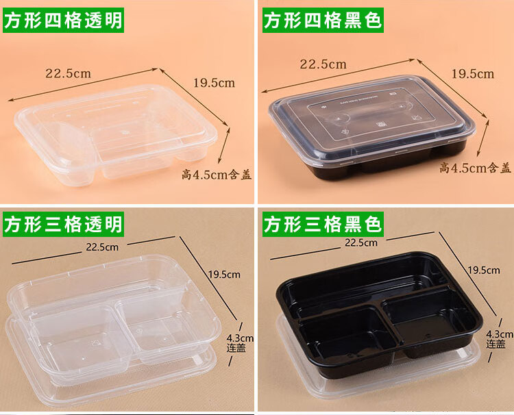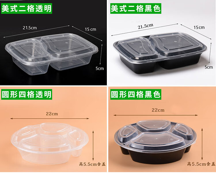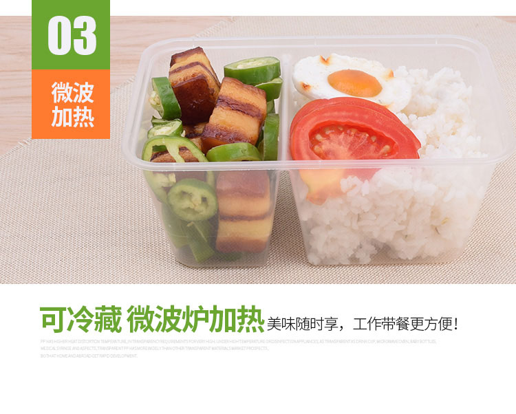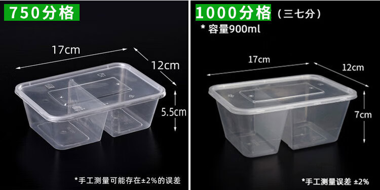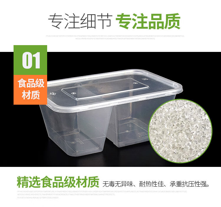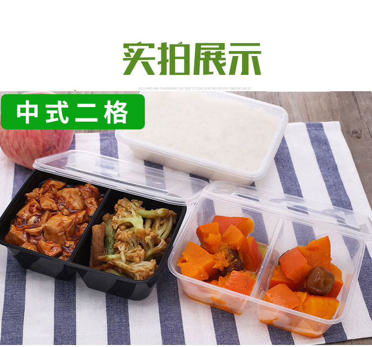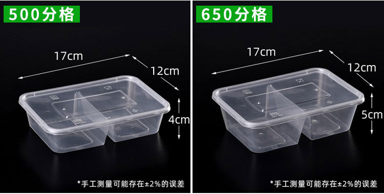 Hua'anjia disposable lunch box large-capacity disposable lunch box with multiple grids, rectangular and two grids, transparent home takeaway, transparent 500ml, 50-50 grids, 50 sets