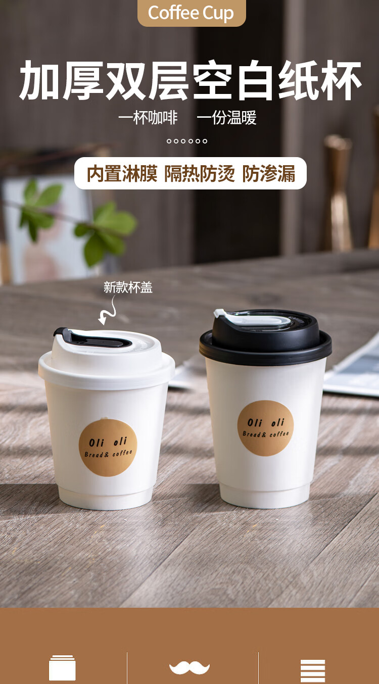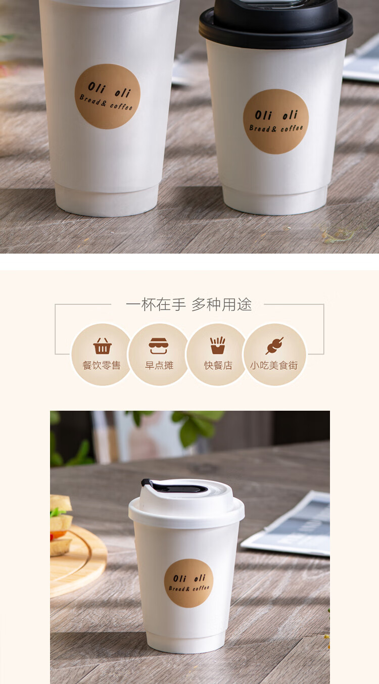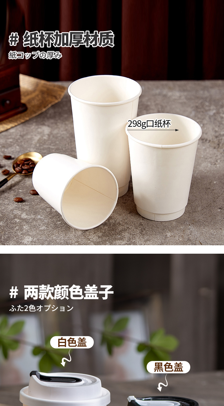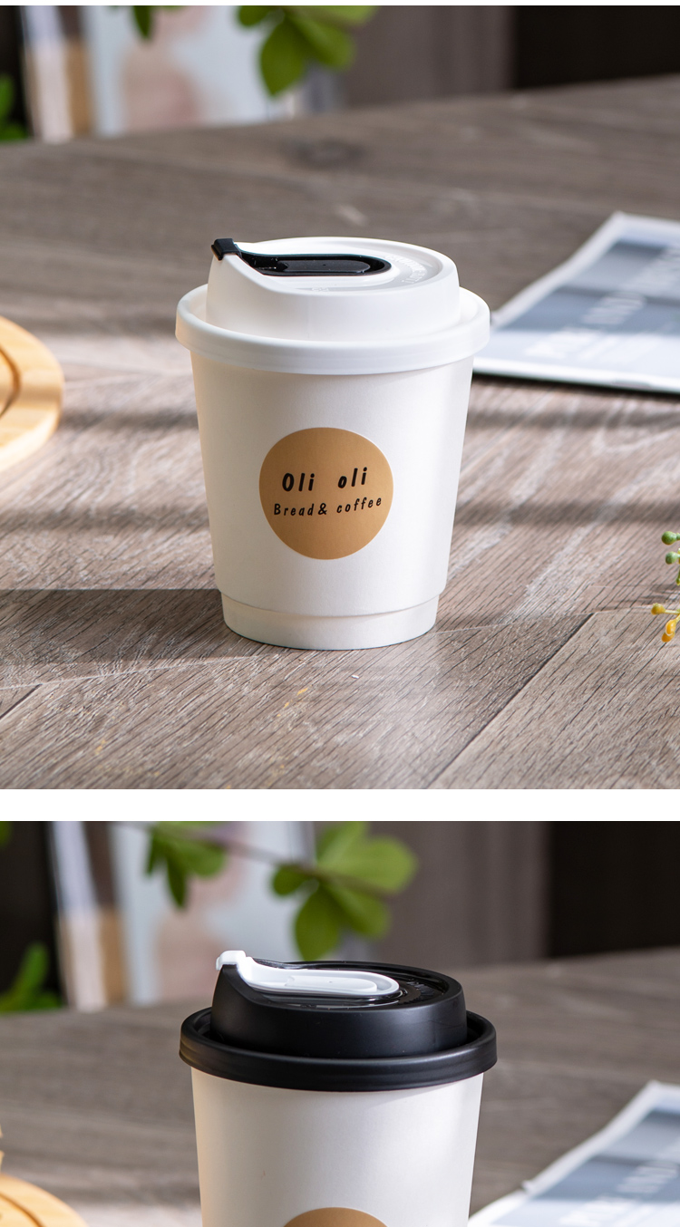 Muranol disposable coffee cup disposable white paper cup hot drink packaged milk tea cup household commercial thickening with lid 12oz double layer white cup + black lid + sticker 10 sets