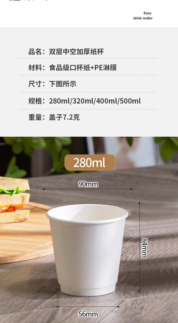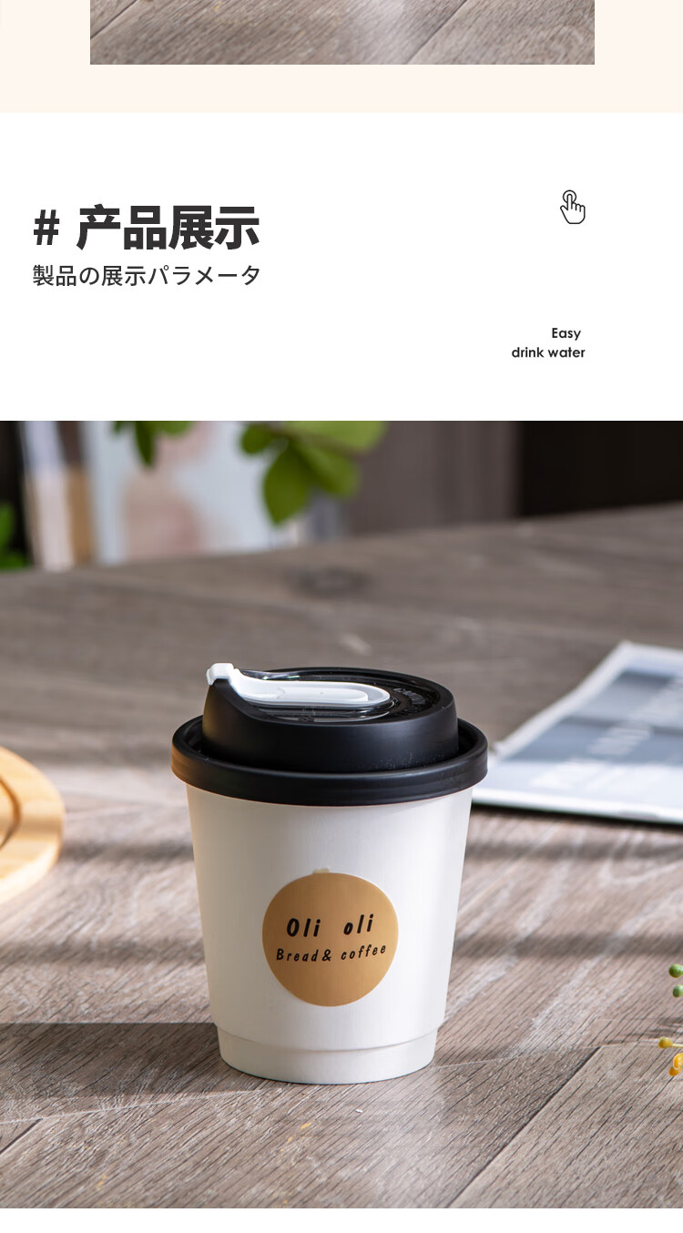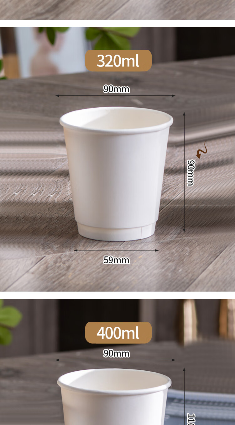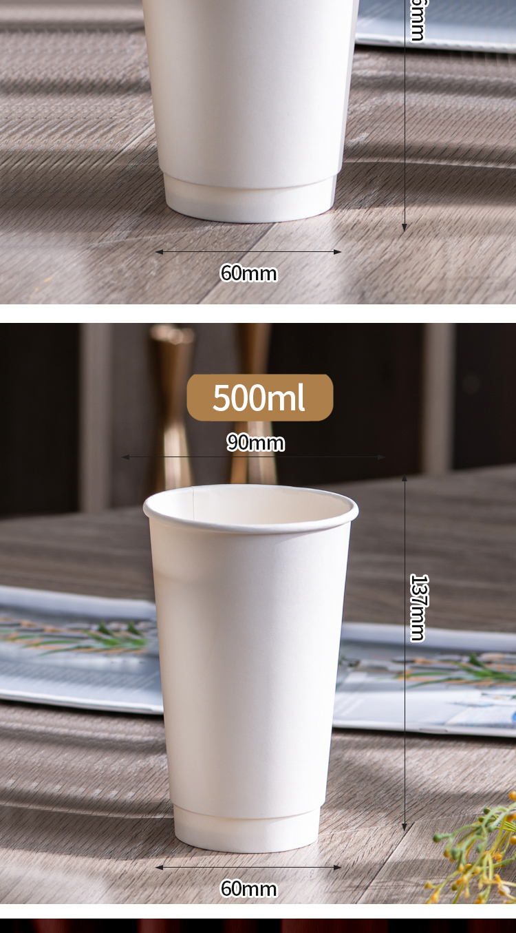 Muranol disposable coffee cup disposable white paper cup hot drink packaged milk tea cup household commercial thickening with lid 12oz double layer white cup + black lid + sticker 10 sets