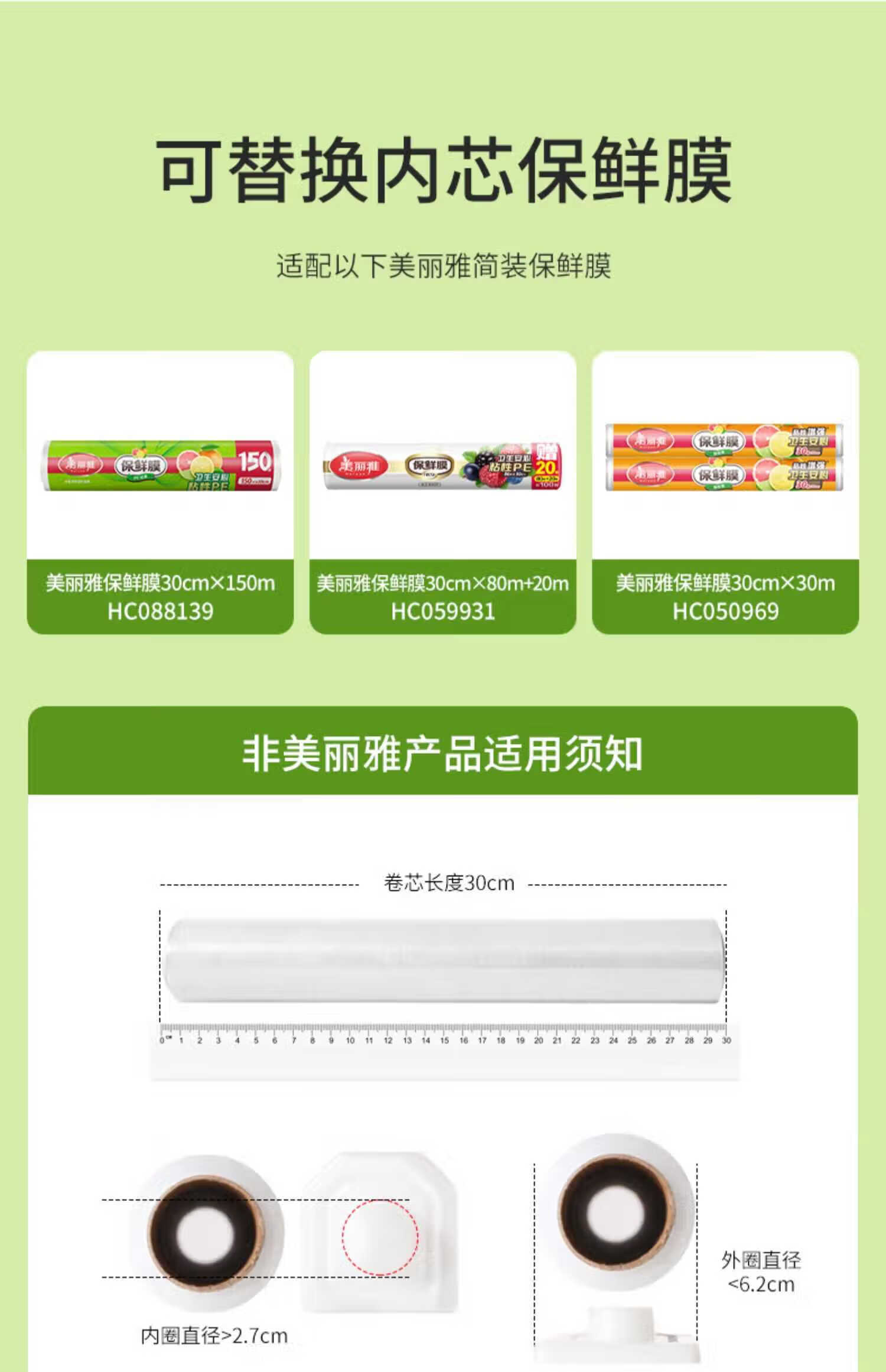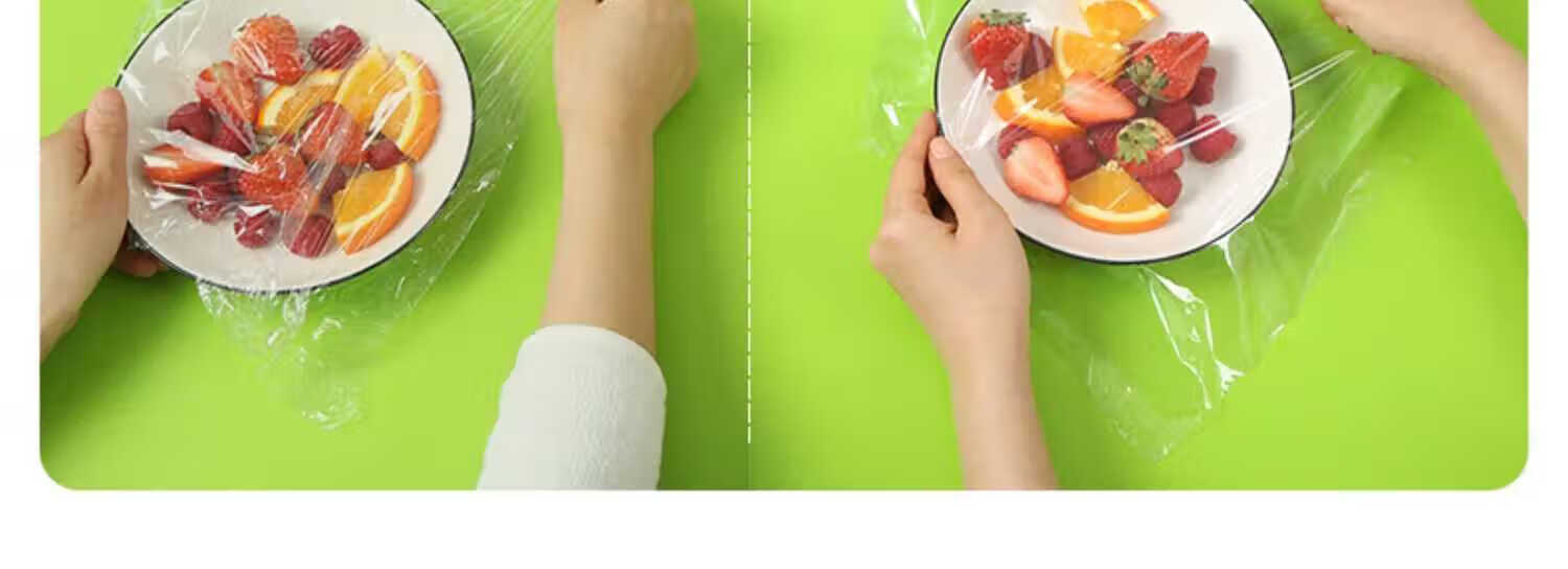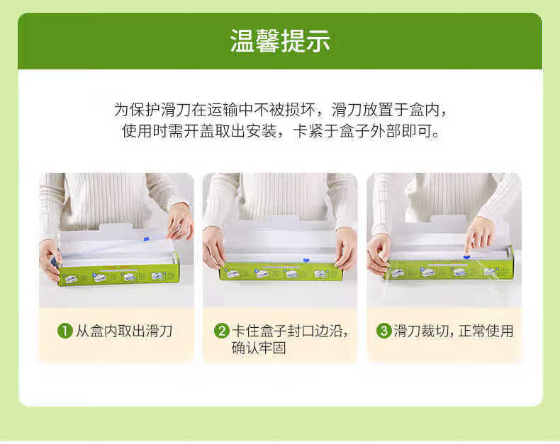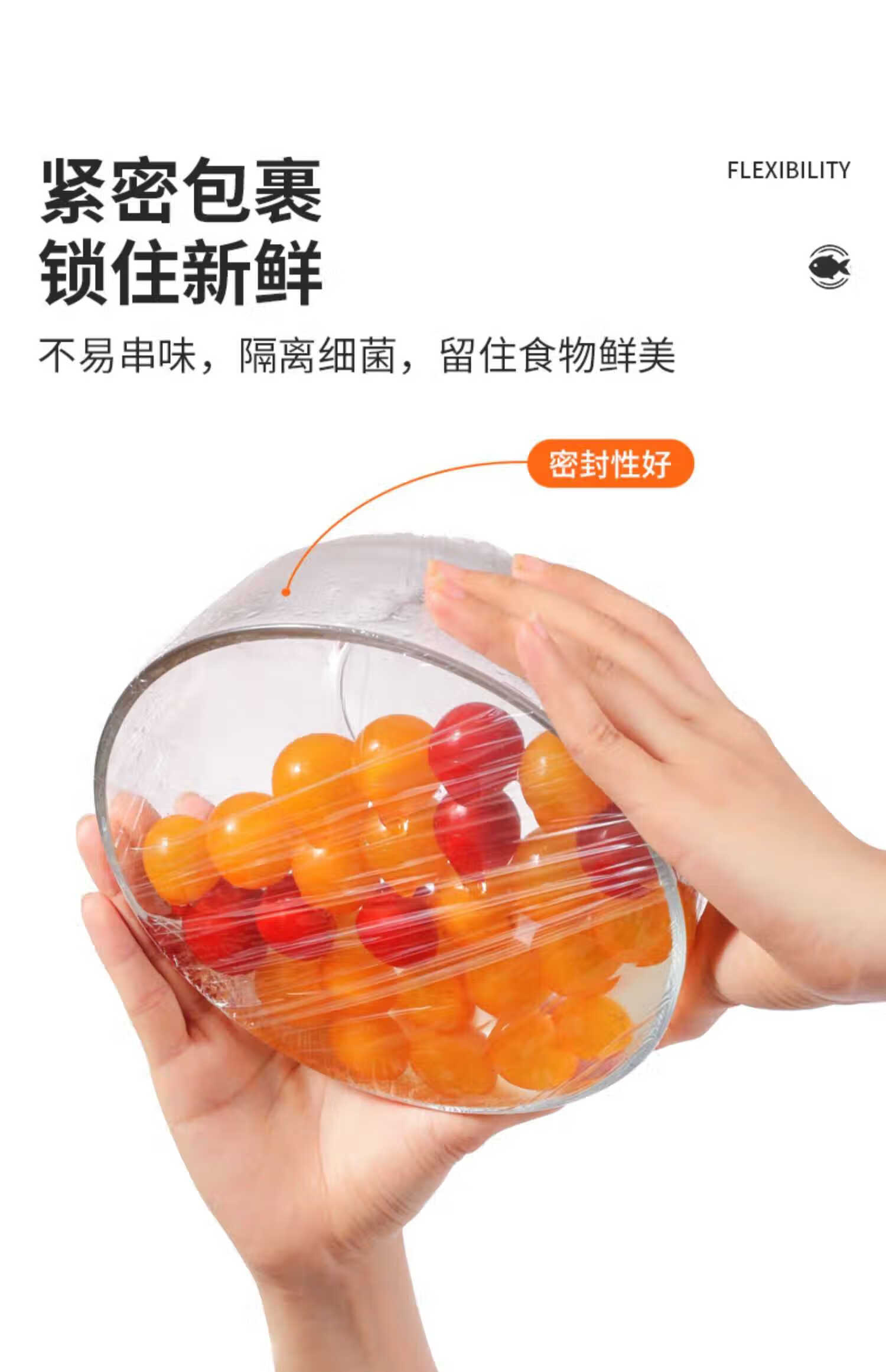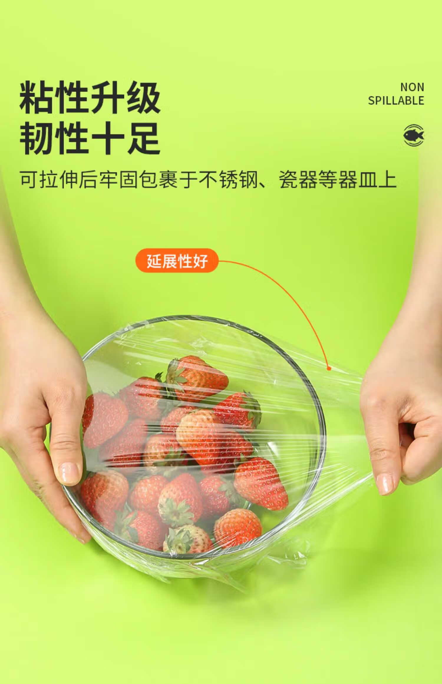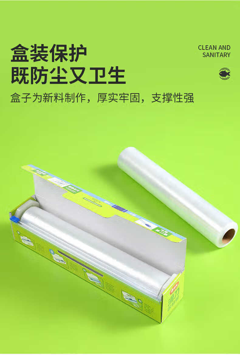 MARYYA sliding knife cling film with cutter high temperature and low temperature resistant food grade household commercial PE cling film box film integrated sliding knife cling film 150m*3