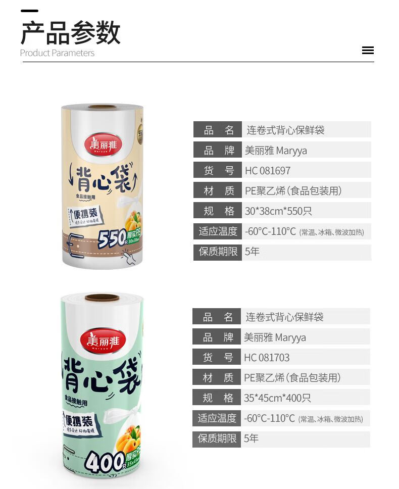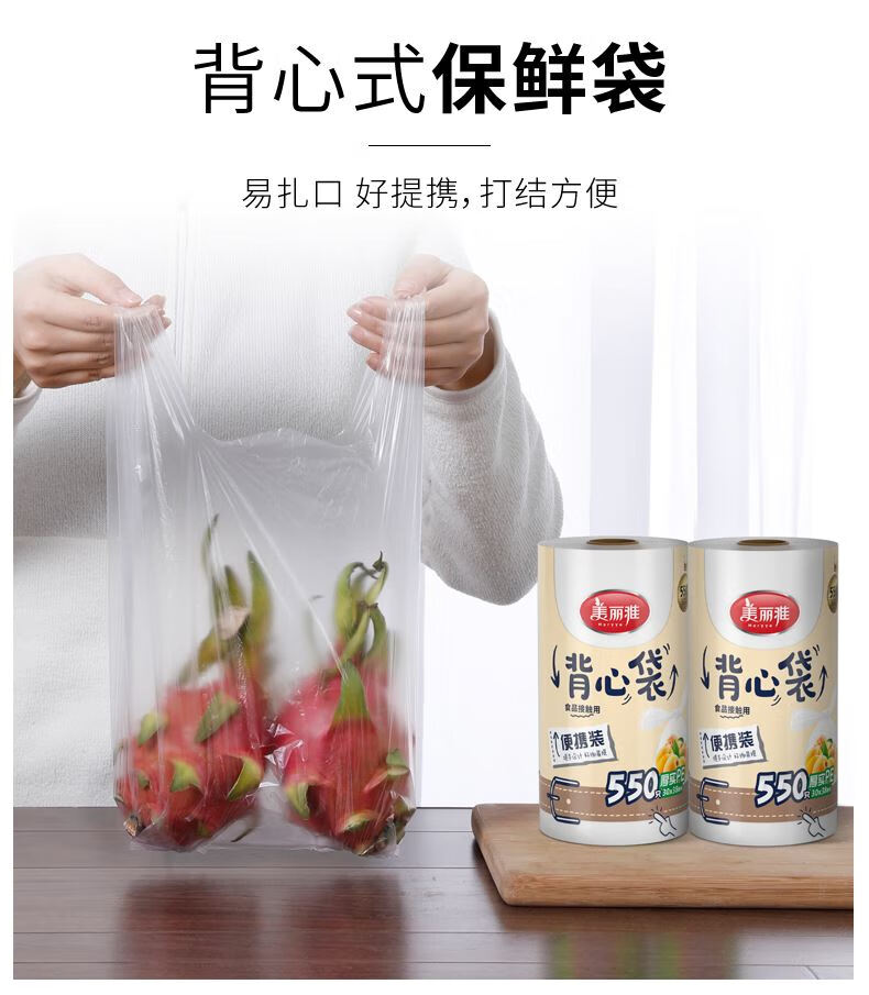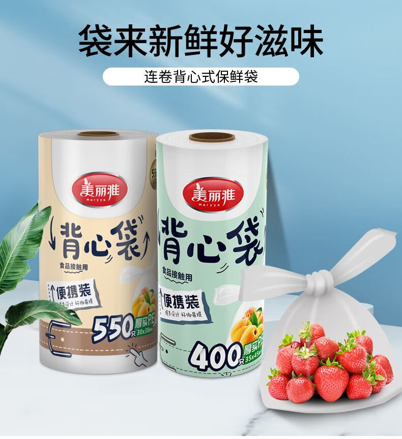 MARYYA food fresh-keeping bag vest-style thickened portable disposable rolled refrigerator point-break plastic bag 30*38CM 550 pieces 1