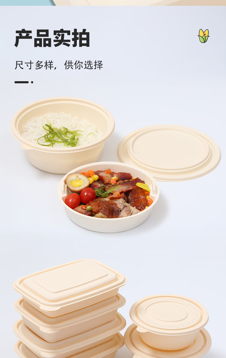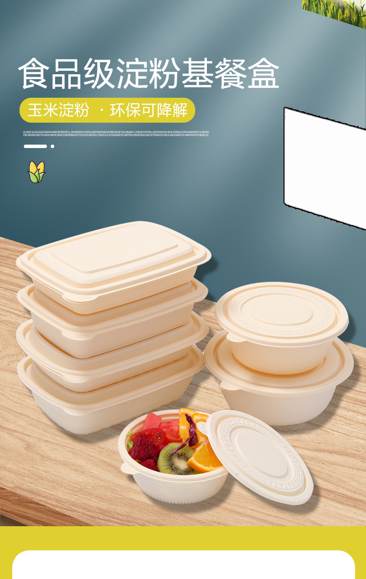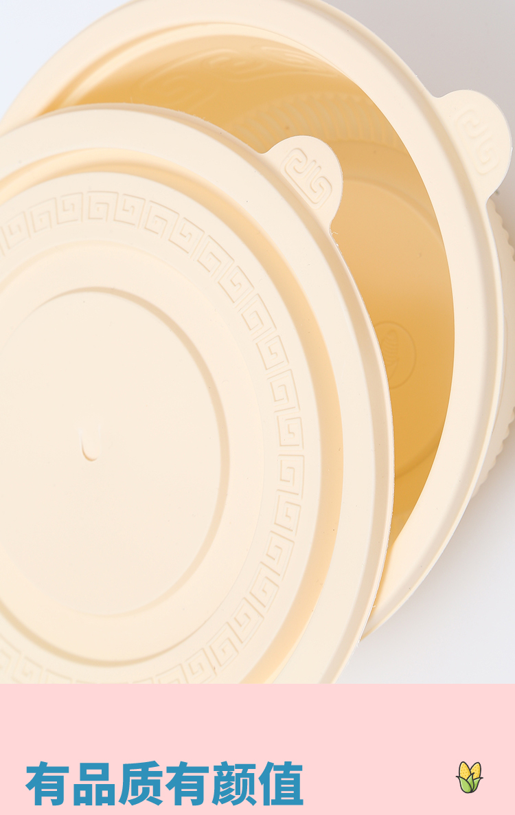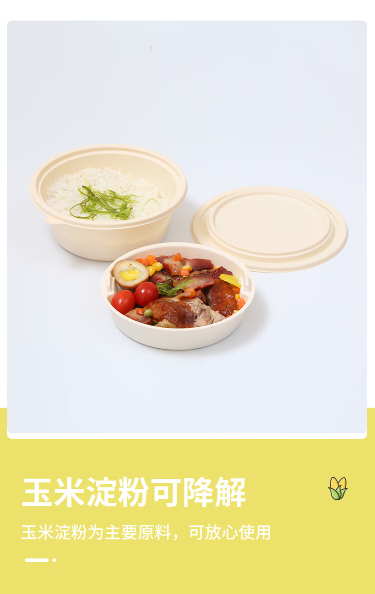 Muranol Disposable Corn Starch Lunch Box Lunch Box Environmentally Friendly Biodegradable Takeaway Packed Lunch Box Soup Bowl Starch-based Tableware Octagonal 2500ml + Lid (50 Sets)
