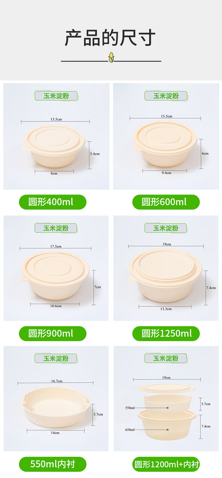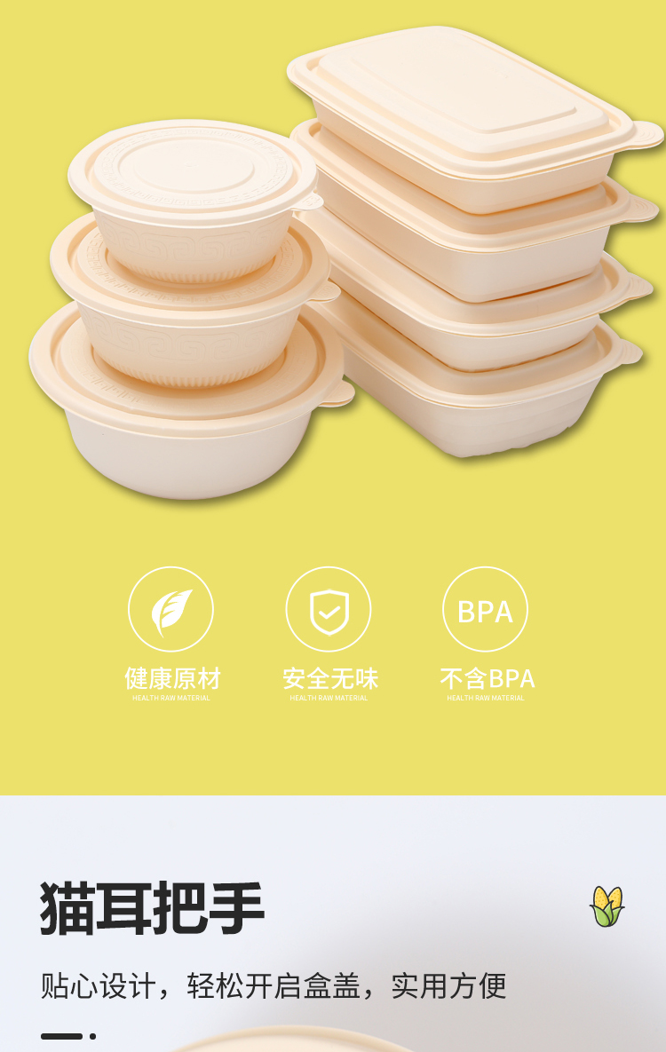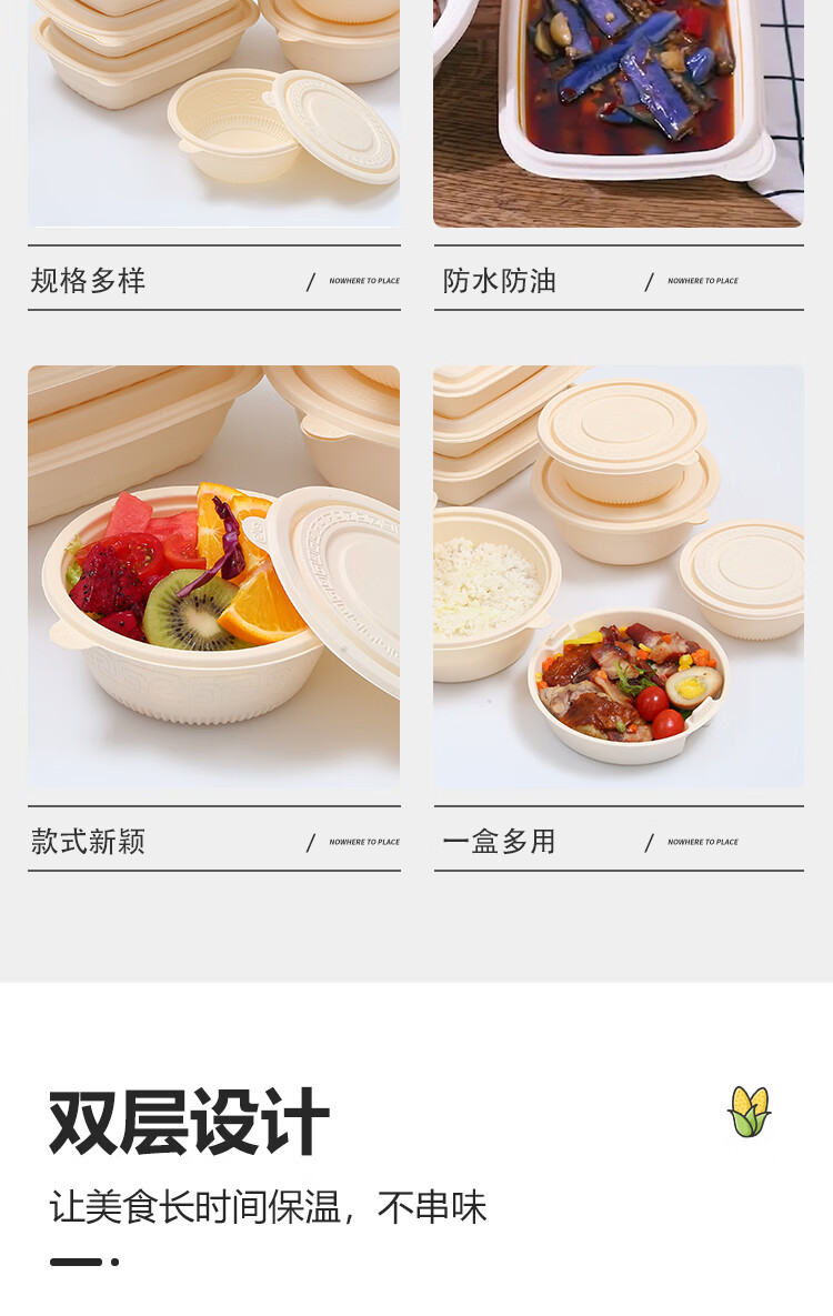 Muranol Disposable Corn Starch Lunch Box Lunch Box Environmentally Friendly Biodegradable Takeaway Packed Lunch Box Soup Bowl Starch-based Tableware Octagonal 2500ml + Lid (50 Sets)