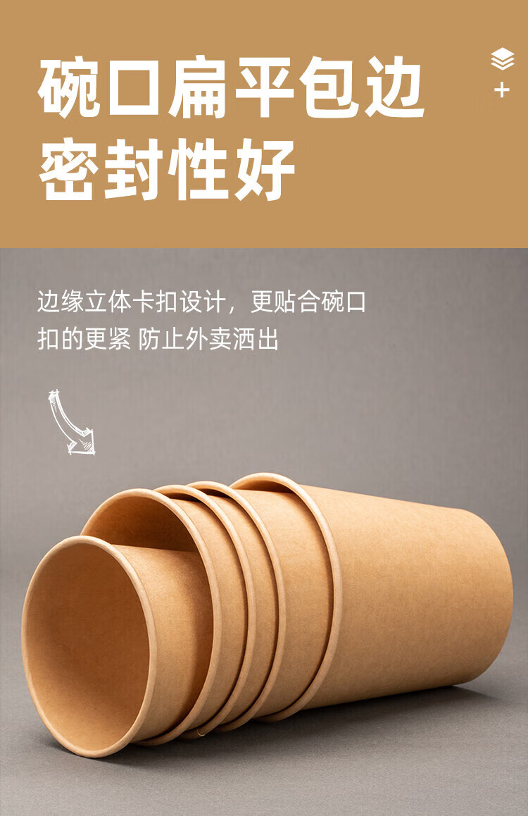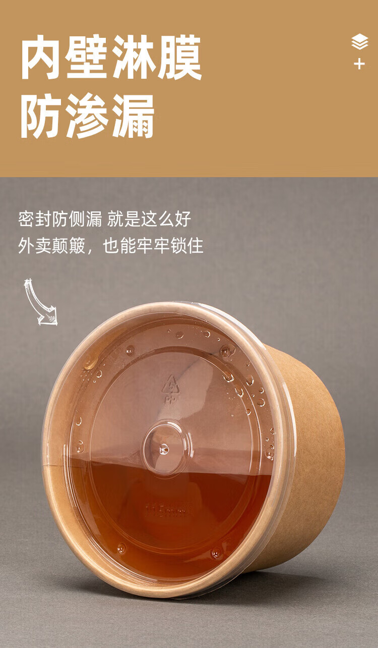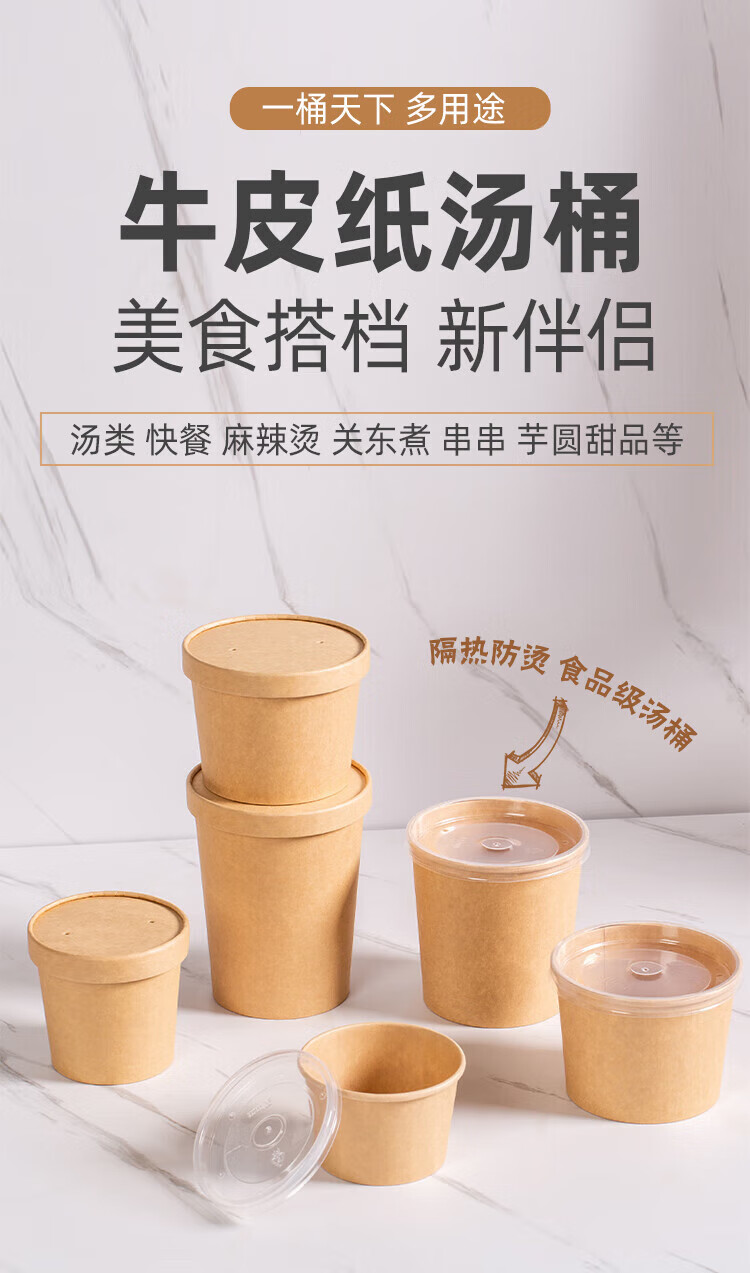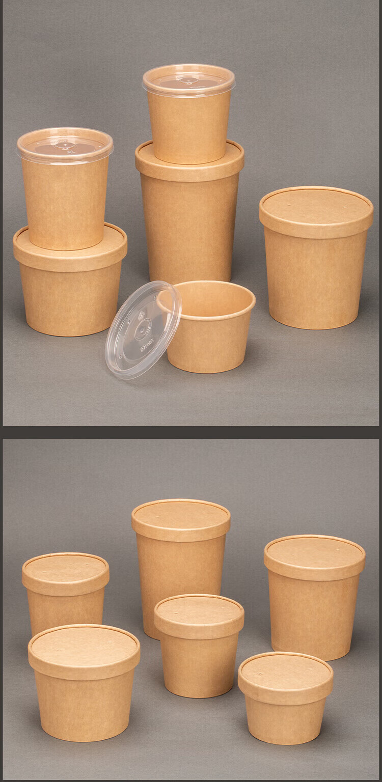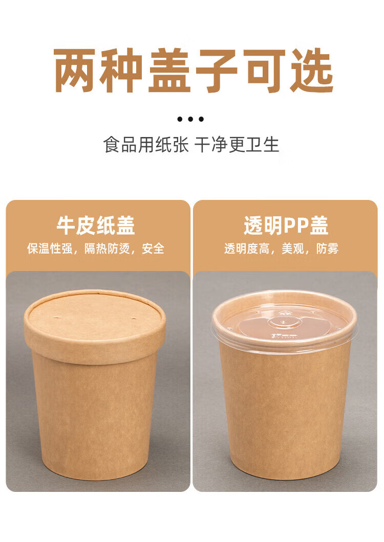 QINCHENG Disposable Kraft Paper Soup Bowl Round Soup Cup Soup Bowl Packing Box Porridge Bowl with Cover Thick Paper Box Biodegradable 16 oz Thickened Soup Bucket + Paper Cover (about 480ml) 50 pieces/trial pack