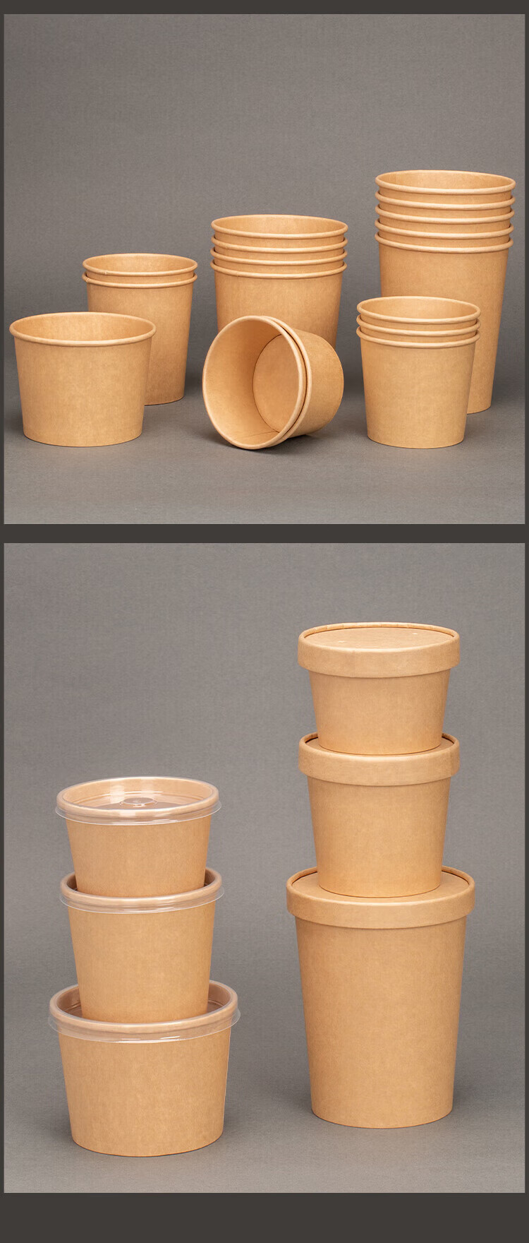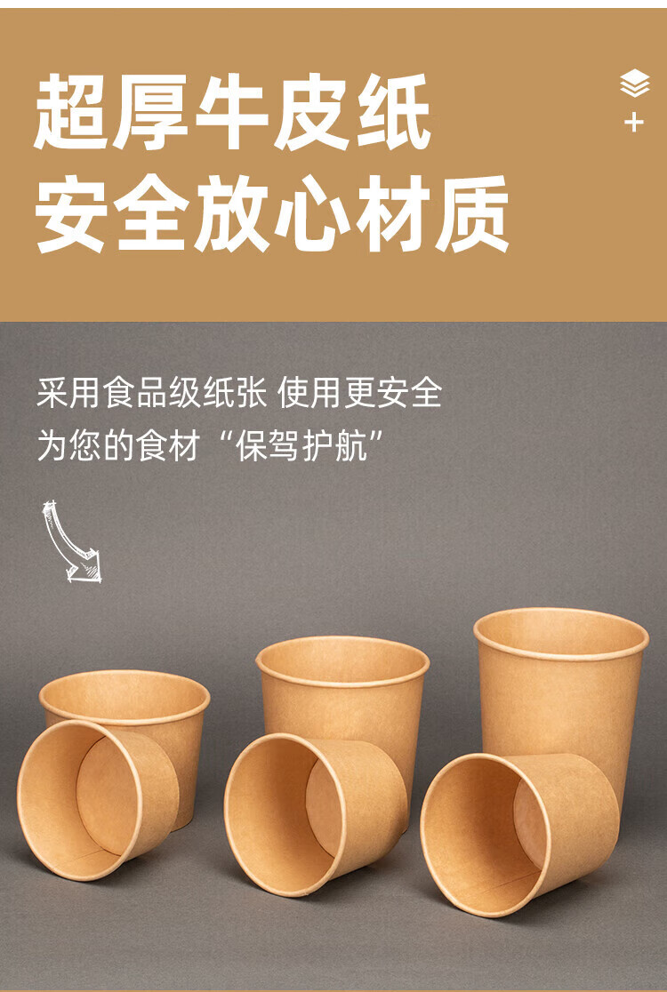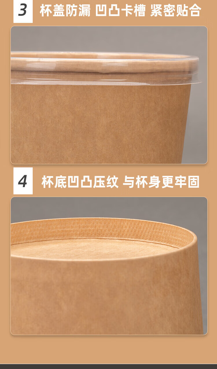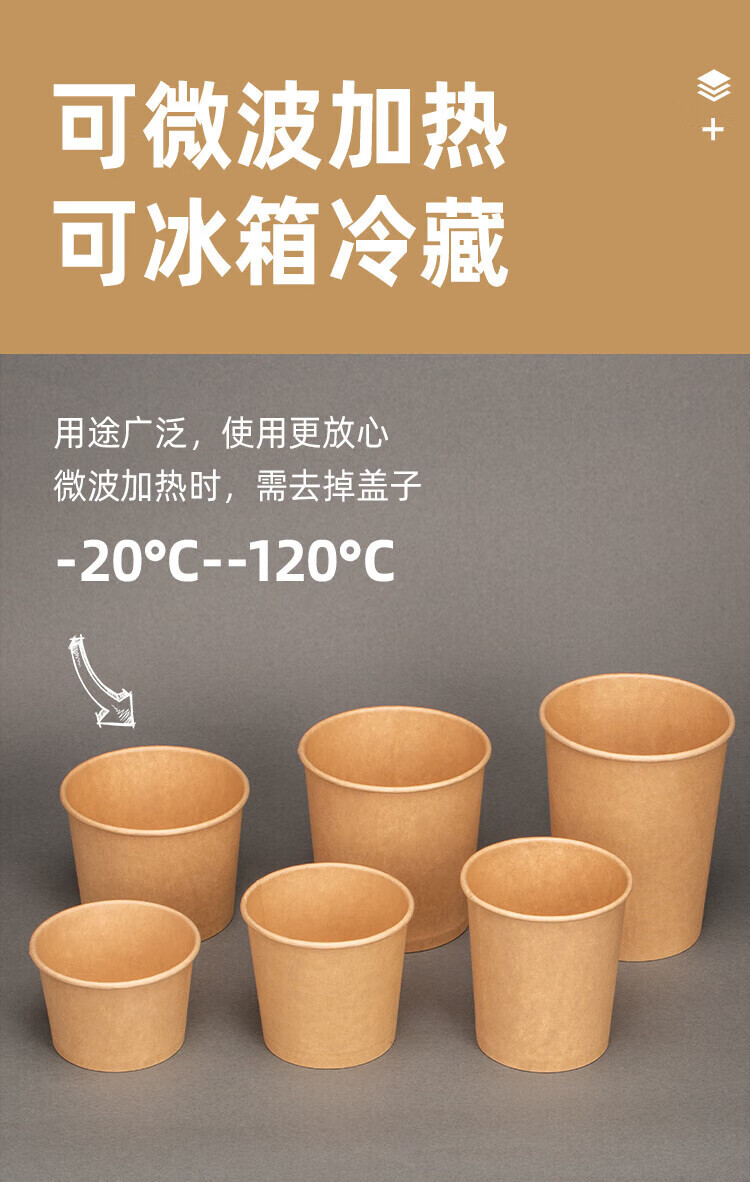 QINCHENG Disposable Kraft Paper Soup Bowl Round Soup Cup Soup Bowl Packing Box Porridge Bowl with Cover Thick Paper Box Biodegradable 16 oz Thickened Soup Bucket + Paper Cover (about 480ml) 50 pieces/trial pack