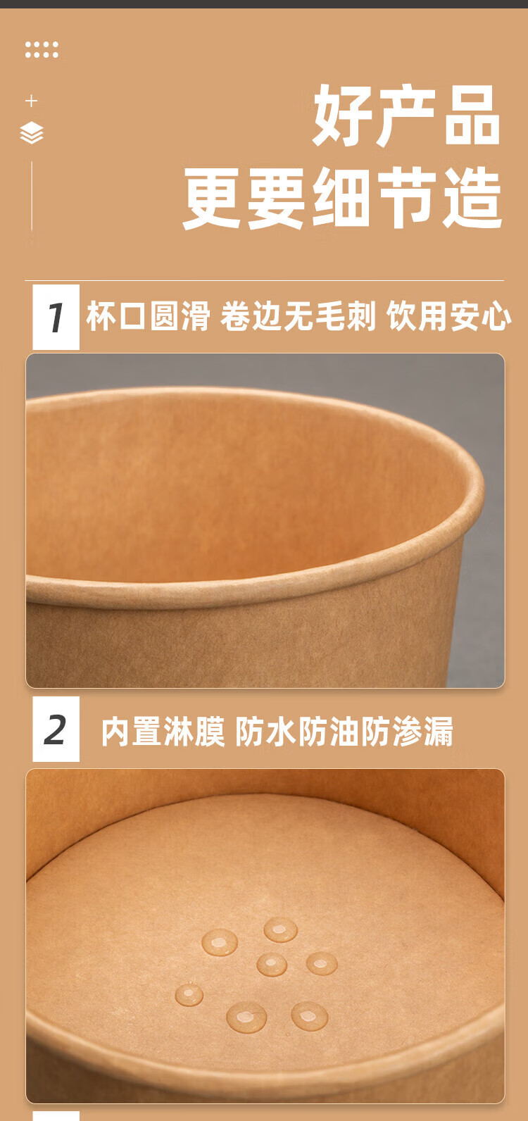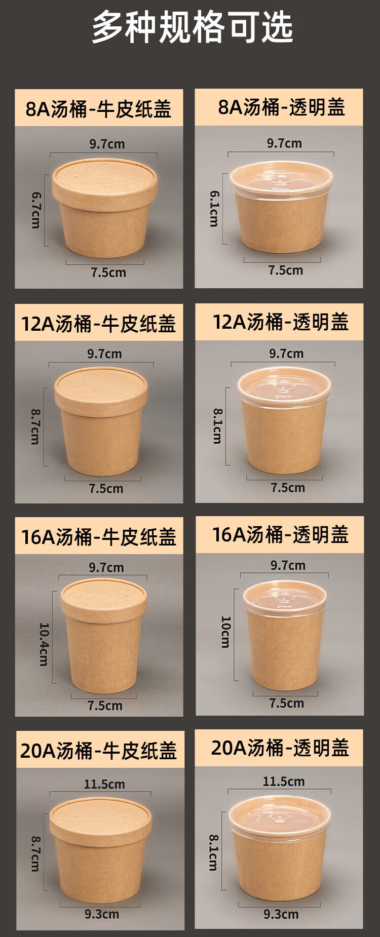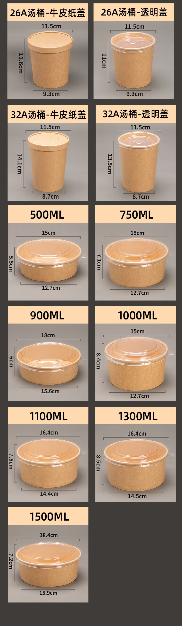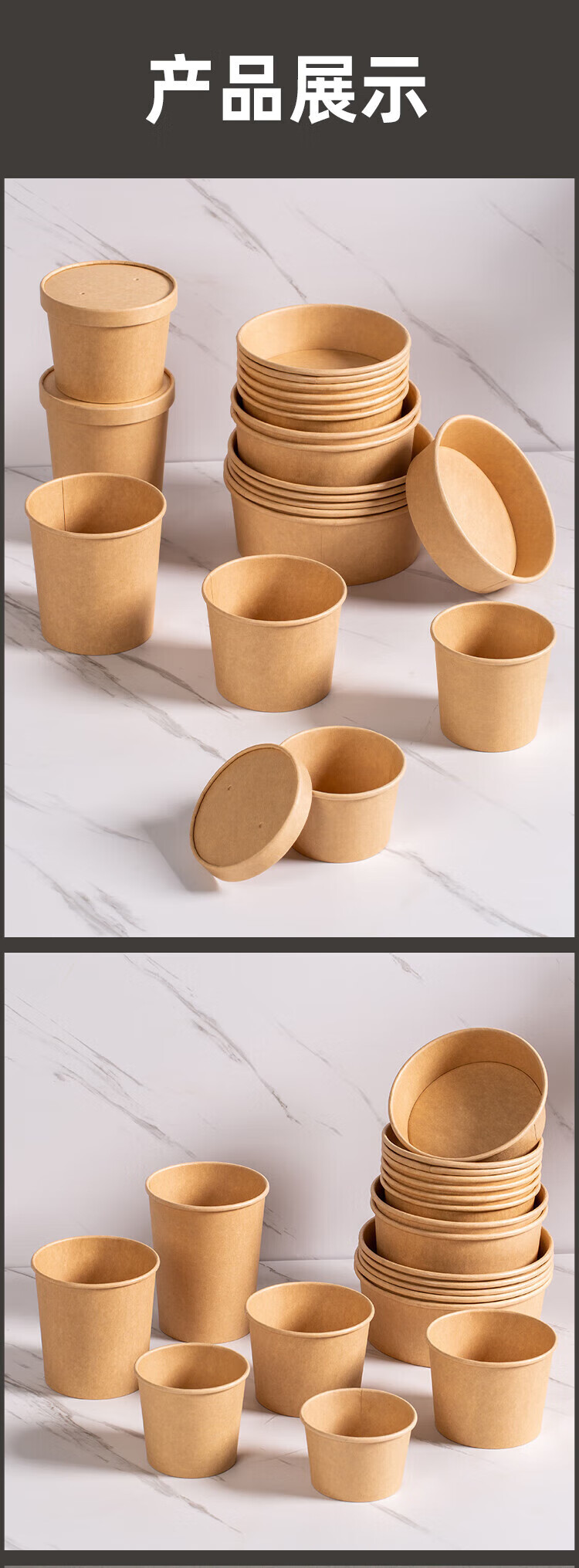 QINCHENG Disposable Kraft Paper Soup Bowl Round Soup Cup Soup Bowl Packing Box Porridge Bowl with Cover Thick Paper Box Biodegradable 16 oz Thickened Soup Bucket + Paper Cover (about 480ml) 50 pieces/trial pack