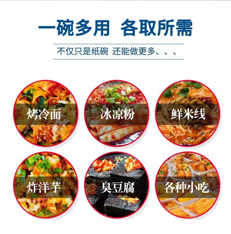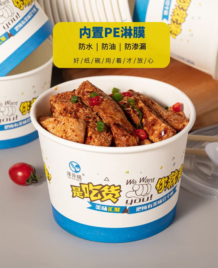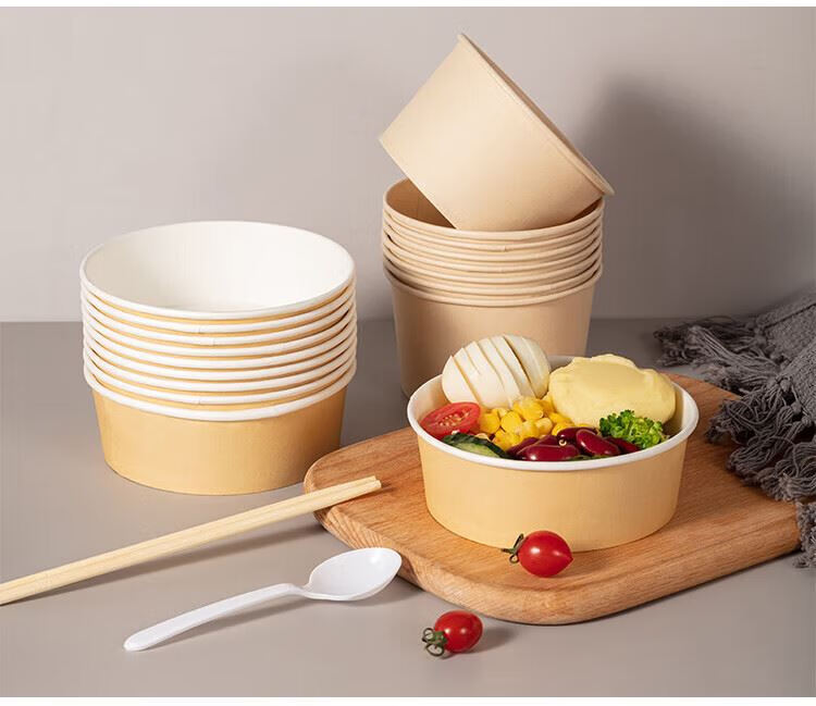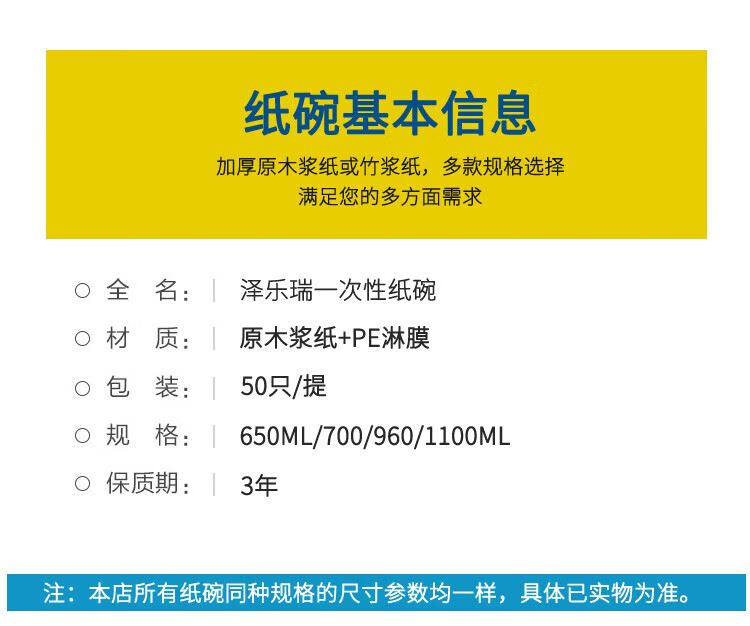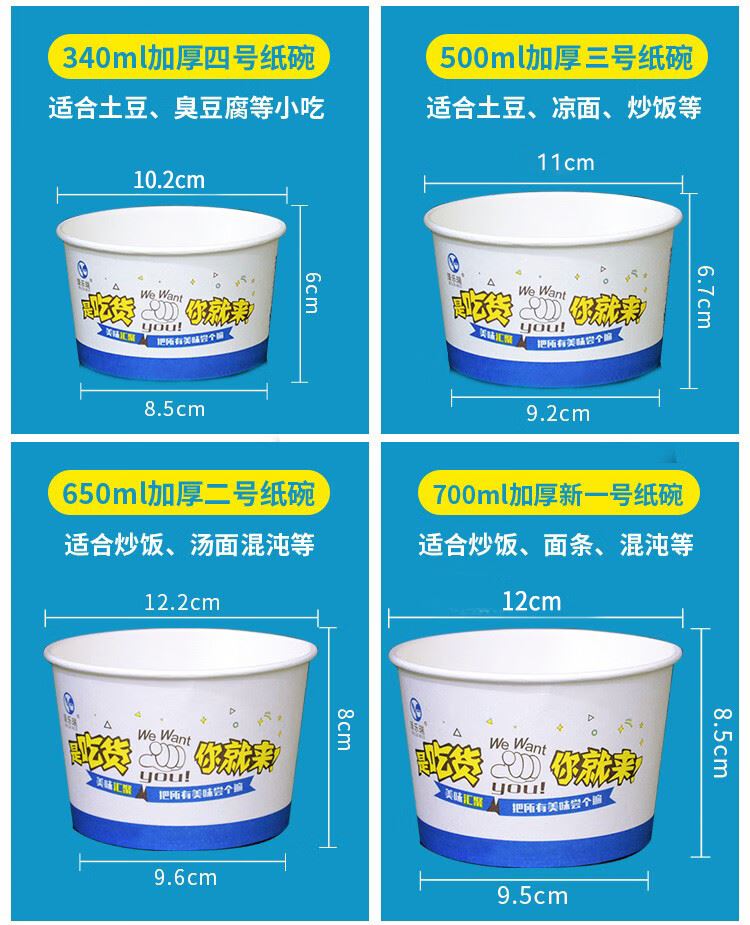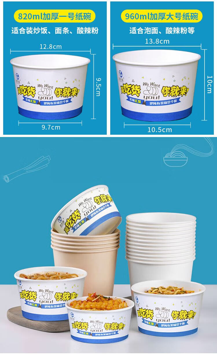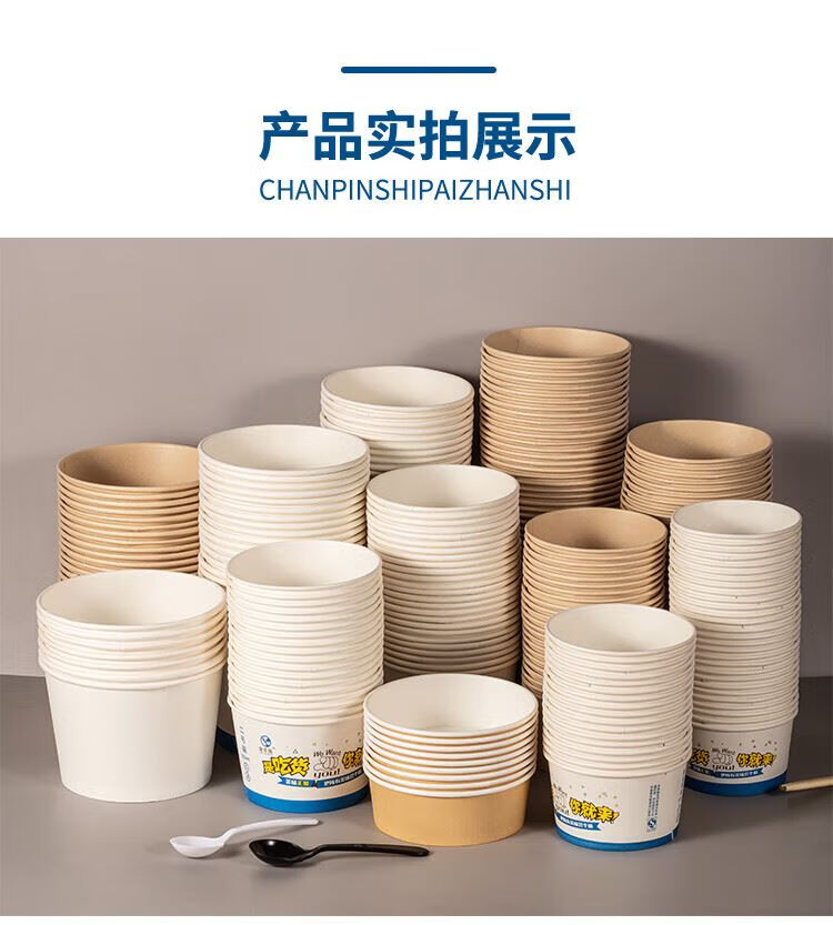 Zhitian disposable paper bowl round packaging box take-out bowl stinky tofu lunch box full box commercial customization 700ML thickened 200 pieces (bowl)