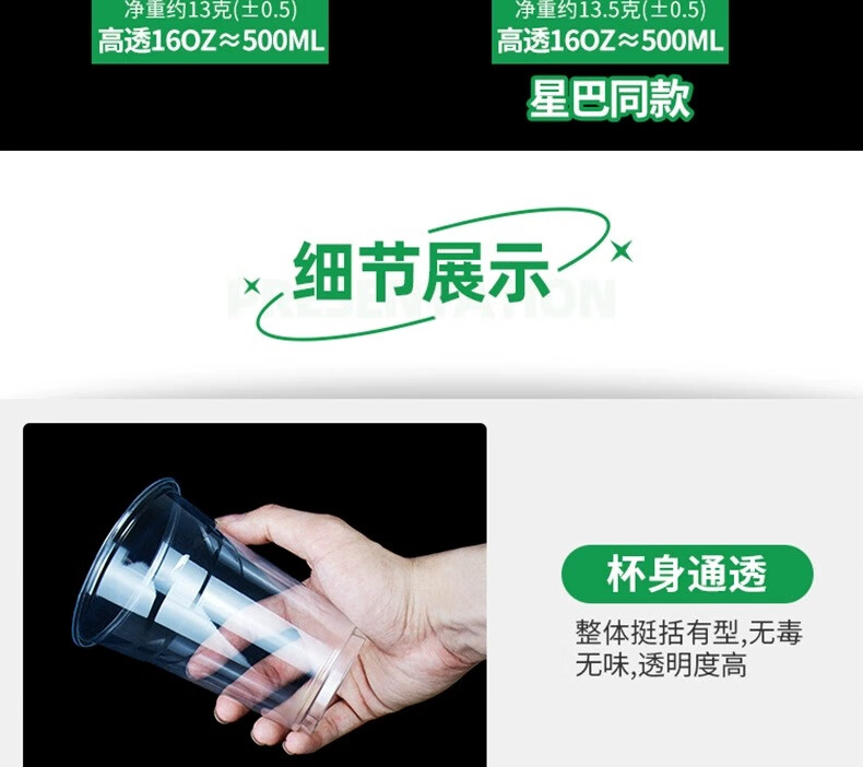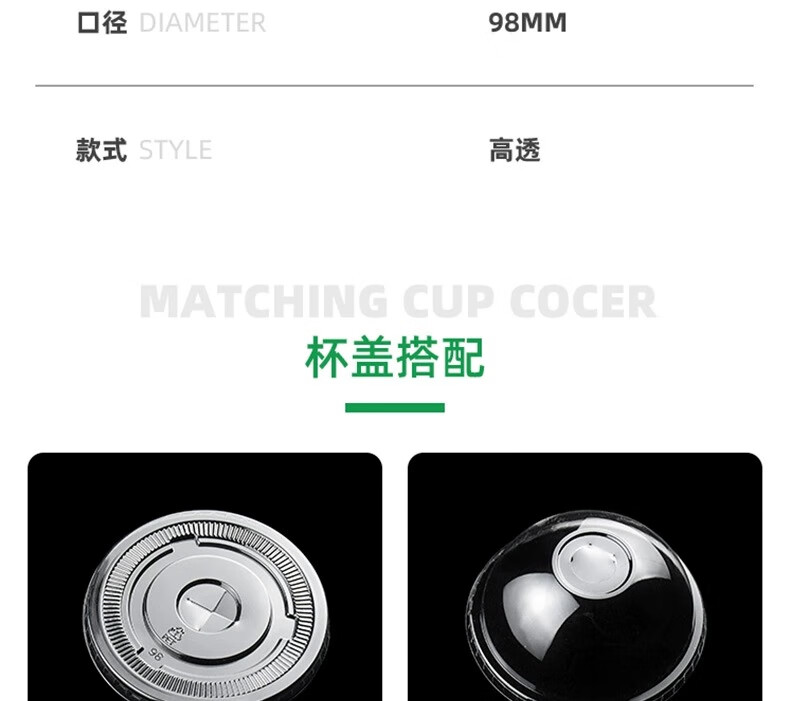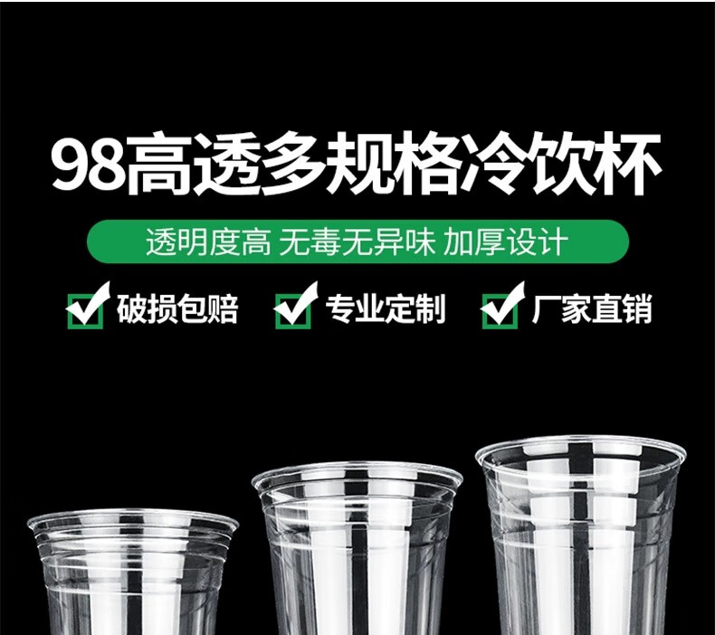 Hua'anjia Commercial Wholesale Stalls Handmade Lemon Tea Disposable Cups with Lid, Cup + Flat Lid + Straw + Anti-leak Paper + Cup Cover 100 pieces 500ml