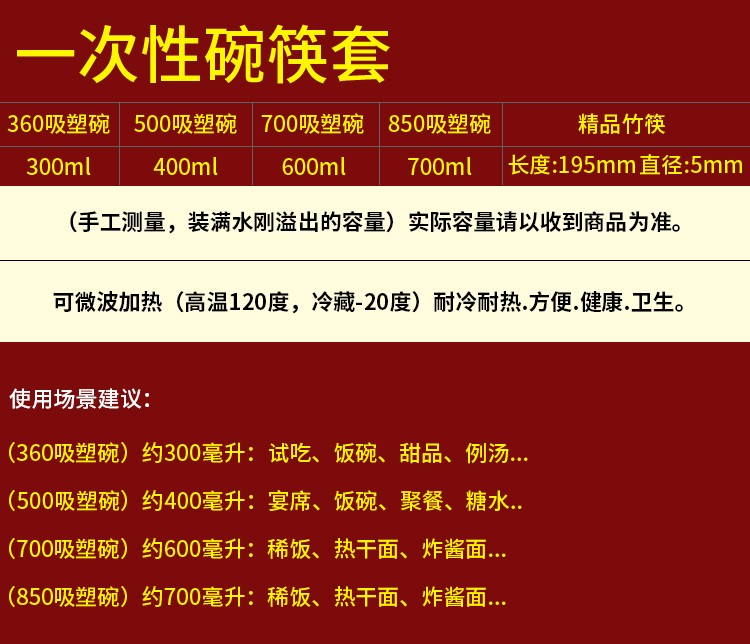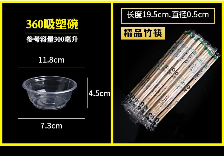 Hua'anjia disposable tableware and chopsticks set for home banquets and weddings New Year's Eve plastic round 360 bowl type 50 chopsticks 50 pairs
