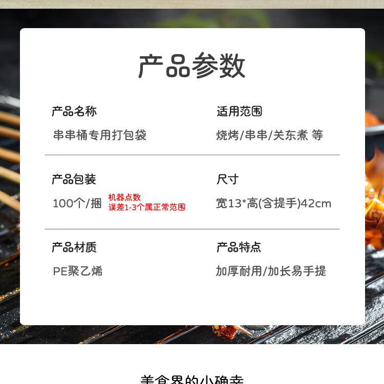 Lilang BBQ bucket packing bag Bobo chicken skewers bucket packing bag fried skewers barbecue plastic bag cold pot skewers special bag 13*4246A general purpose skewers caliber 13 thickened 500 bags