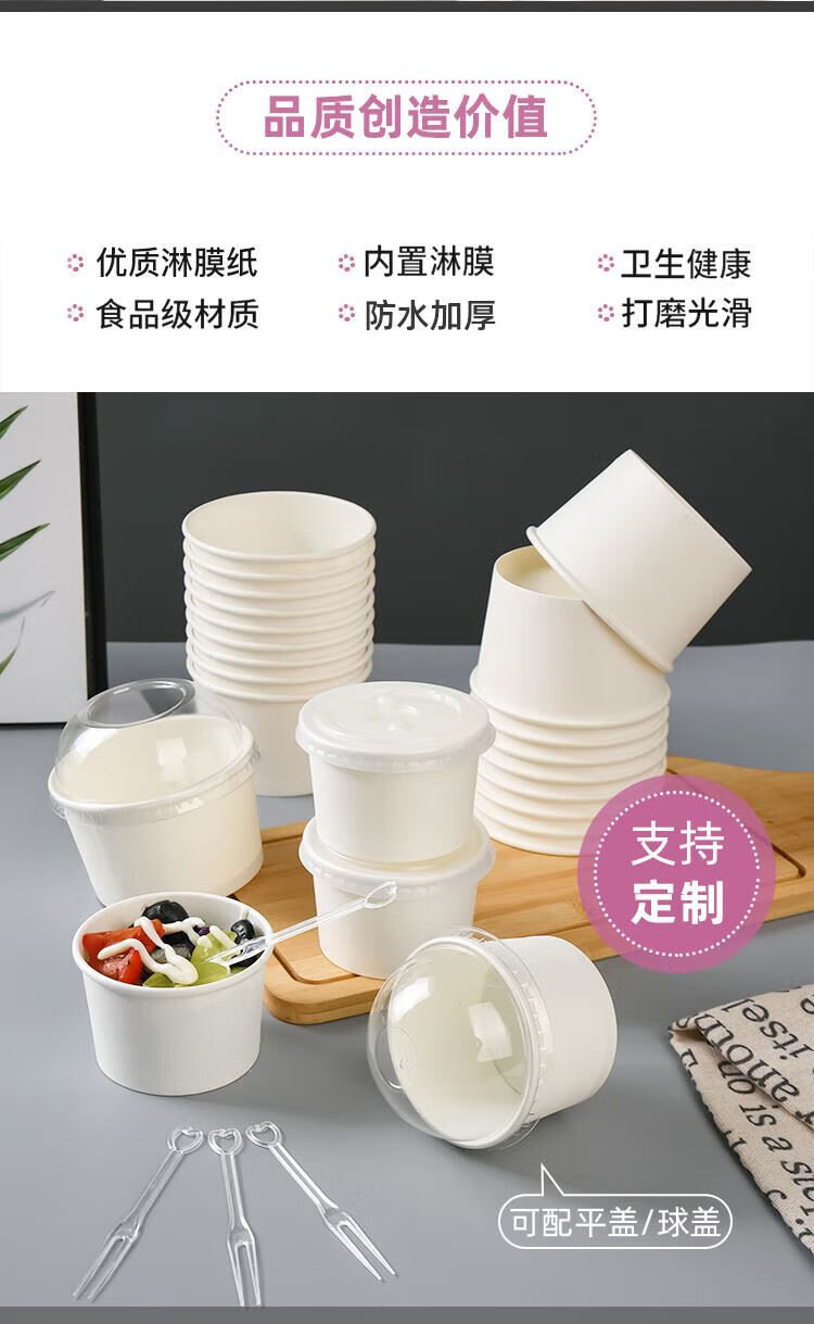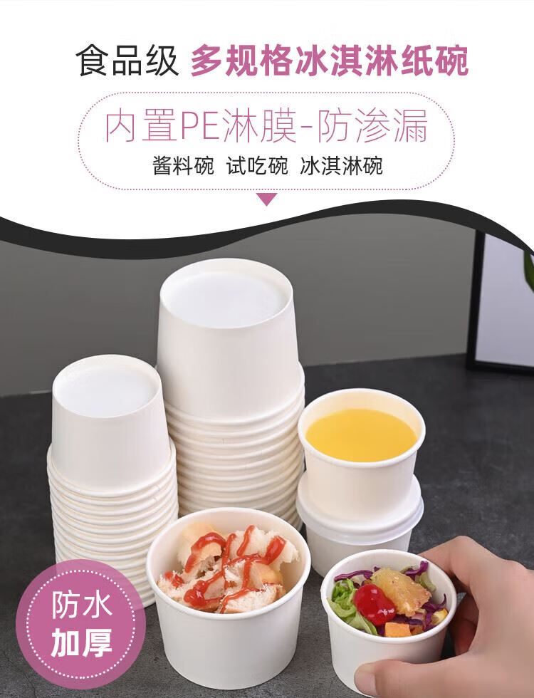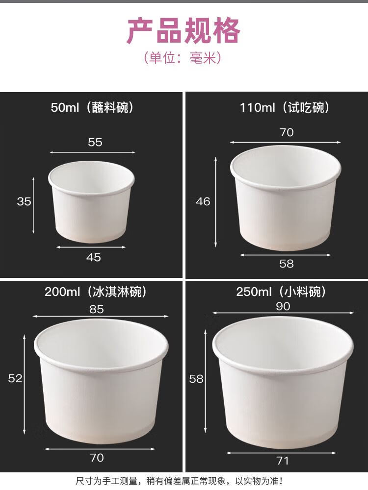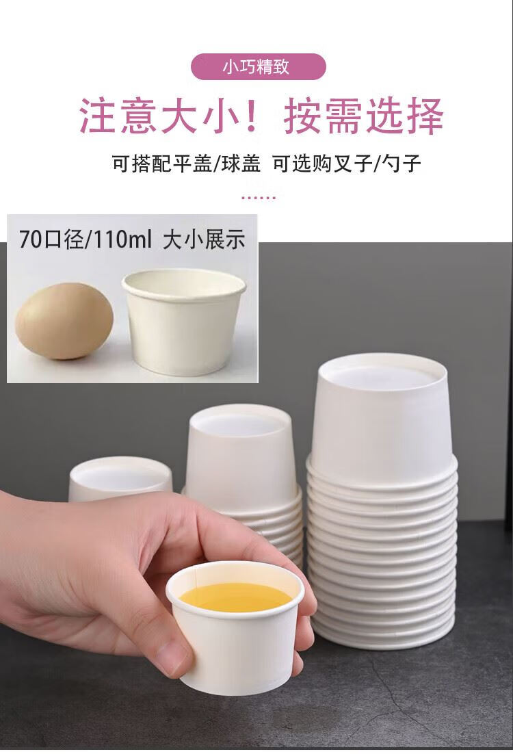 Qiantun disposable cup small mini small tasting cup sauce bowl ice cream paper cup small ingredients paper bowl 110ml white tasting bowl 750 pieces