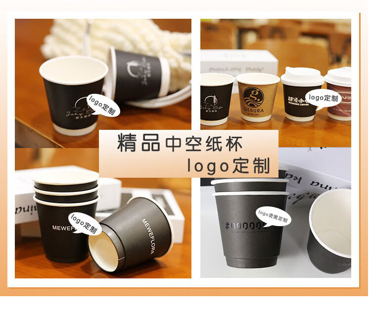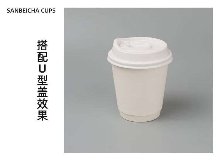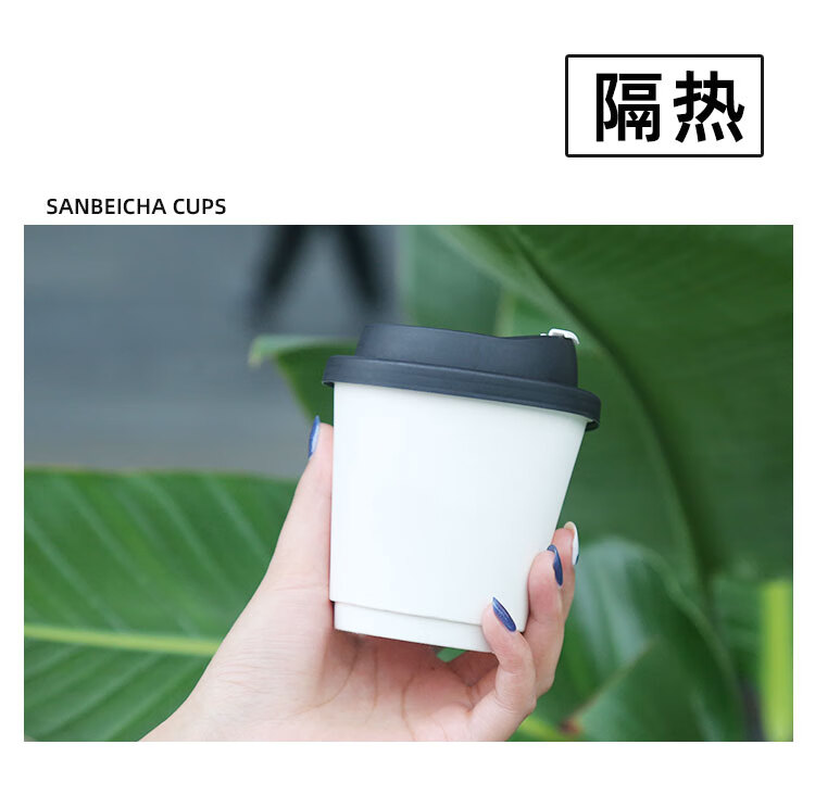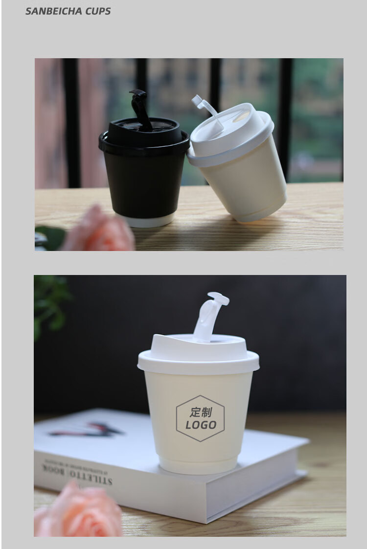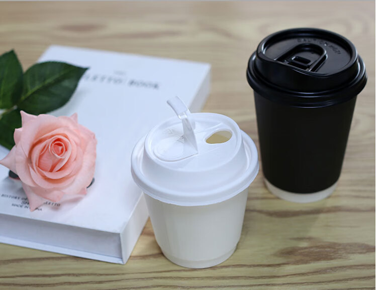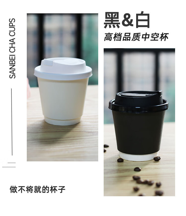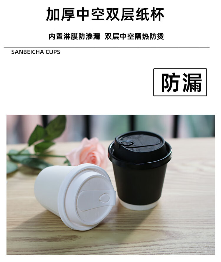 Jiaside double-layer disposable coffee milk tea soy milk paper cup with lid commercial anti-scalding take-out hot drink customization 10A white hollow + white one-piece lid 25 sets