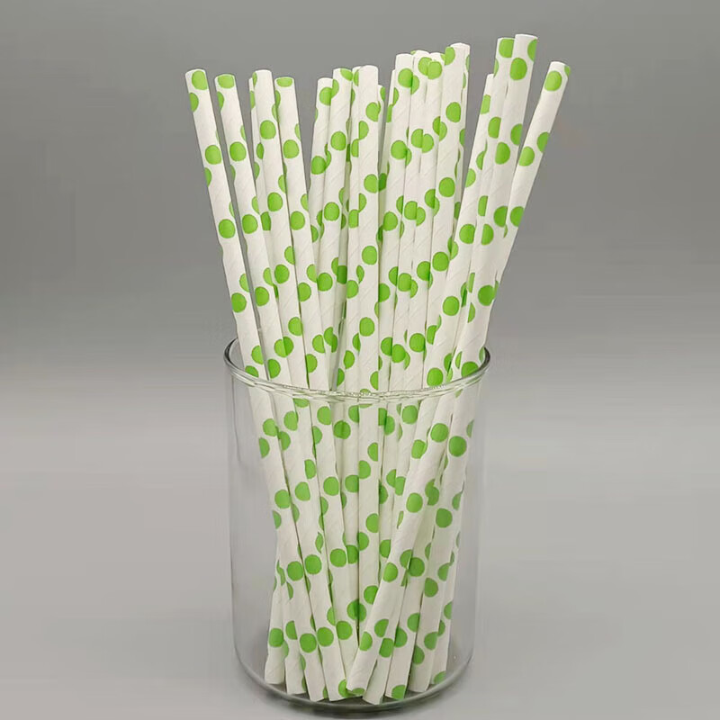Paper straws green disposable degradable paper straws creative party juice milk tea straw decoration green four colors (100 pieces)