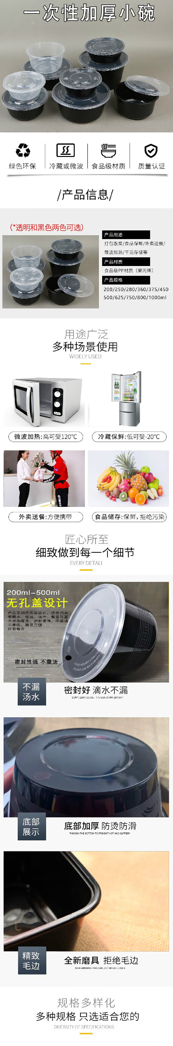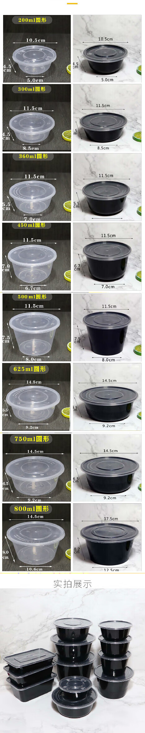 Rose plastic disposable lunch box round thickened transparent disposable takeaway rice packed lunch box sealed round small bowl soup bowl 200ml transparent thickened whole box 450 sets round