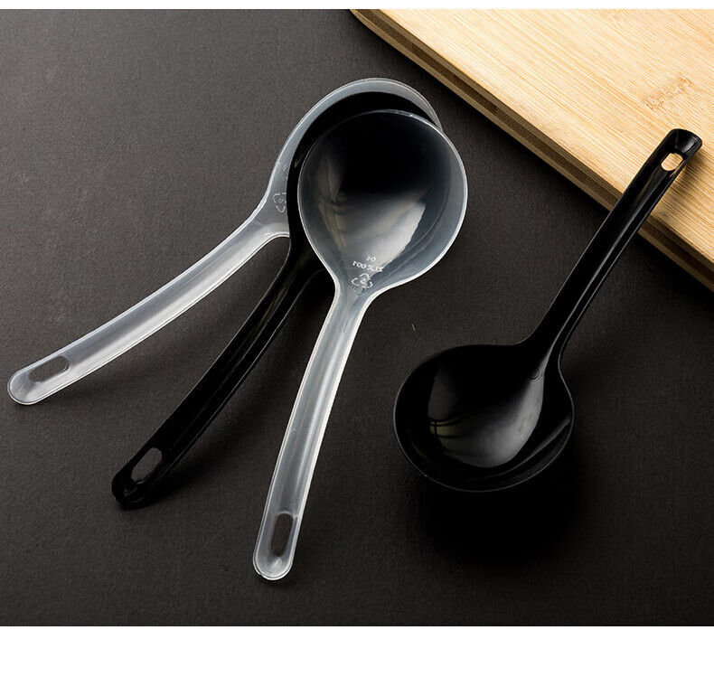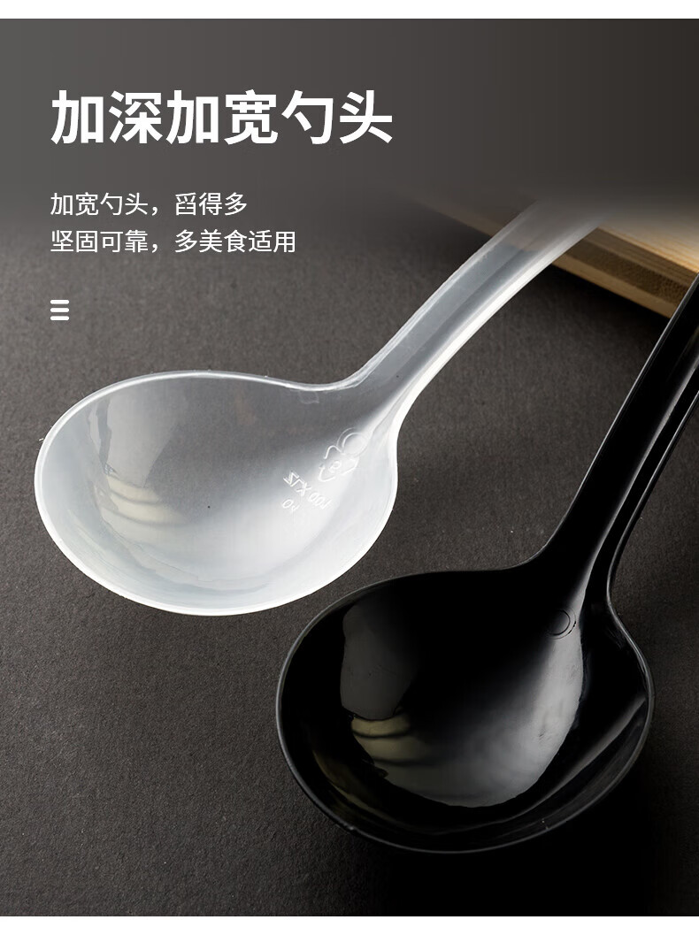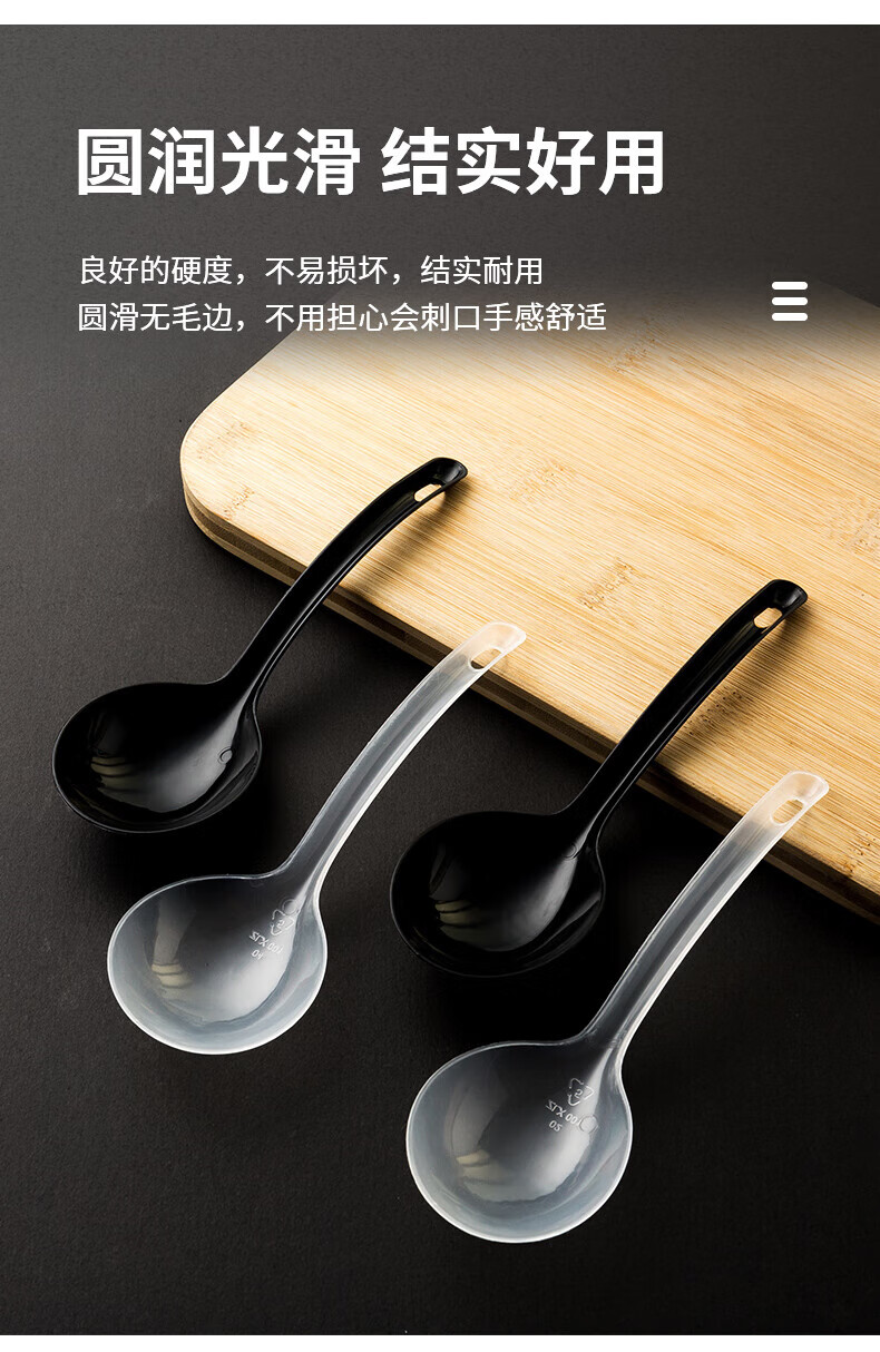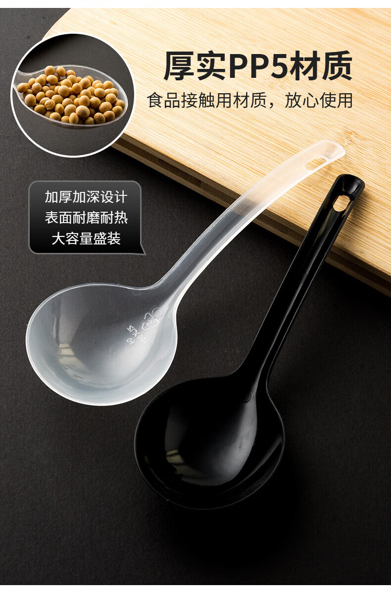 Disposable soup spoon plastic takeaway hot pot packaged casserole porridge spoon individually packaged pickled fish commercial large male spoon simple black large spoon 50 pieces