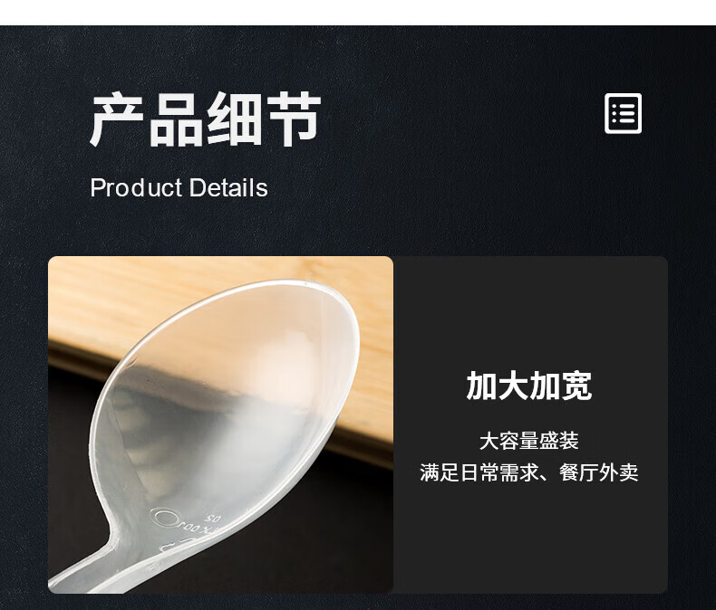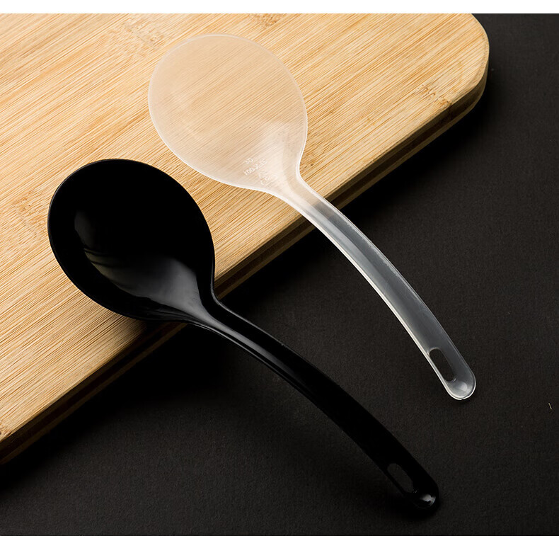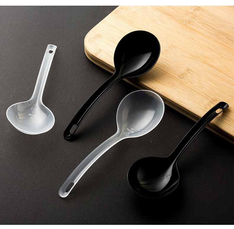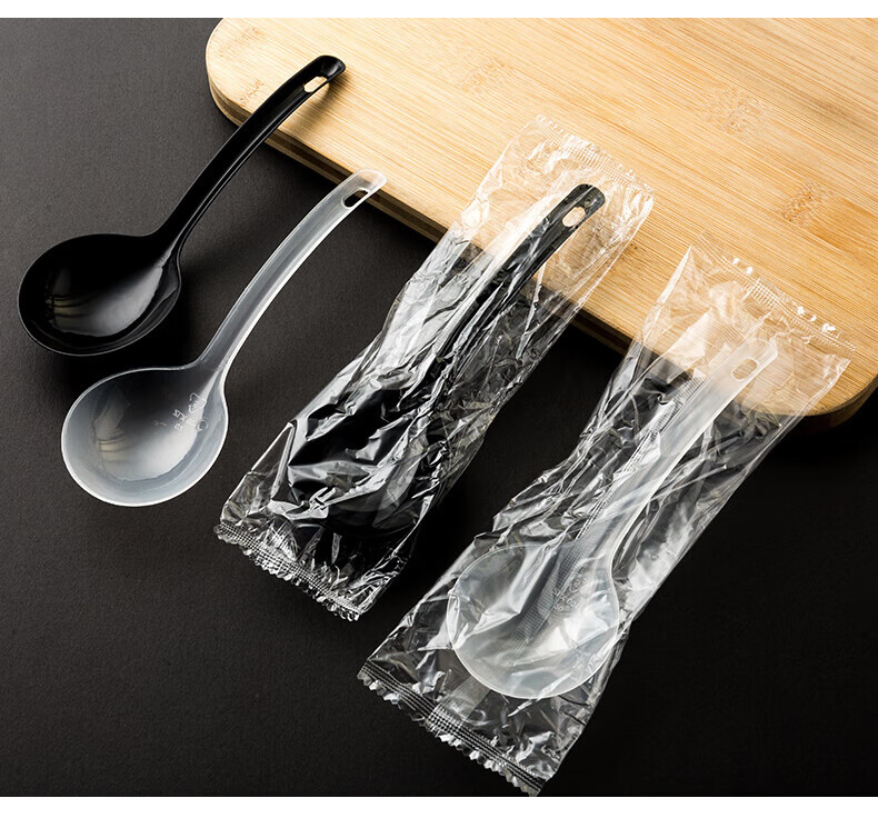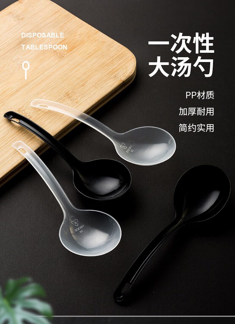 Disposable soup spoon plastic takeaway hot pot packaged casserole porridge spoon individually packaged pickled fish commercial large male spoon simple black large spoon 50 pieces