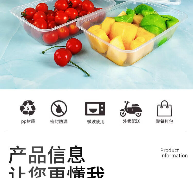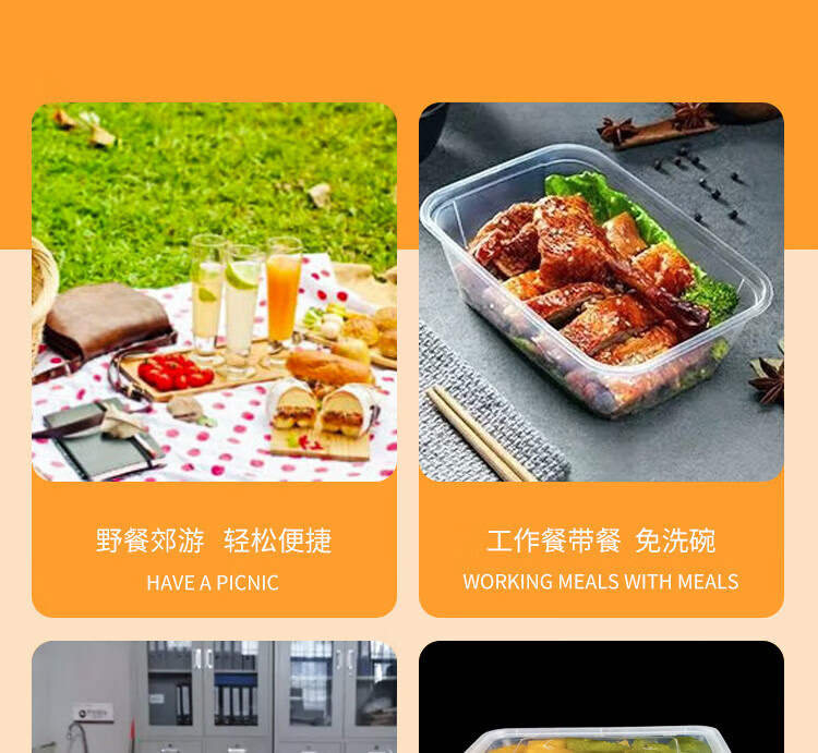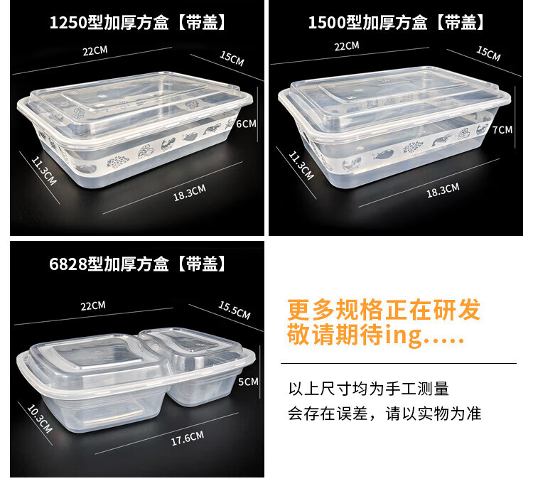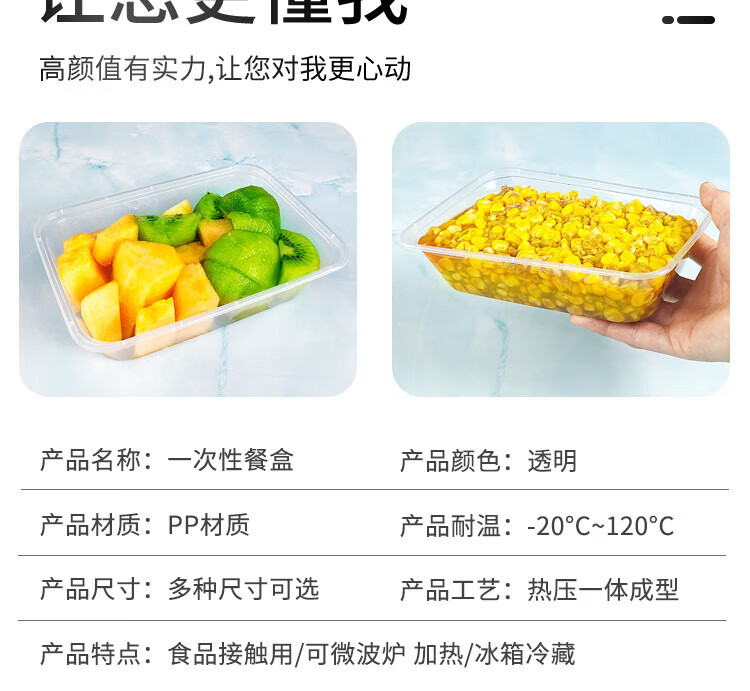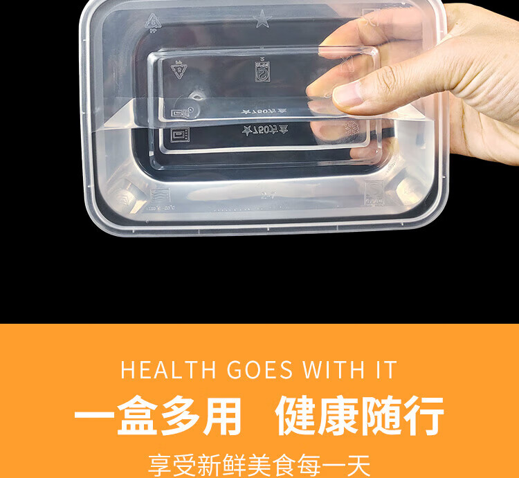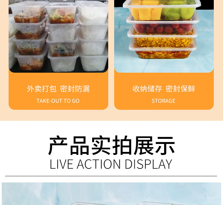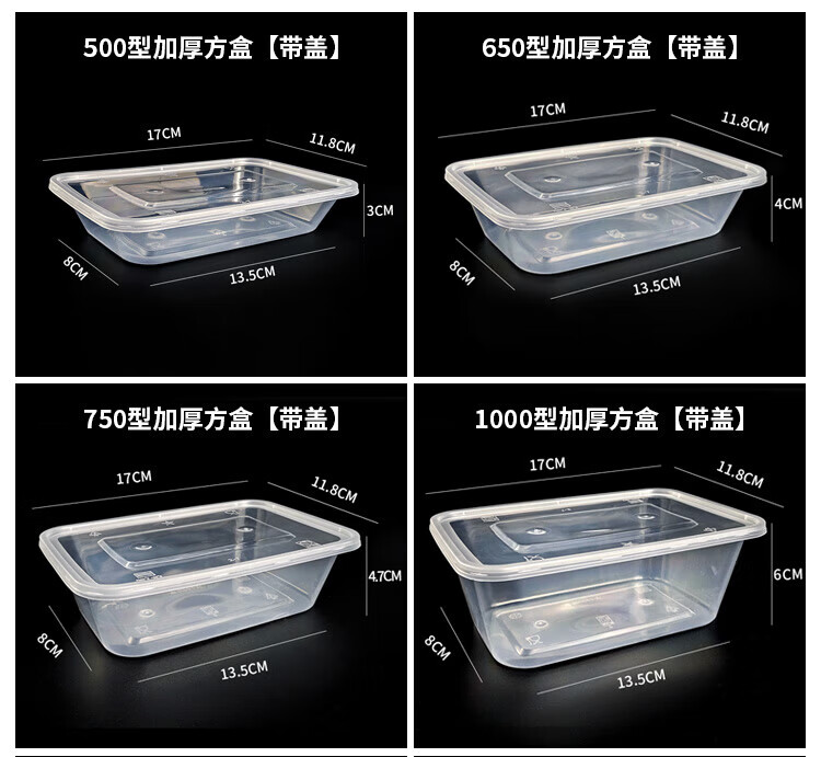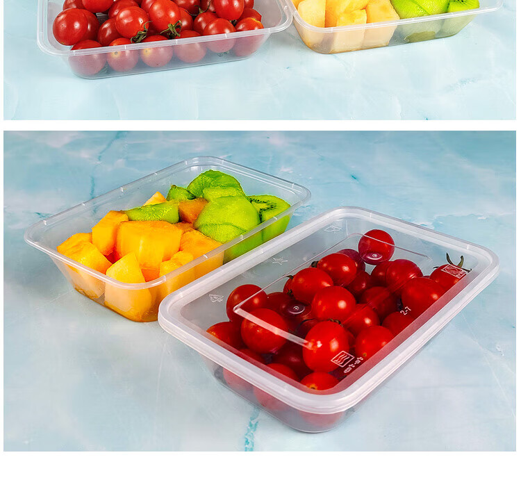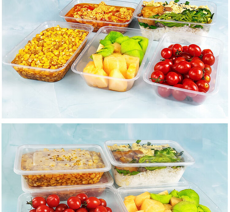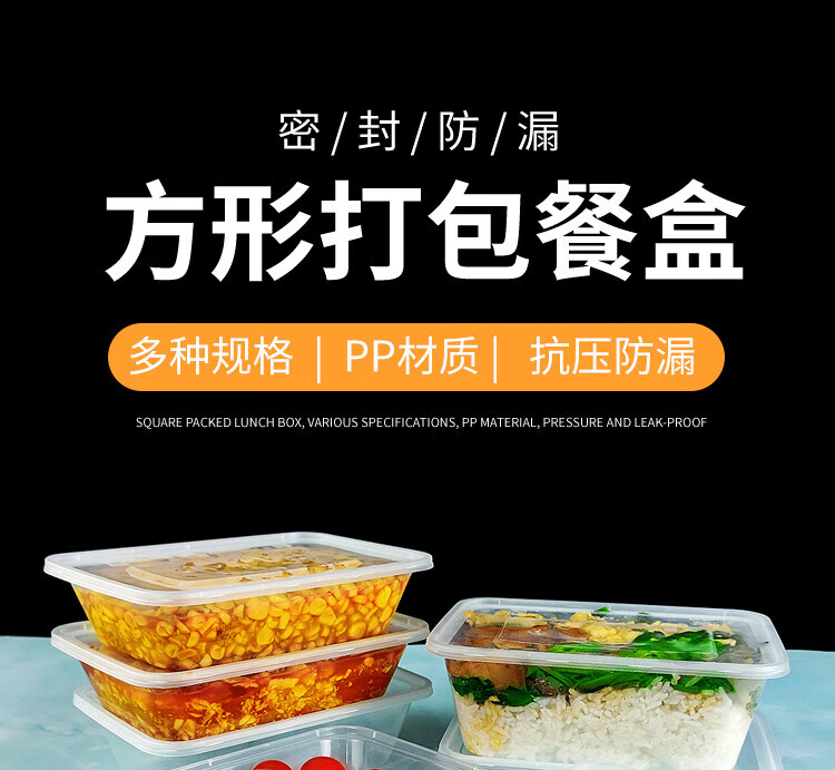 Disposable packaging box rectangular round plastic takeout box fresh fast food lunch box 650 square box 50 pieces with lid
