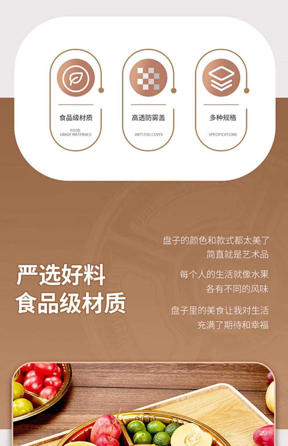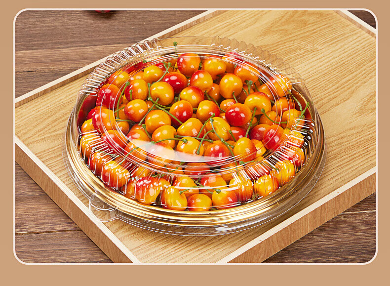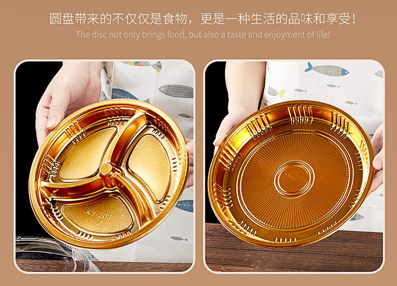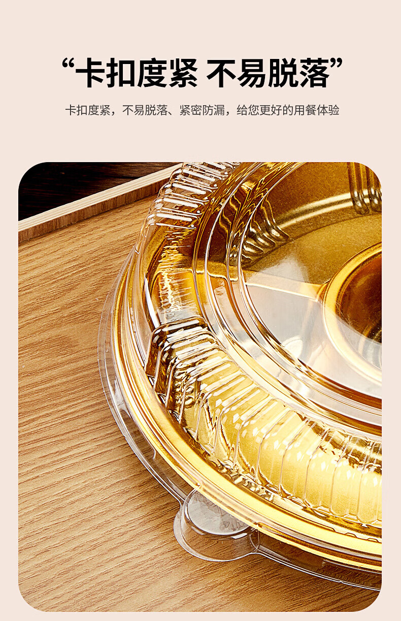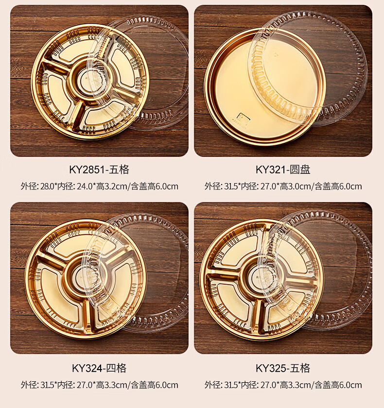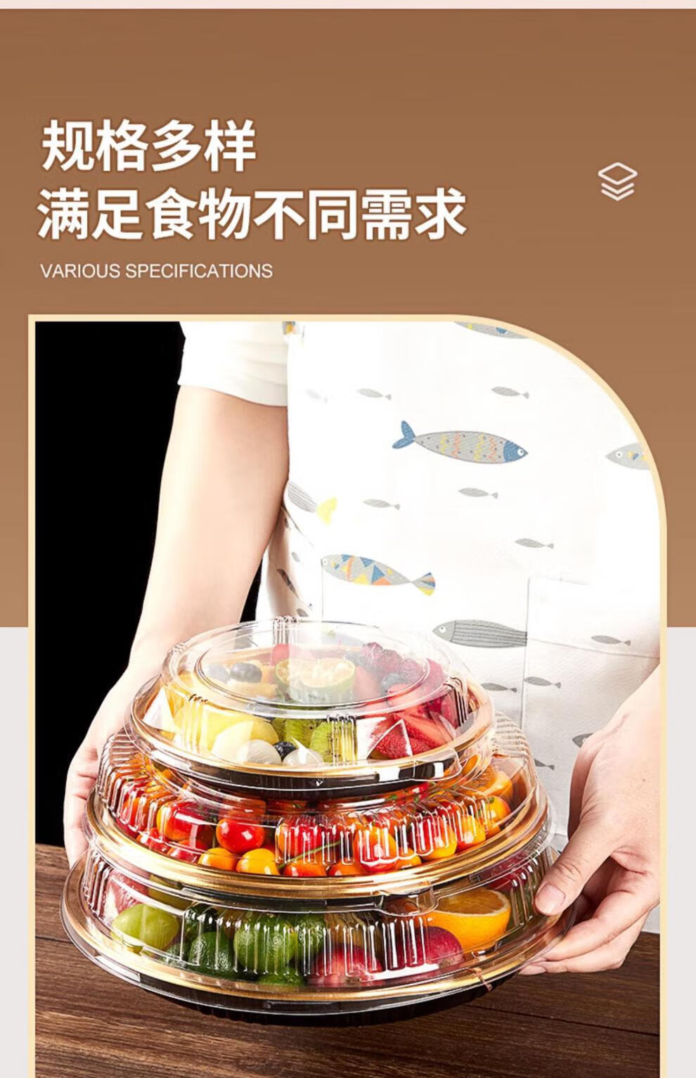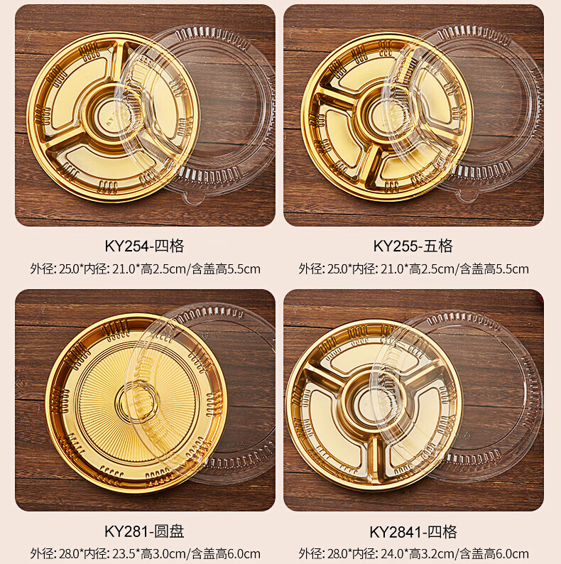Tanqi Disposable Fruit Plate Golden Fruit Cutting Packing Box Three or Four Fruit Cutting Boxes Double Set Lunch Box Autumn Outing Platter 25cm Round Plate Five-Gate Gold 50 Sets