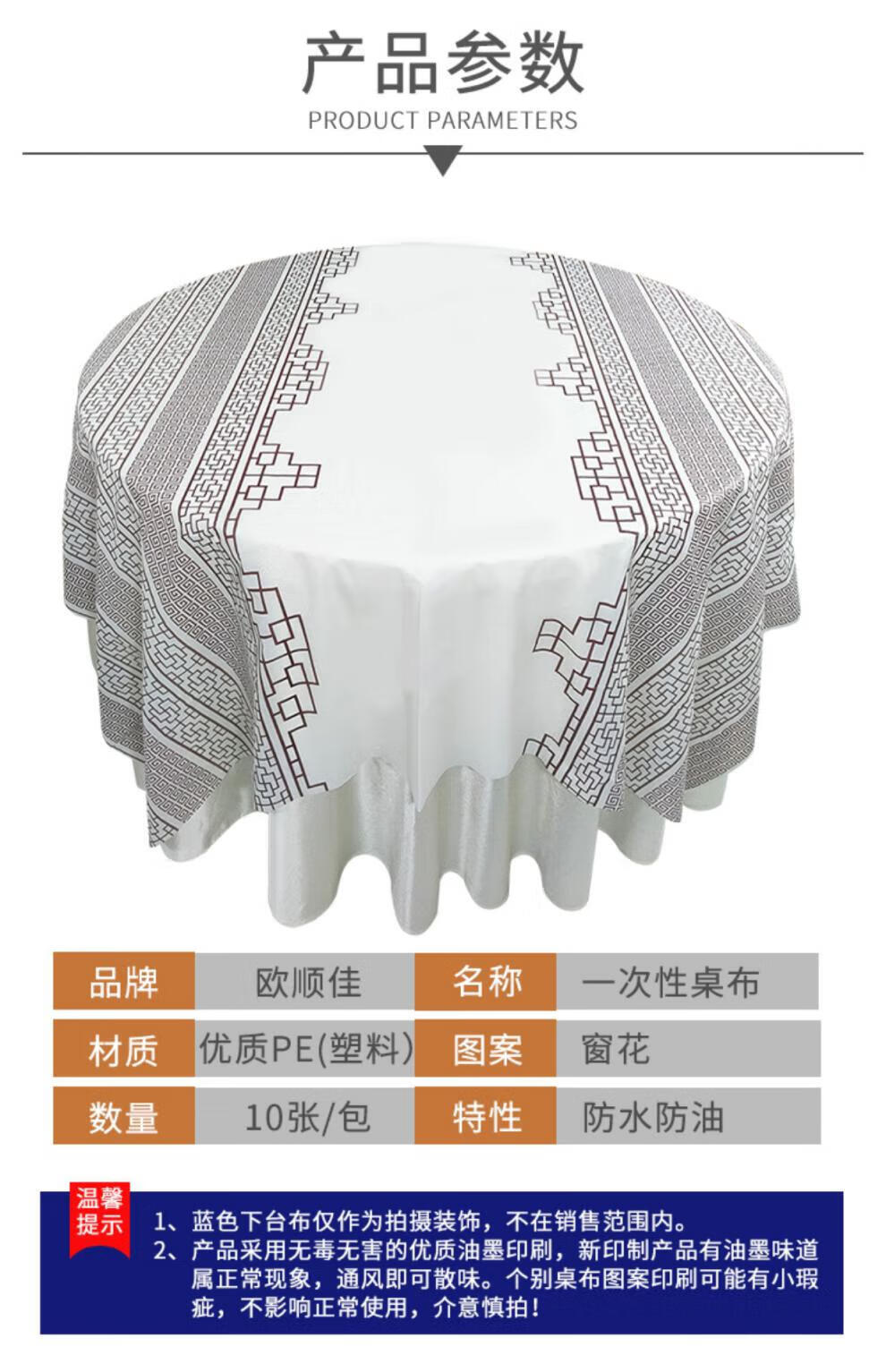 Chanqi disposable tablecloth round table window grille tablecloth thickened waterproof and oil-proof Chinese retro printing round table 1.4m window grille (10 sheets)