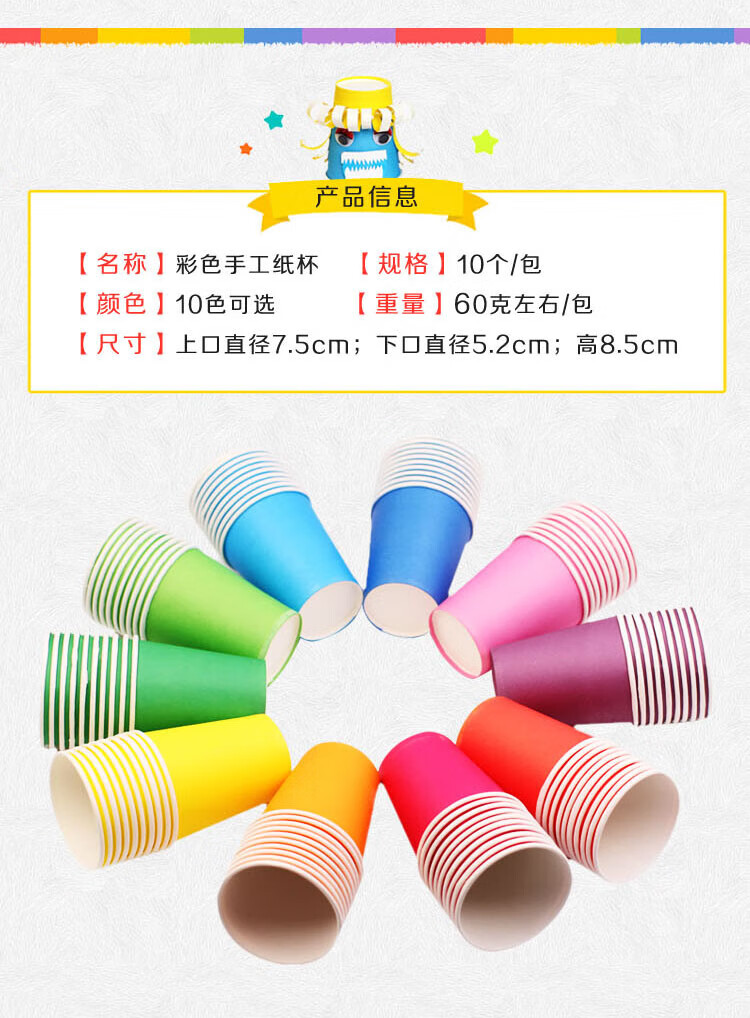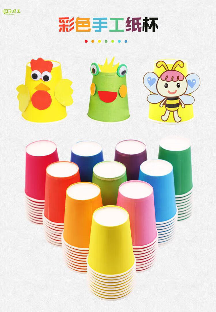 Jiudian Colorful Paper Cups Handmade Kindergarten Disposable Paper Cups Colorful DIY Paper Cups Handmade Paper Cups Solid Color Early Childhood Education Paper Cups 10 Colors Mixed Pack of 20