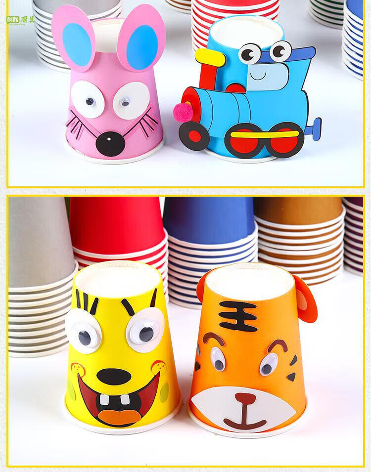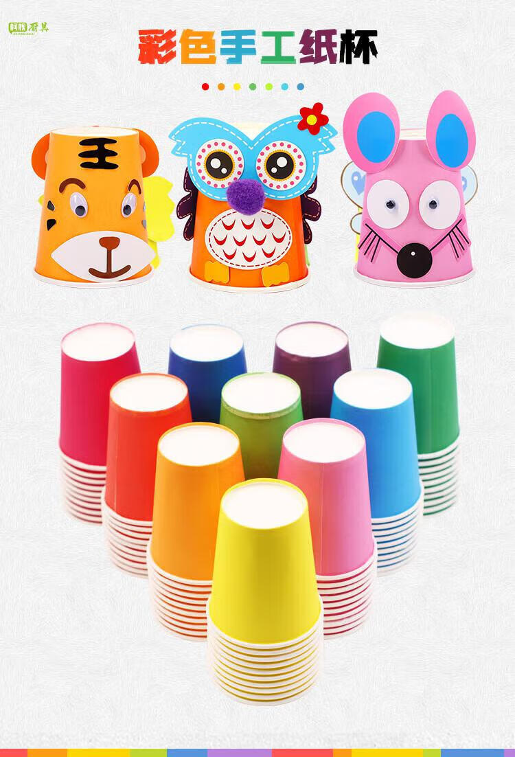 Colored paper cup handmade kindergarten color paper cup handmade diy disposable paper cup kindergarten production materials 5-color mixed series A type 50 pieces each color