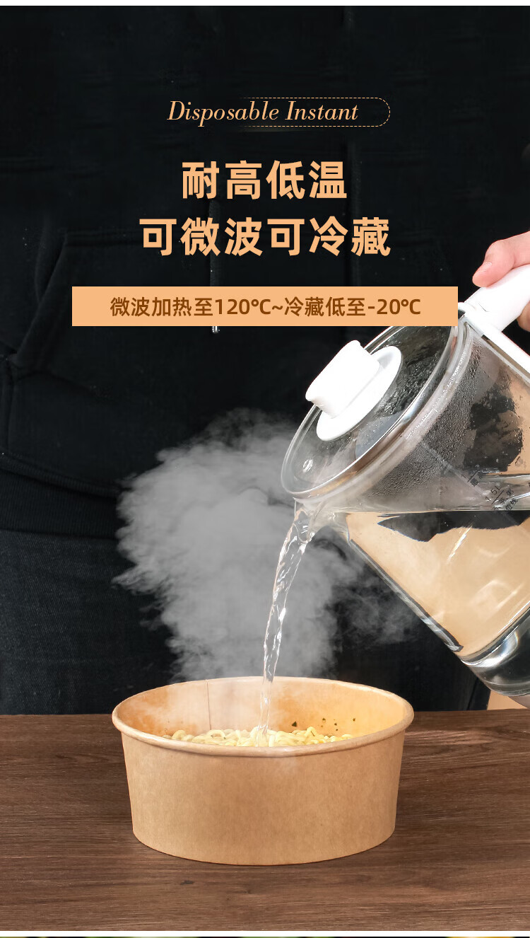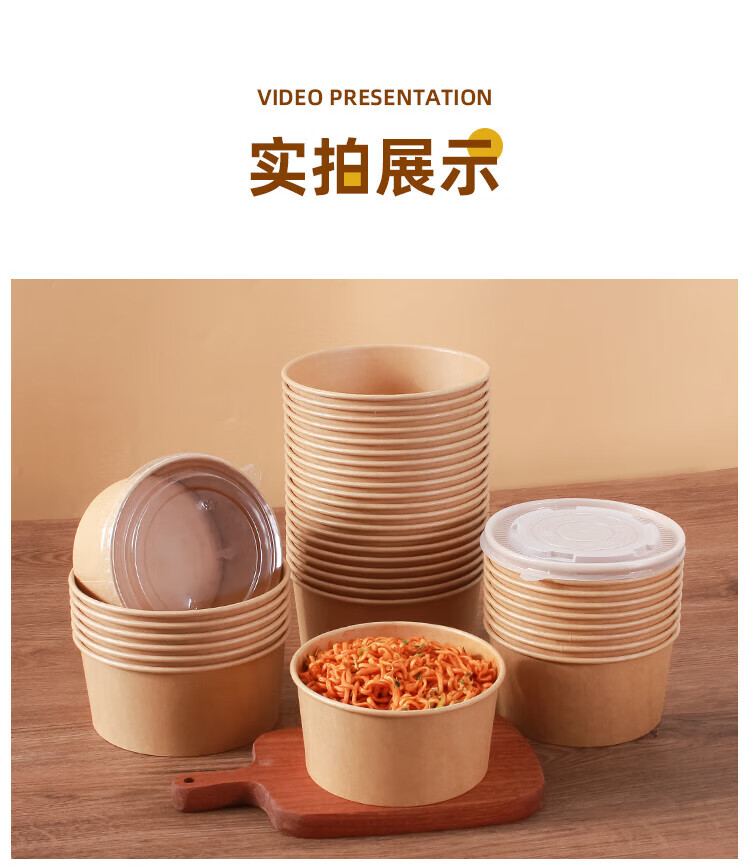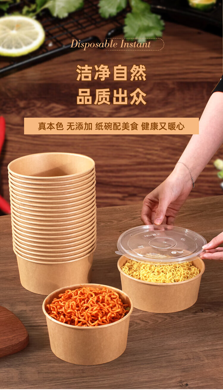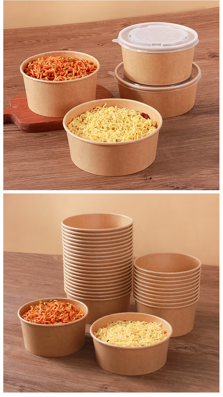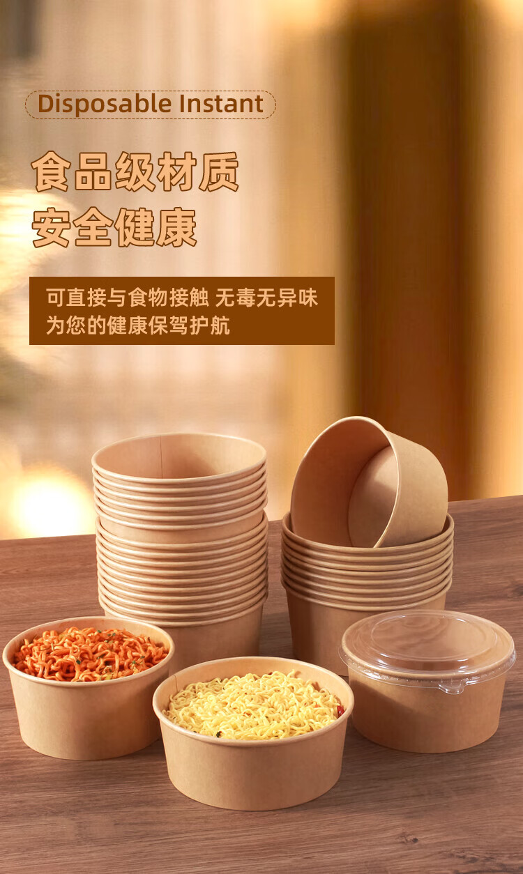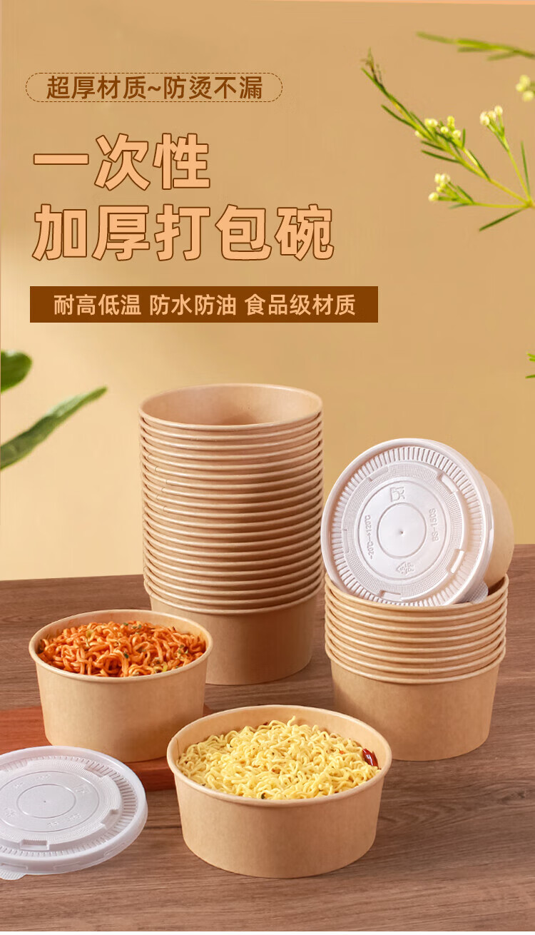 Disposable bowl household paper lunch box instant noodle bowl high temperature resistant rice bowl disposable bowl chopsticks paper bowl lunch box 1300mlpp cover-chopsticks 20 sets thickened version