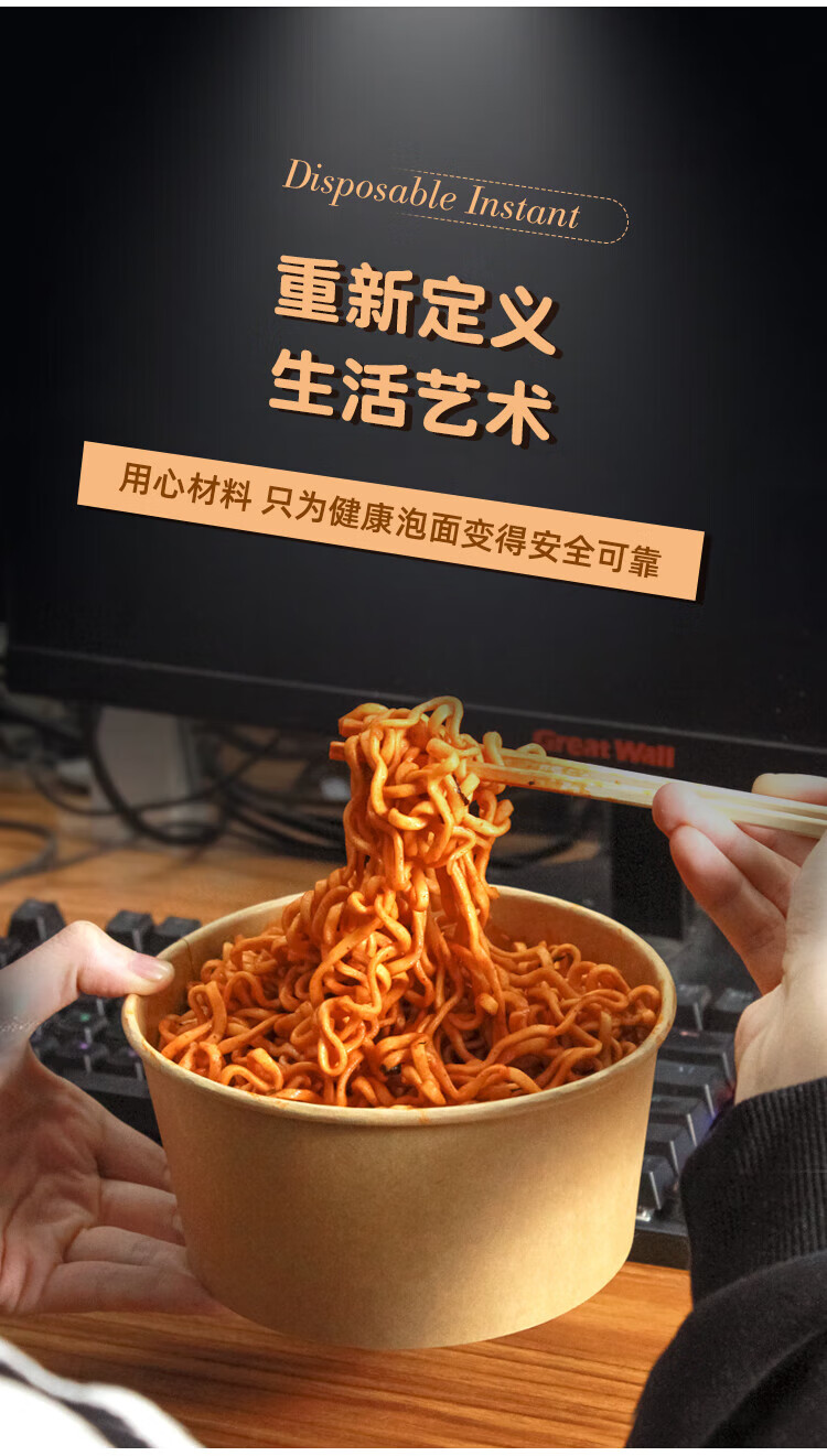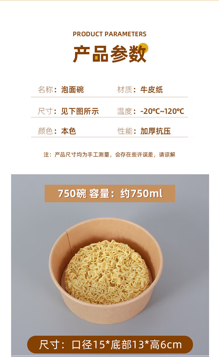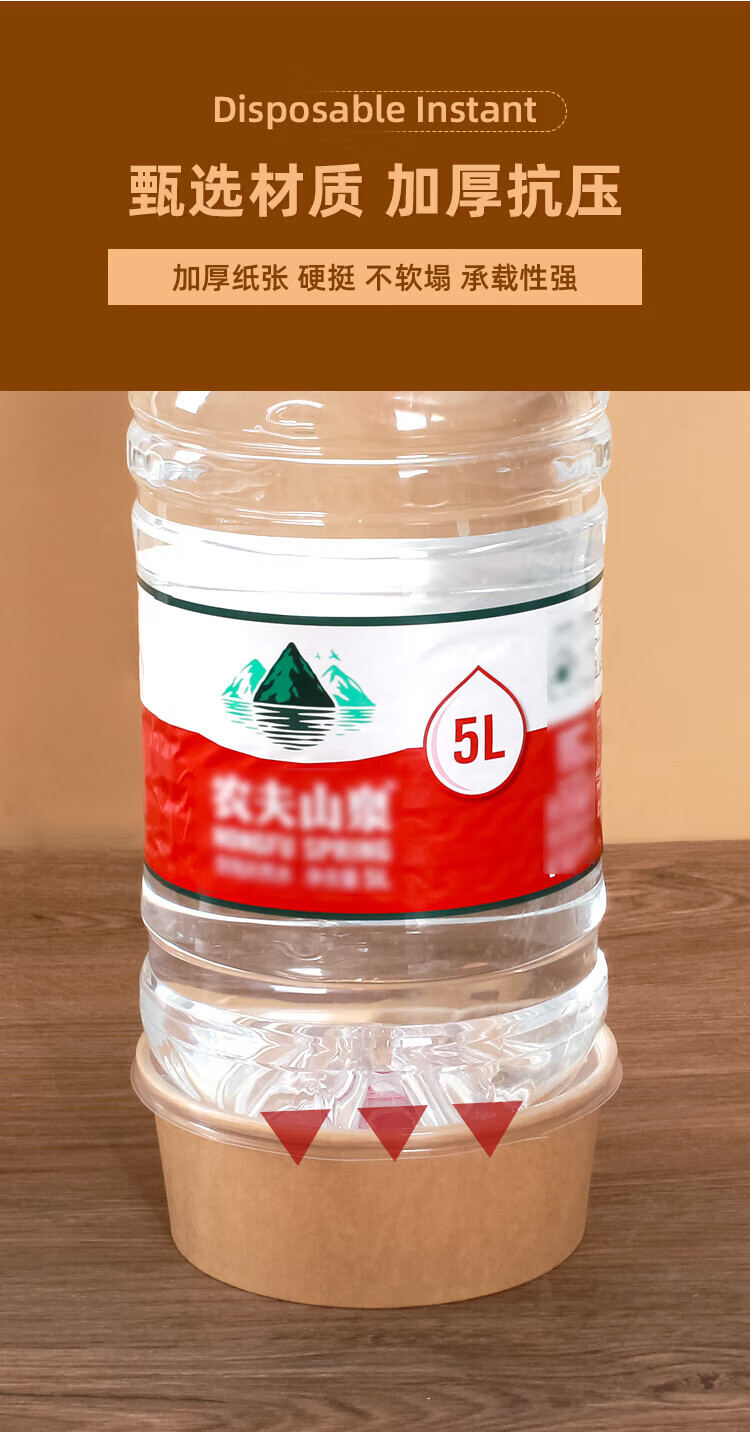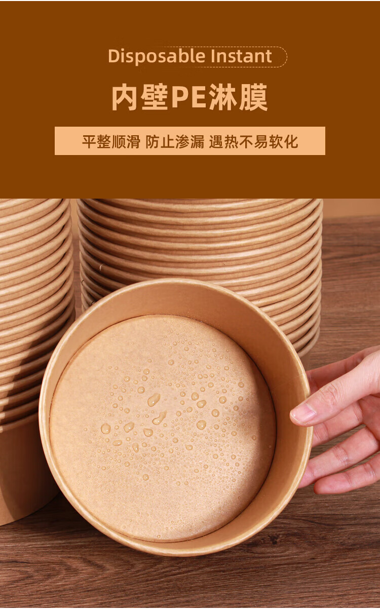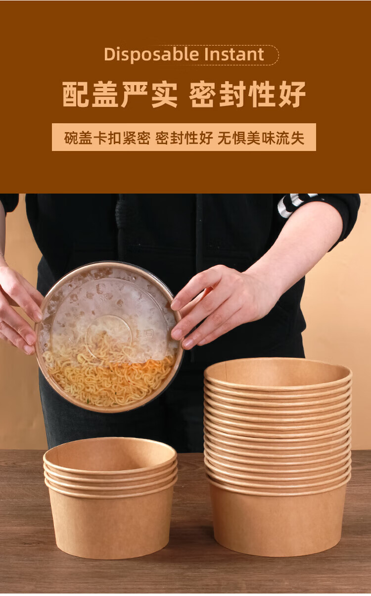 Disposable bowl household paper lunch box instant noodle bowl high temperature resistant rice bowl disposable bowl chopsticks paper bowl lunch box 1300mlpp cover-chopsticks 20 sets thickened version