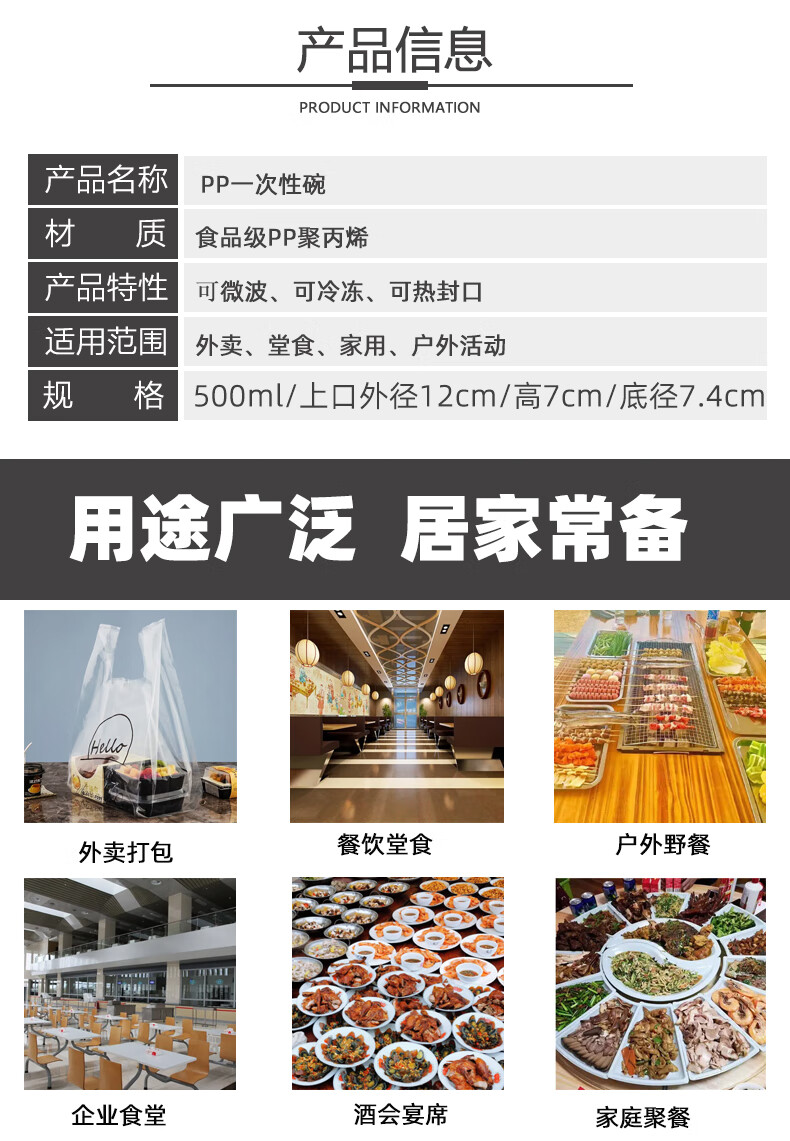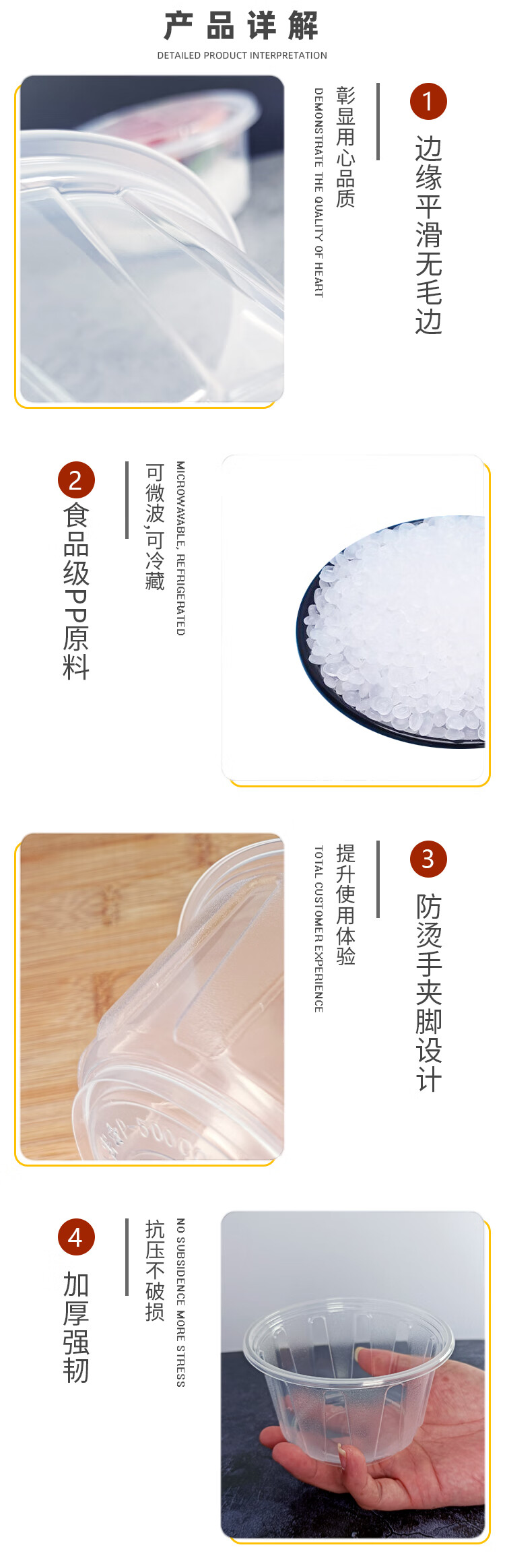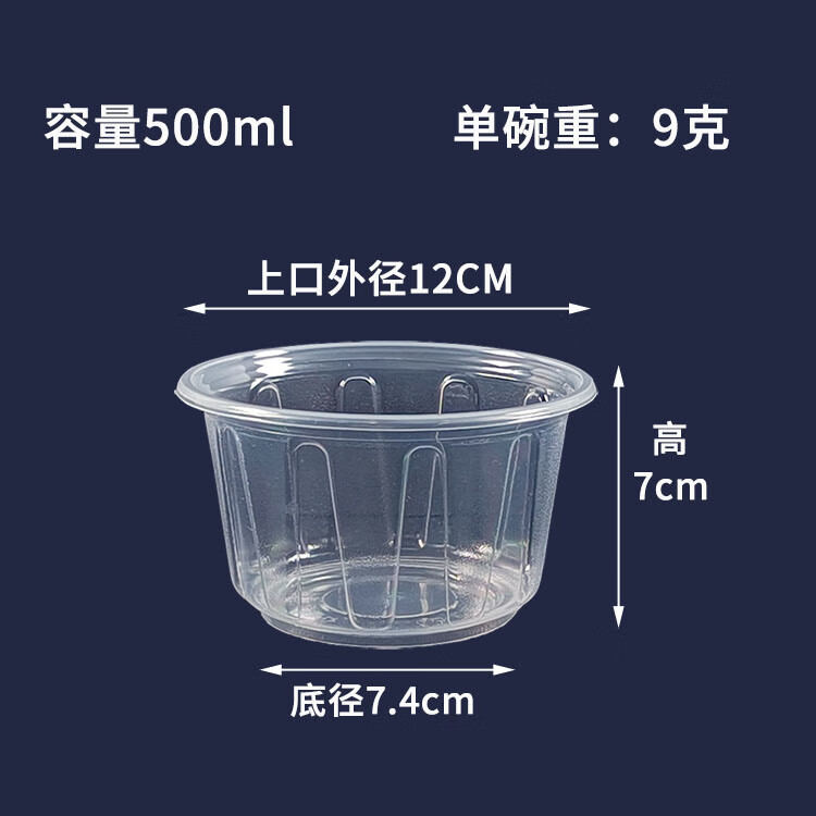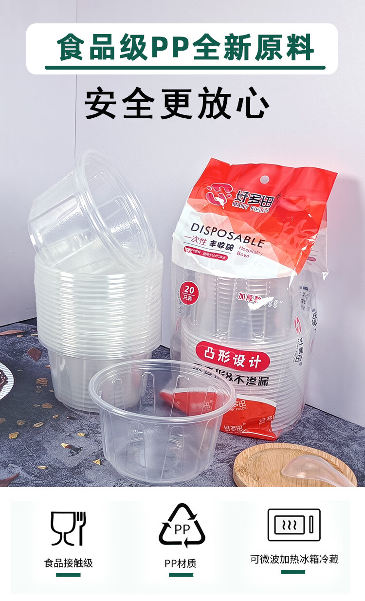 Household disposable bowl transparent plastic soup bowl family pack 20 pieces 500ml thickened supermarket quality barbecue tableware thickened bowl 5 pack total 100 pieces without lid