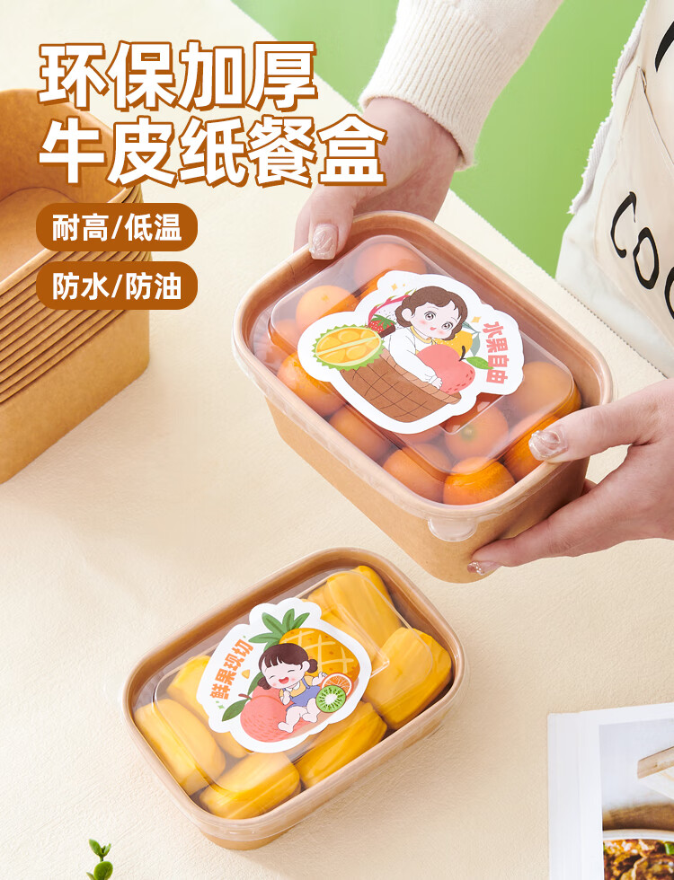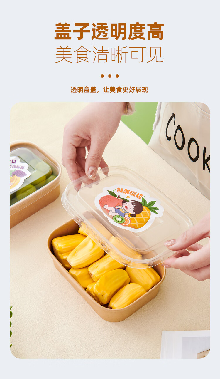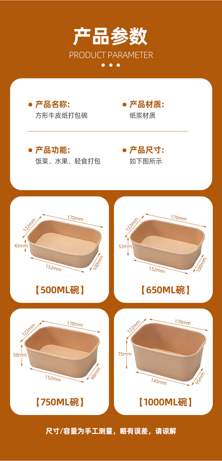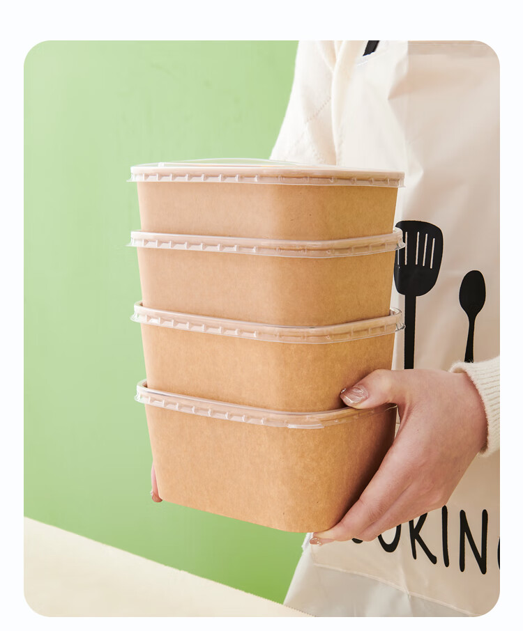 Disposable packaging box, thickened kraft paper lunch box, rectangular take-out lunch box, light meal box, microwaveable with lid, round 1500ml paper bowl + lid, 20 sets