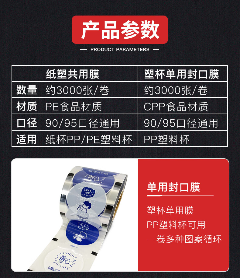 Chuangjingyixuan 9095 caliber universal heat shrinkable film freshly ground soy milk sealing film 3000 sheets disposable milk tea seals plastic film macarons 3000 sheets universal for paper and plastic