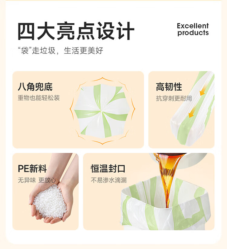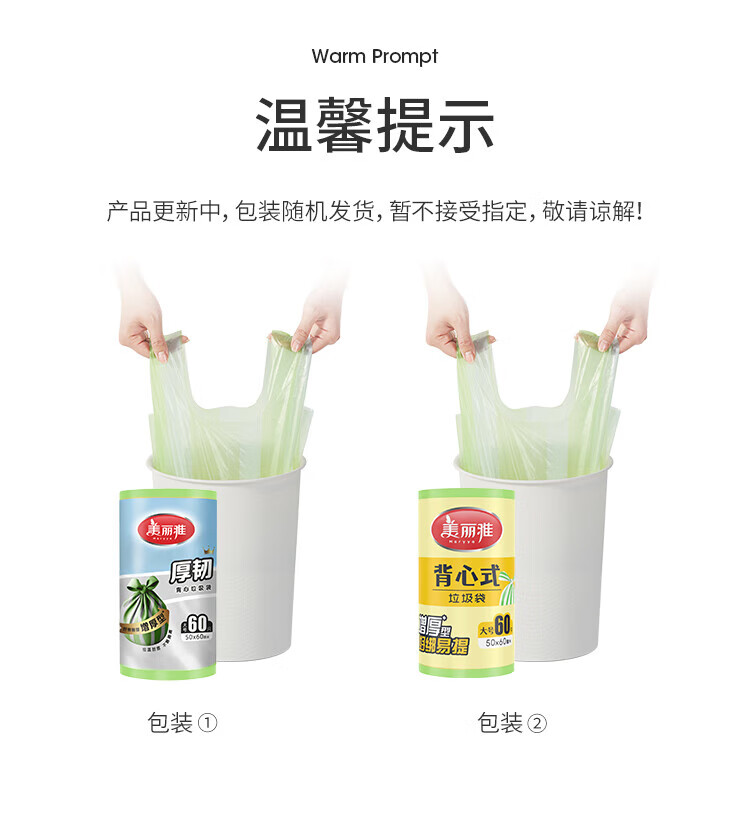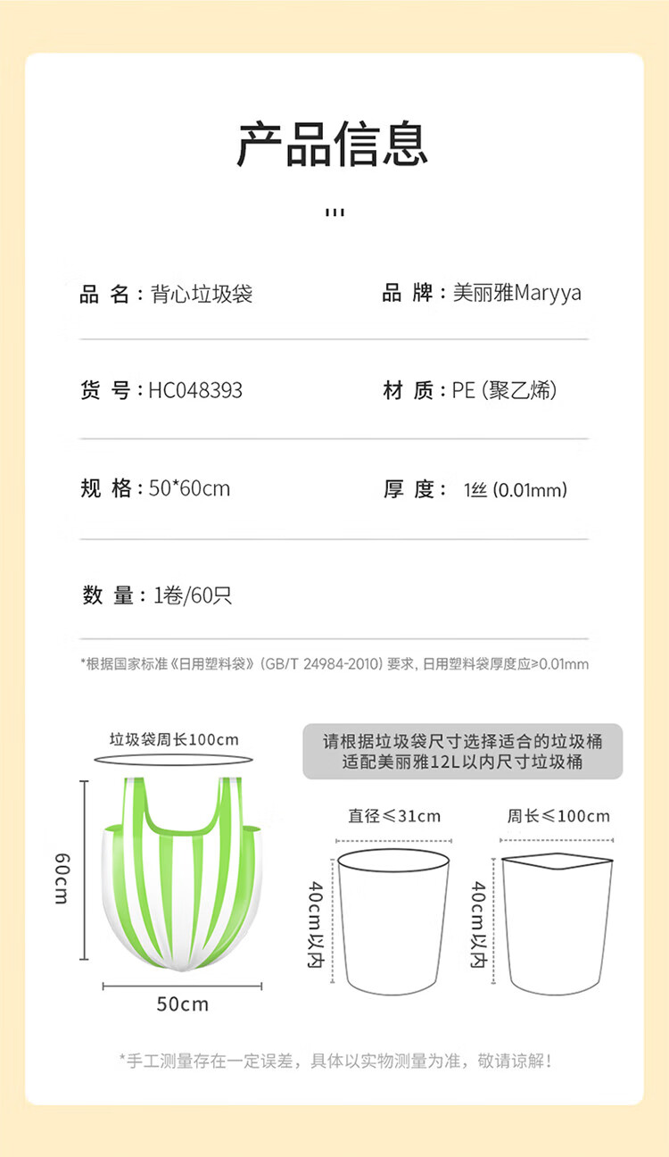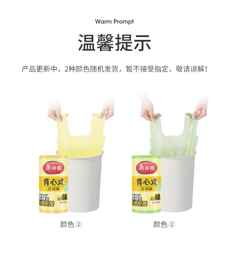 Meliya vest garbage bag green and white large size 50*60cm 60 pieces 1 wire point break type home kitchen puncture-proof plastic bag