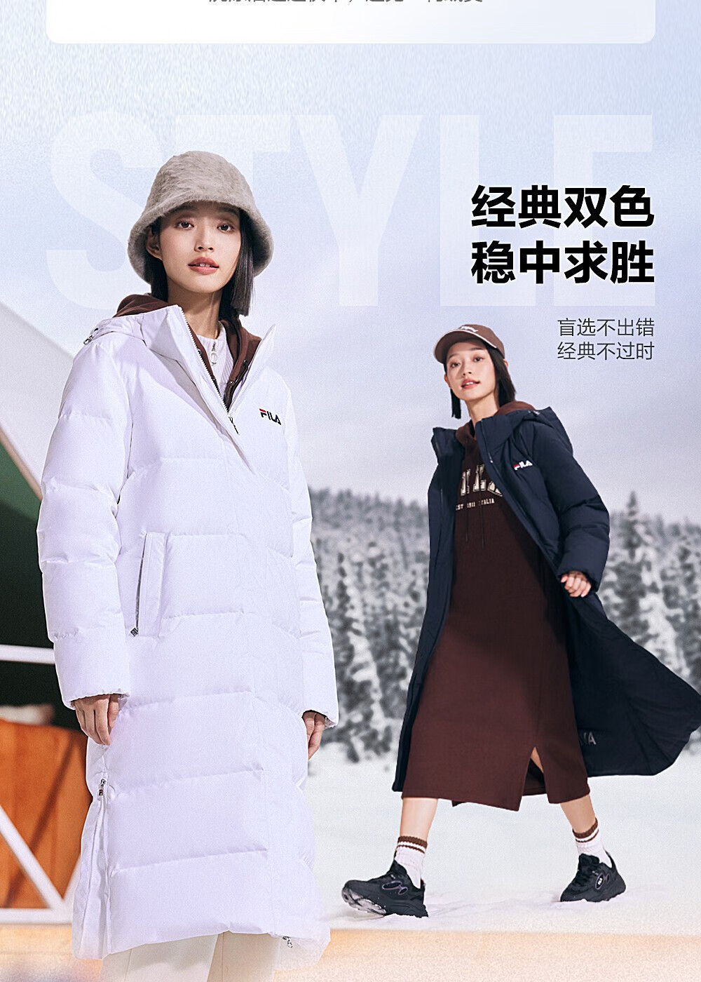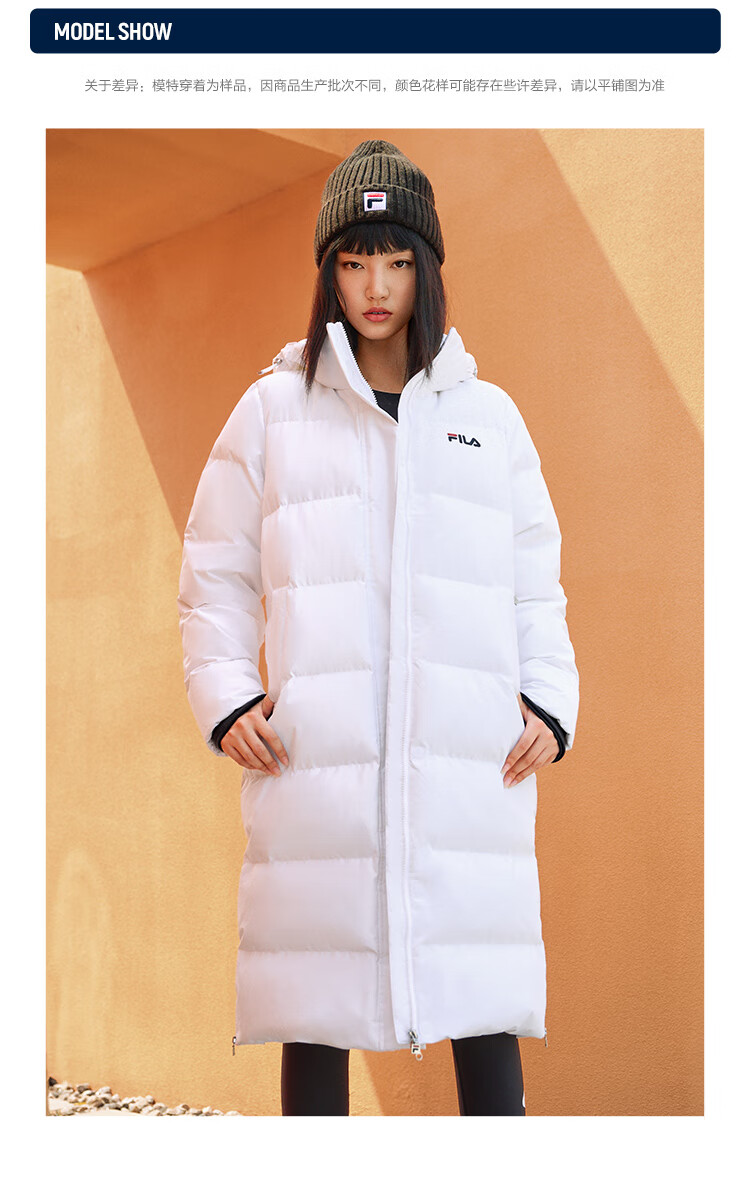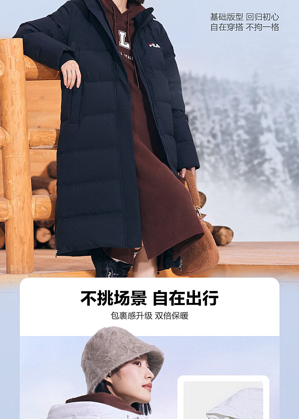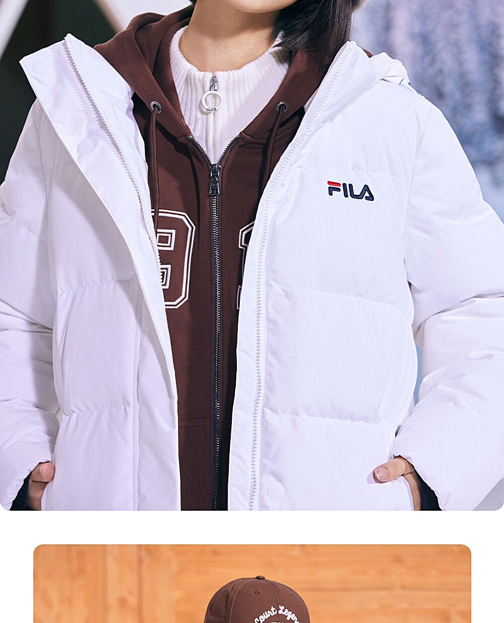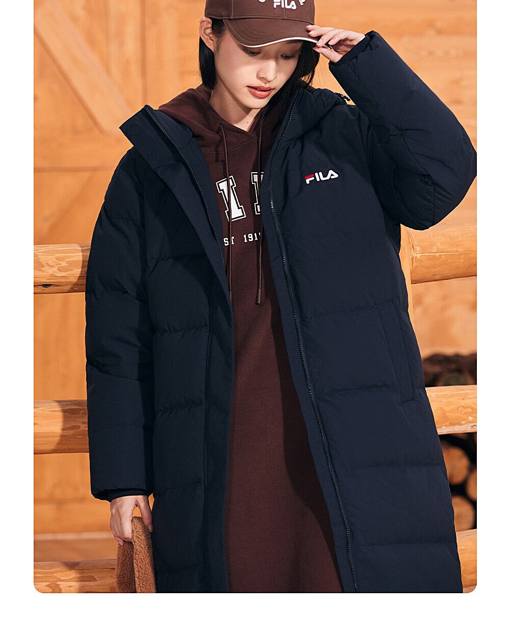 FILA official women's down jacket winter warm and fashionable mid-length warm sports down jacket