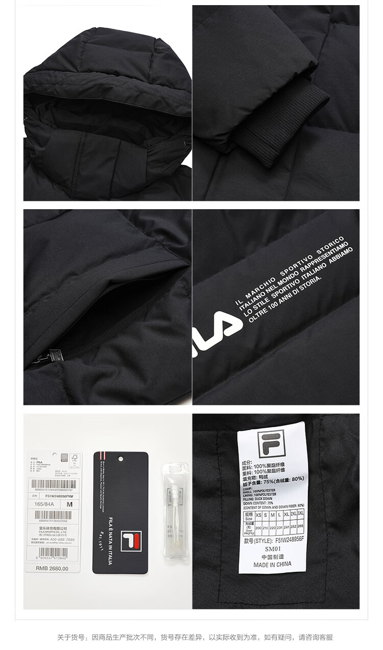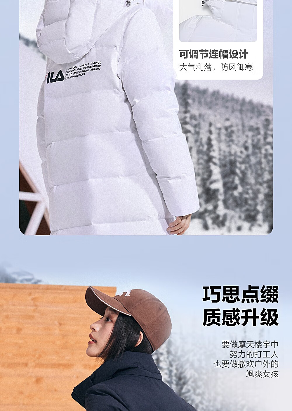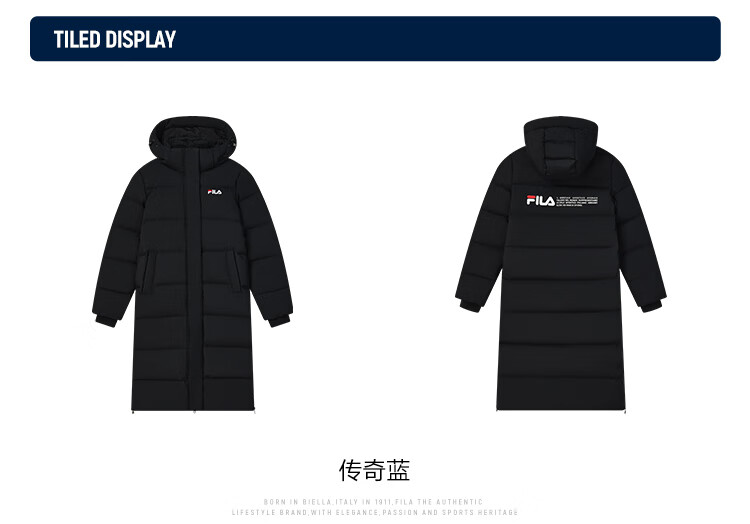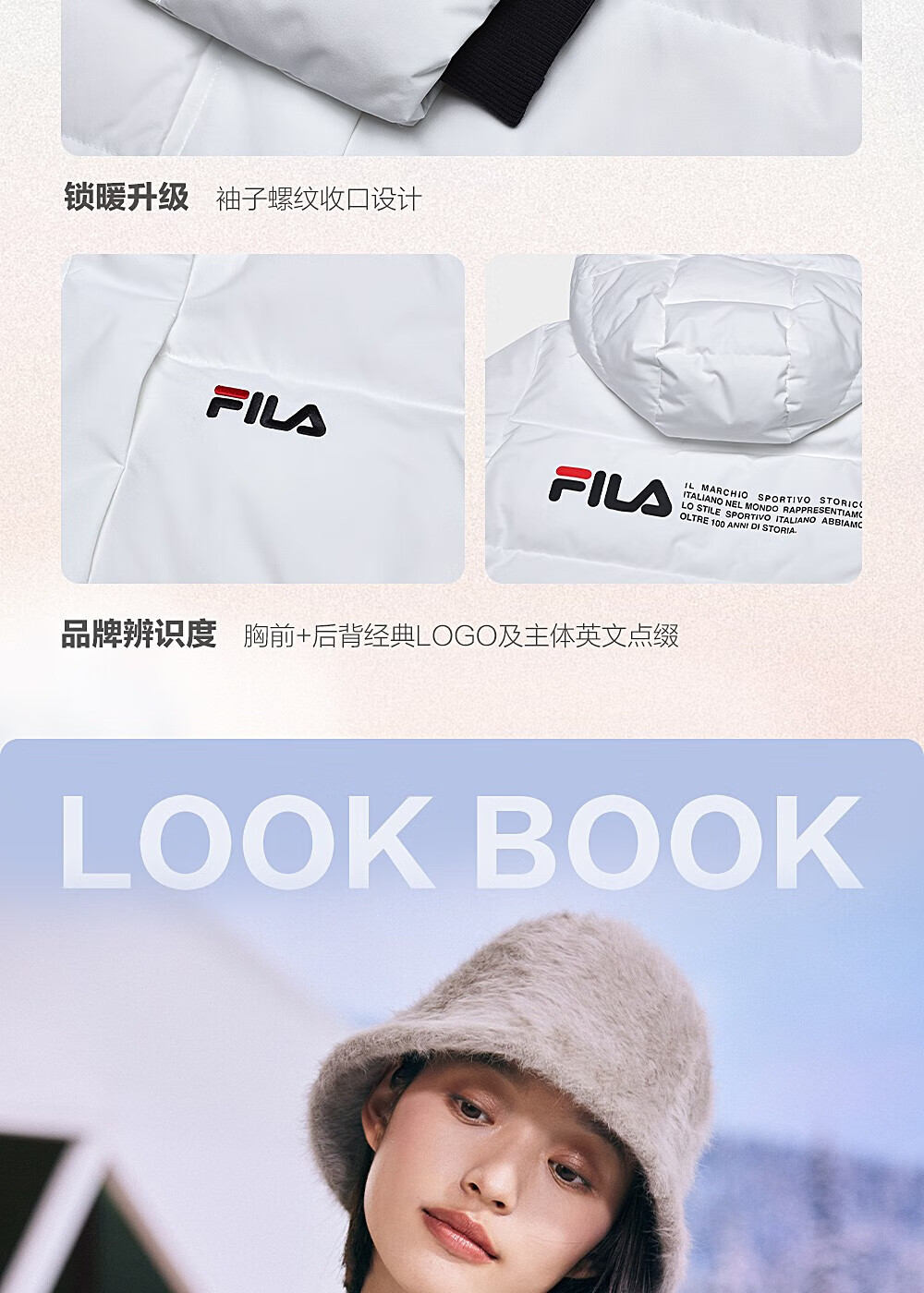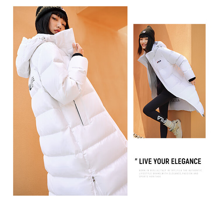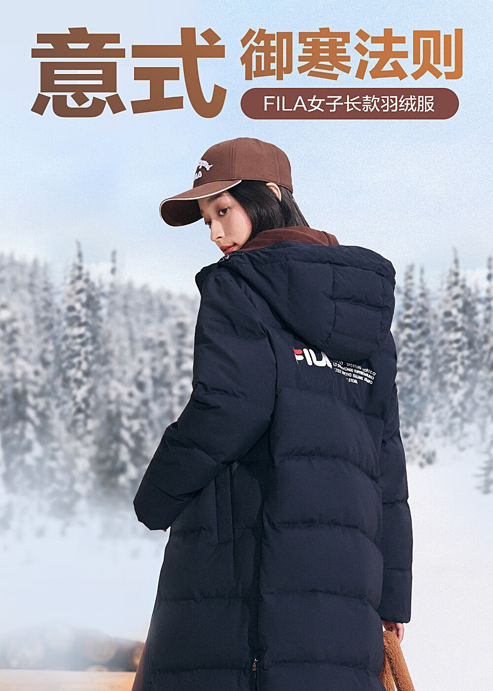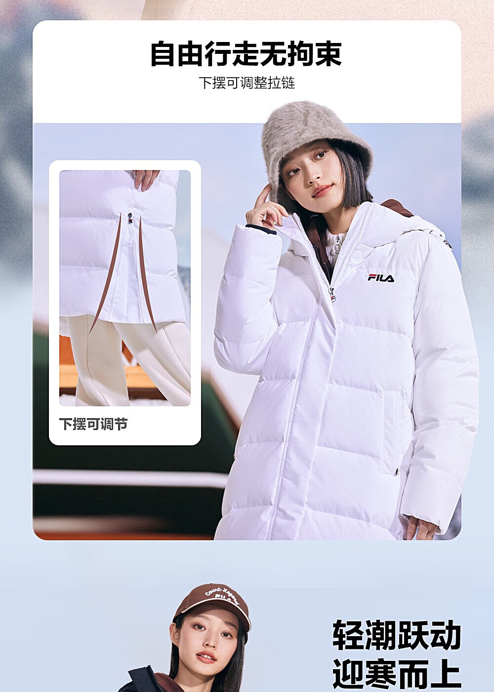 FILA official women's down jacket winter warm and fashionable mid-length warm sports down jacket